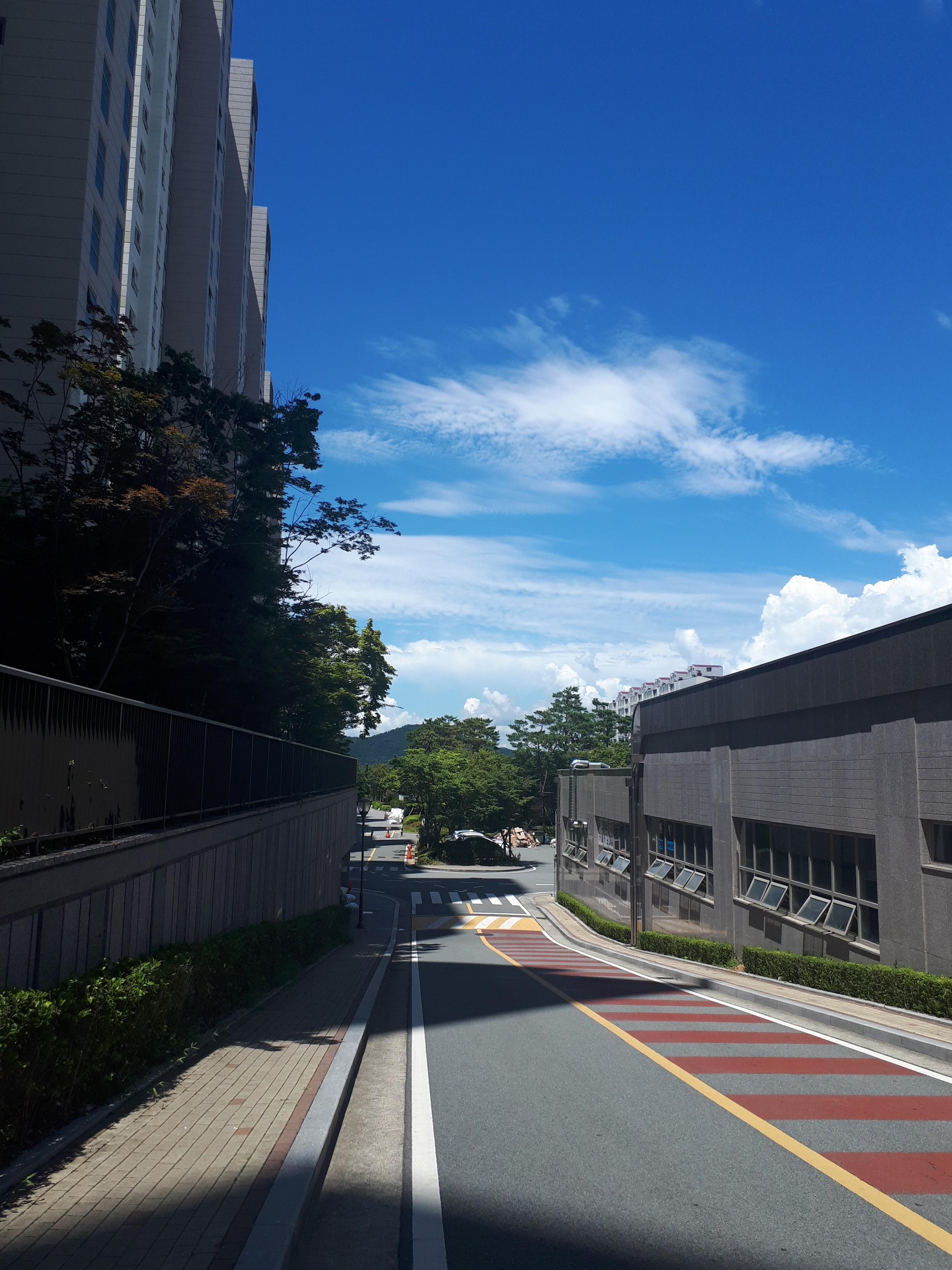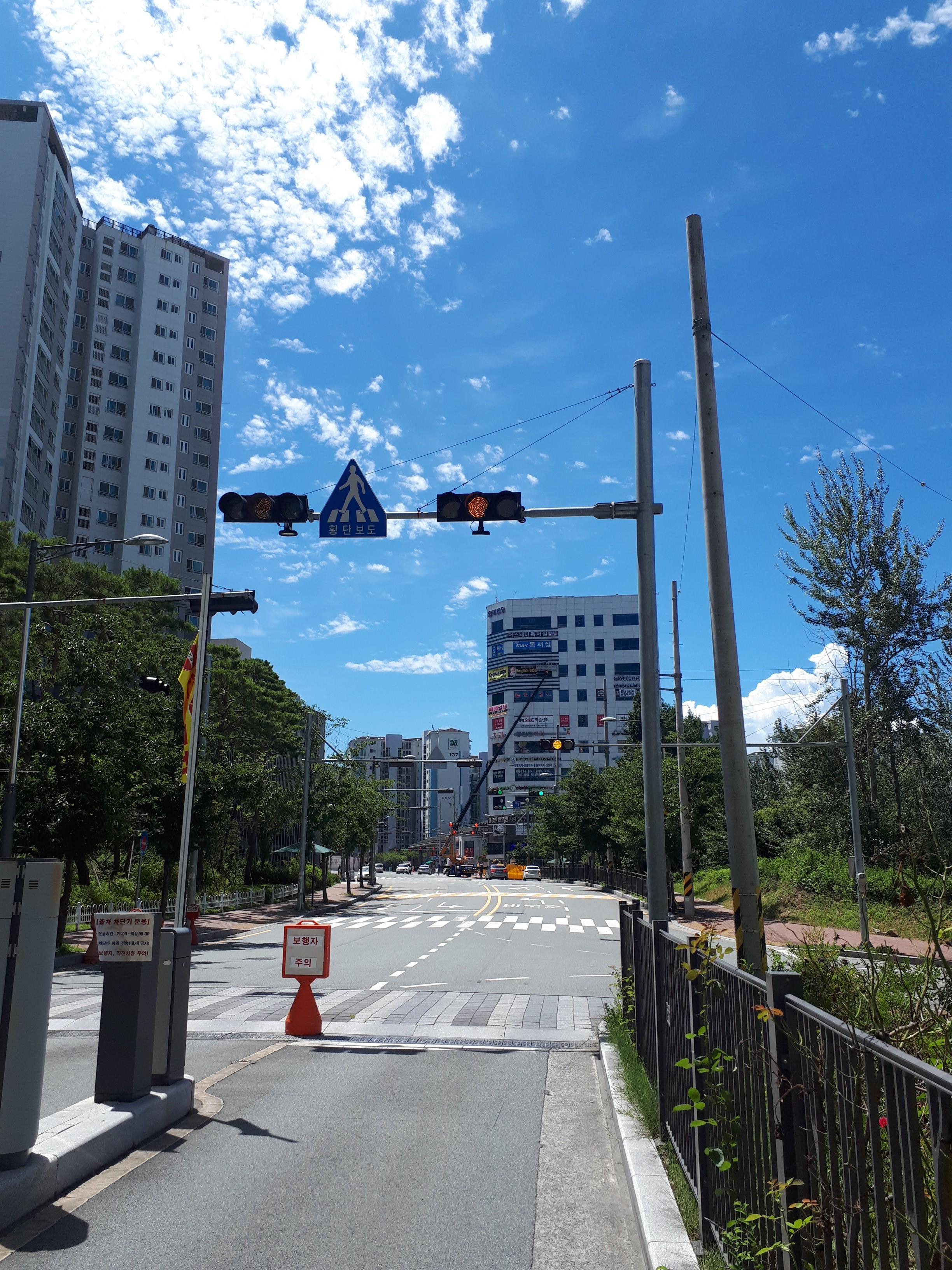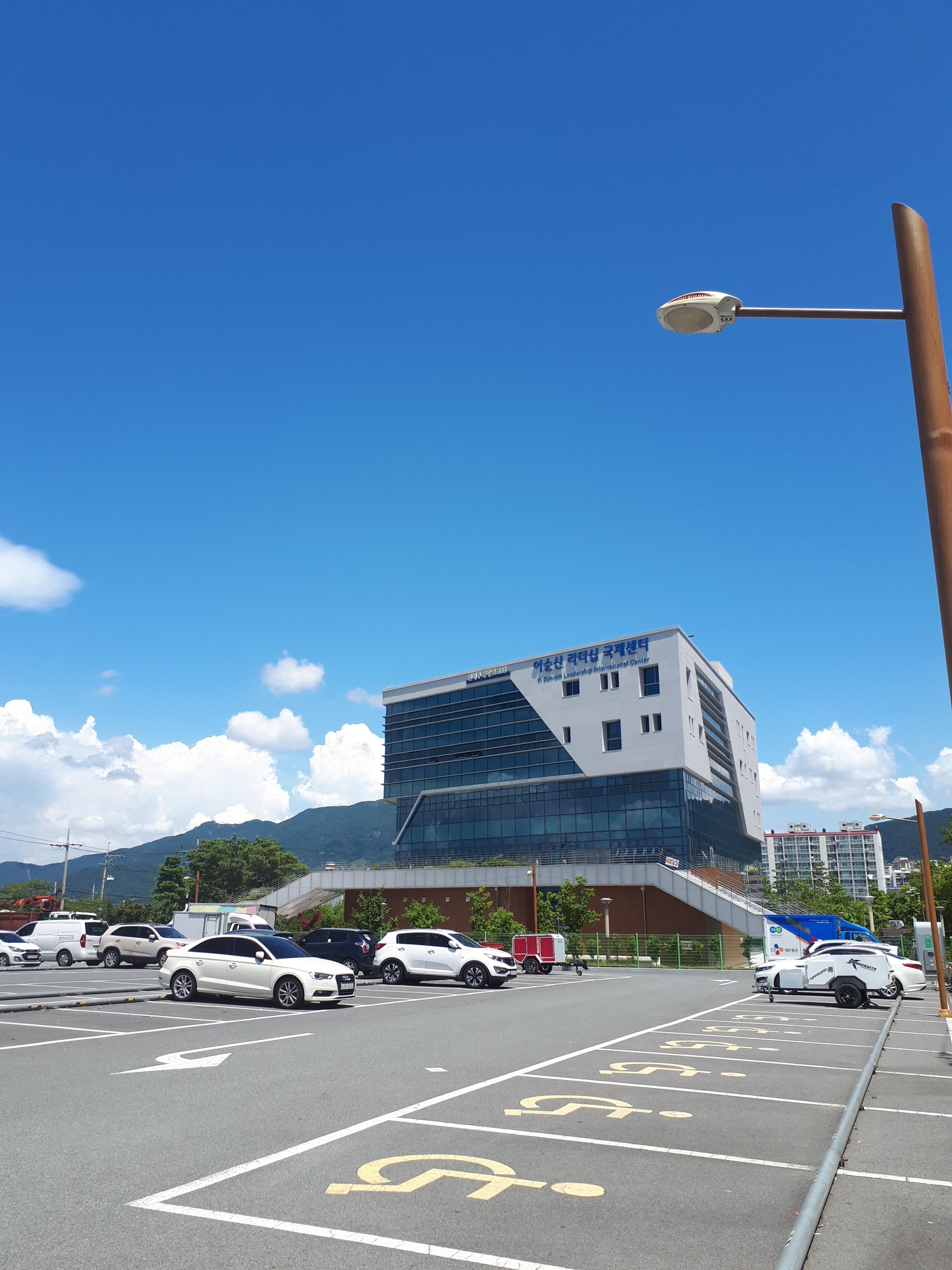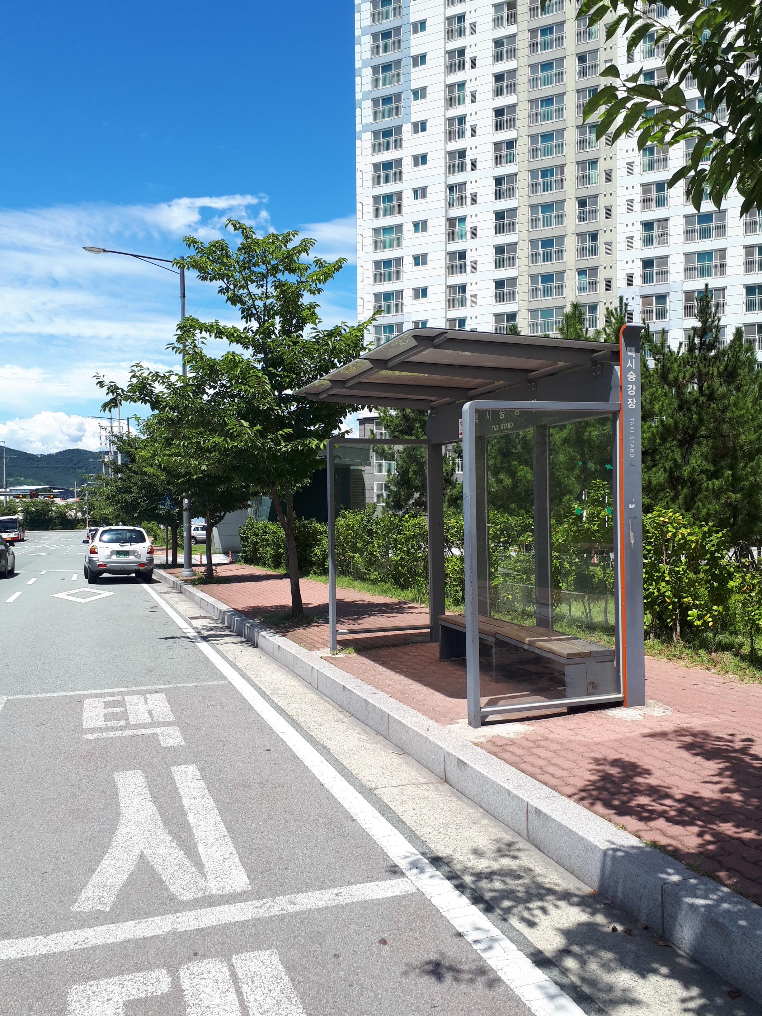 후문 2단지 쪽에는 상가가 들어서 있었고 그 밑으로, 택시정류장, 이순신리더쉽국제센터가, 그 앞에는 공원이 있었습니다.