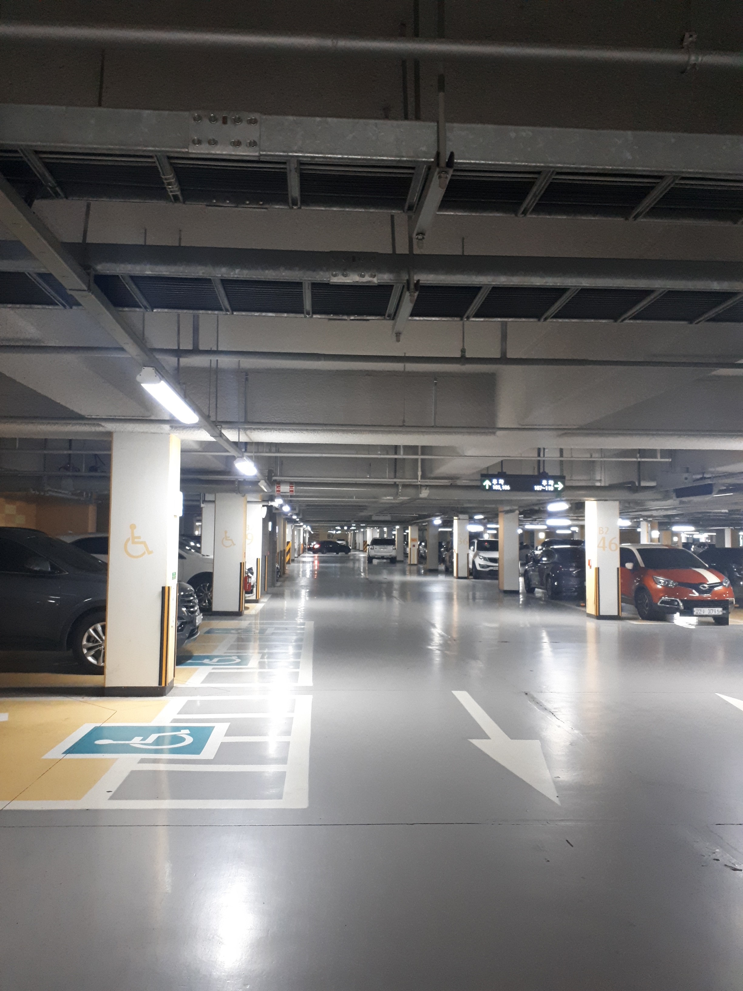 주차장은 118동까지 전부 이어져있어 주민 간의 이동이 편리했고 주차공간도 충분했습니다.