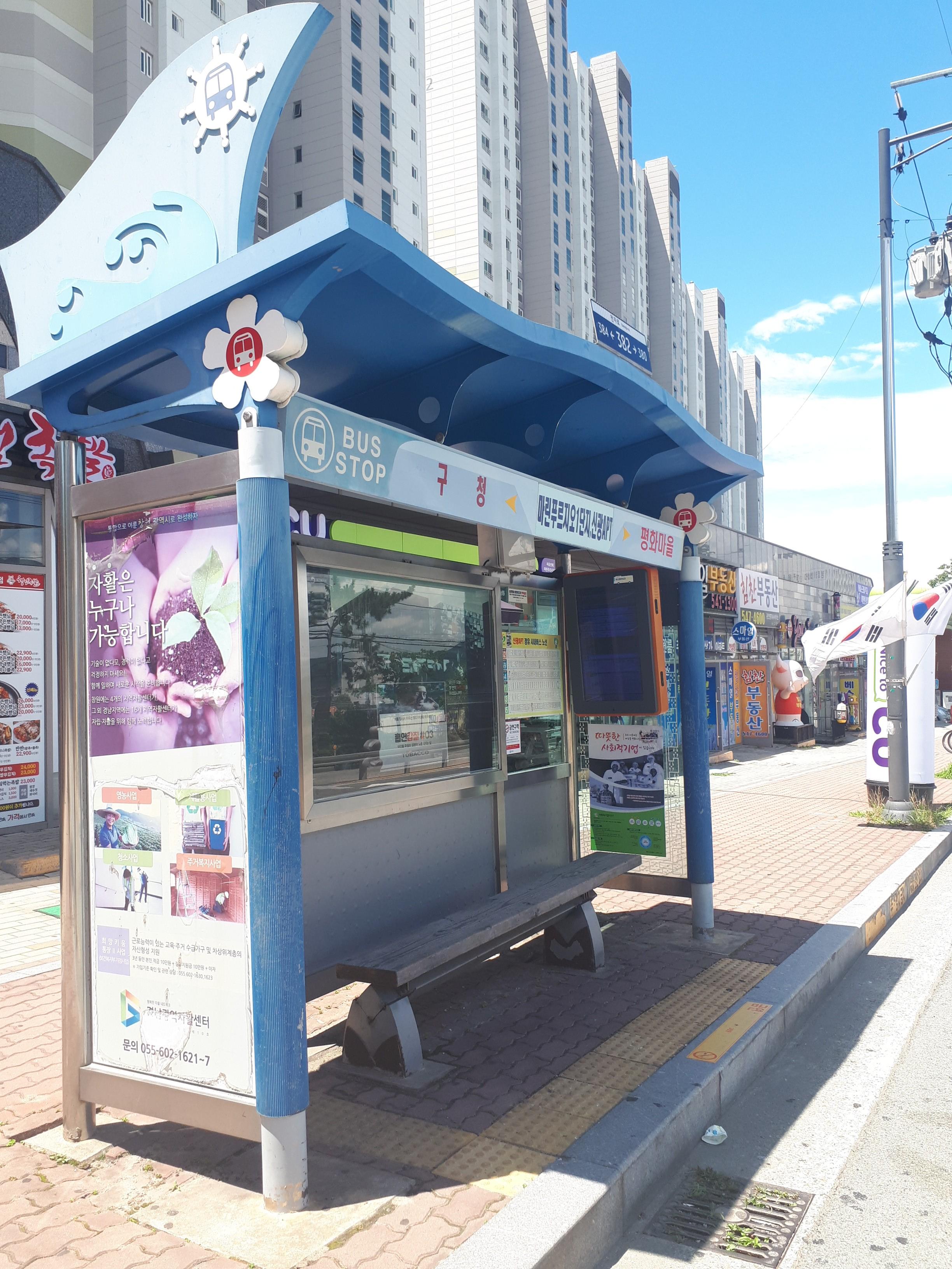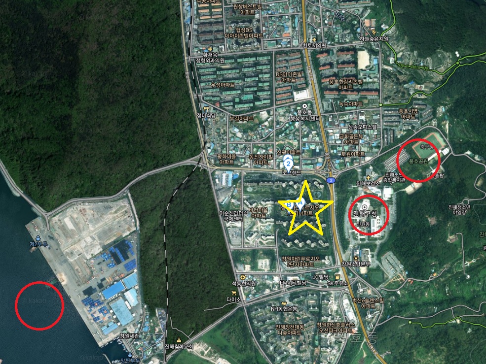 진해구청과 풍호공원에서 주민 시설을 이용할 수 있고 부두 쪽에 있어 바다 조망을 볼 수 있는 곳입니다.