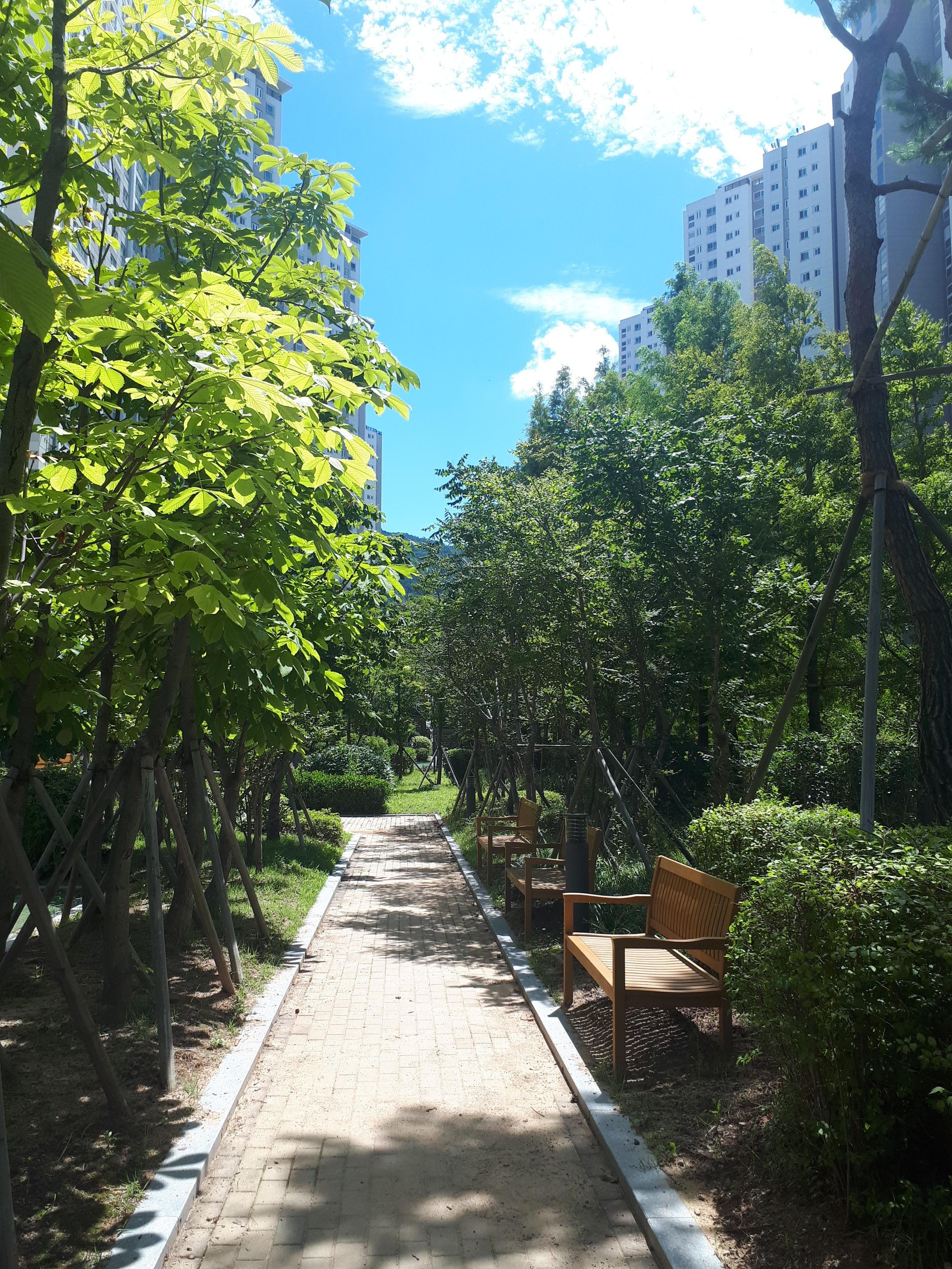 30분 넘게 걸으면서 느낀 점은 믿기 힘들 정도로 잘 가꿔진 조경입니다. 여러 아파트를 다니면서 한 가지 아쉬운 점은 바로 산책로의 패턴이 짧다는 점이었는데요, 여기는 단지가 너무 넓어 패턴도 다양하고 갈 곳도 많았습니다.