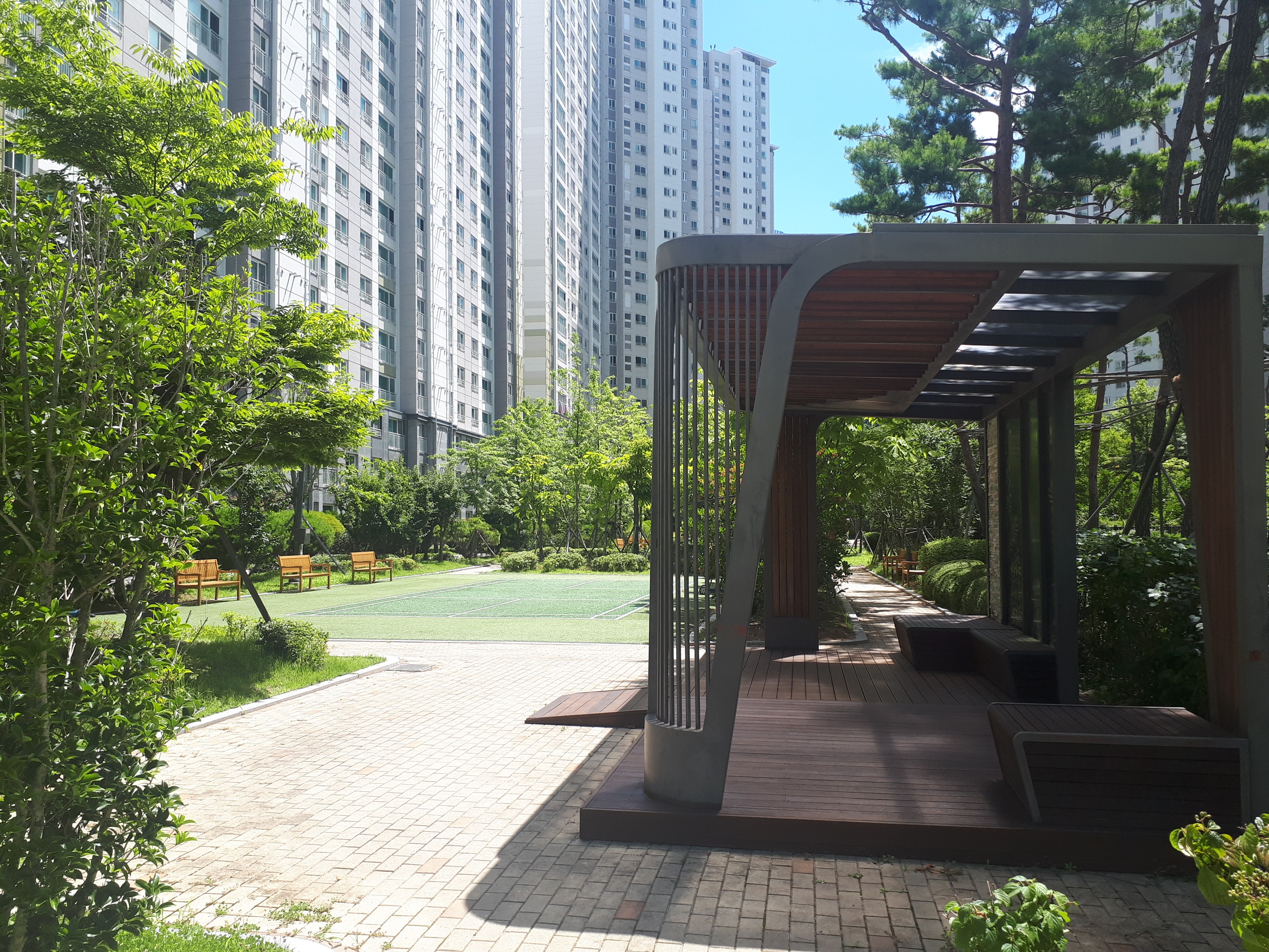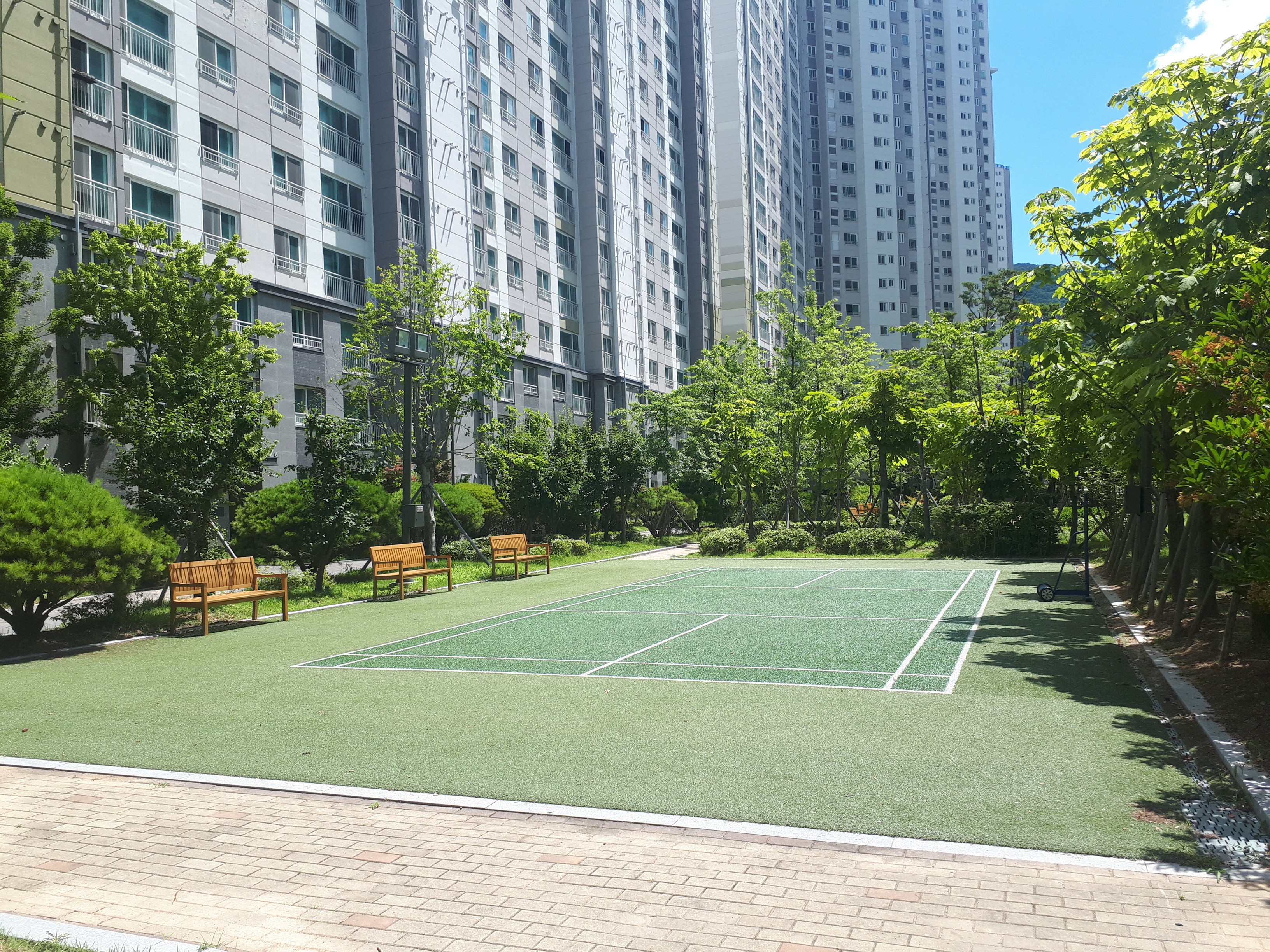 배드민턴장과 각종 운동기구 그리고 벤치가 곳곳에 잘 비치되어 뭘 해도 숲 속에 들어와 있는 기분이 들었습니다.