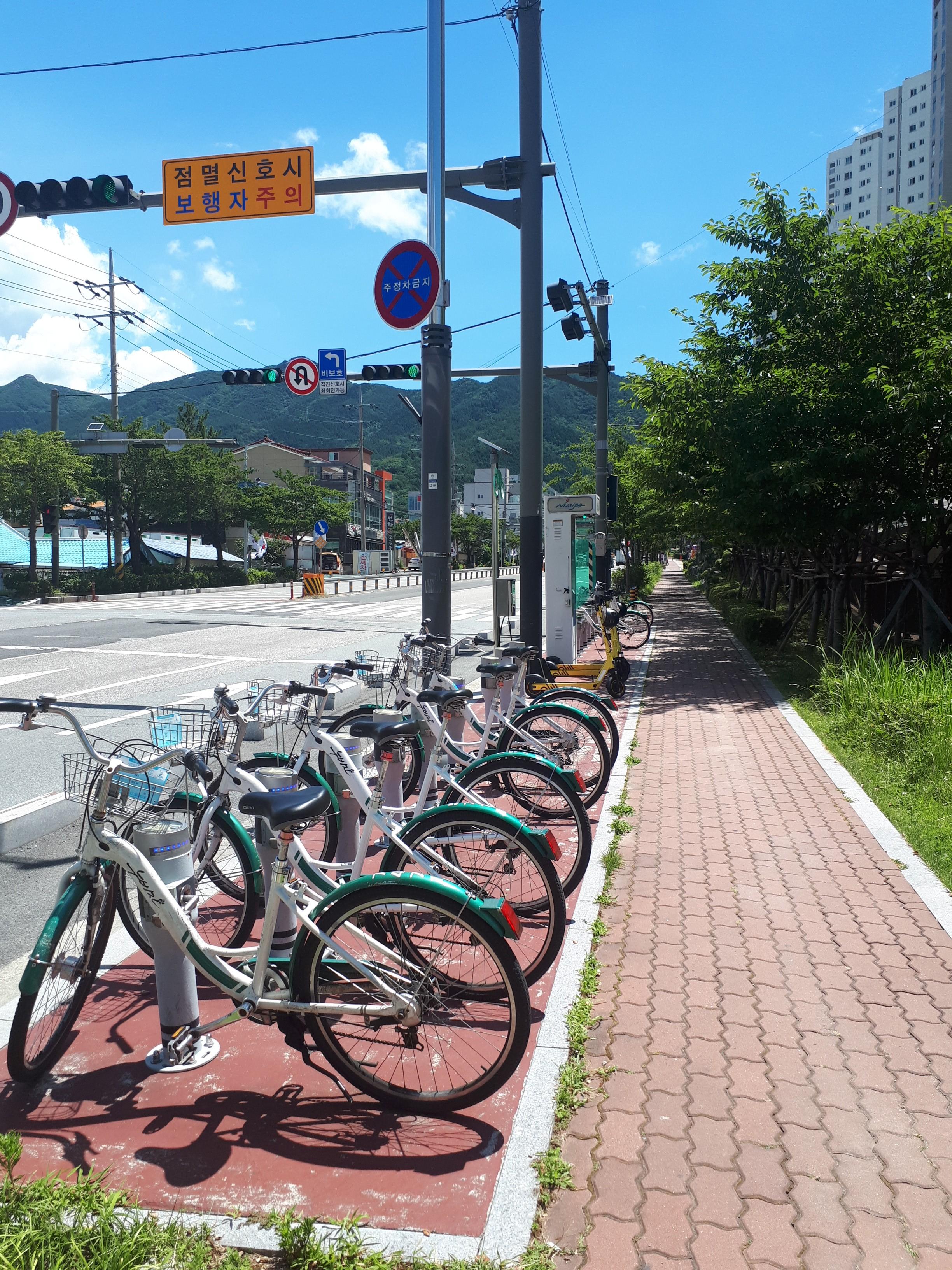 고깃집, 노브랜드 등 정문 쪽에도 상가가 꽤 많이 들어선 것을 볼 수 있었고 버스정류장과 누비자 공유 자전거 정류장이 있었습니다.