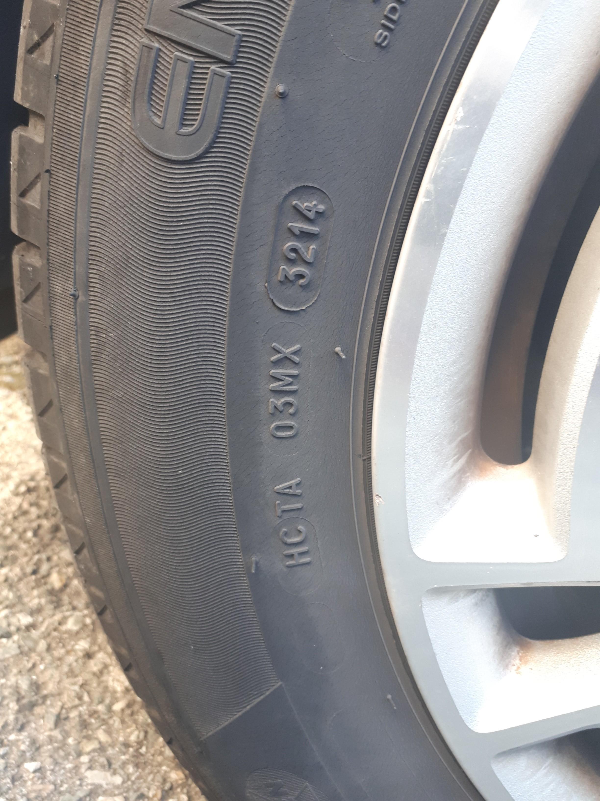 문득 차를 주차하고 타이어를 살펴봤는데 2014년 32번째 주에 생산된 타이어가 달려있는 것이 보였습니다.(위 사진에서 타이어에 3214라고 적힌 부분)