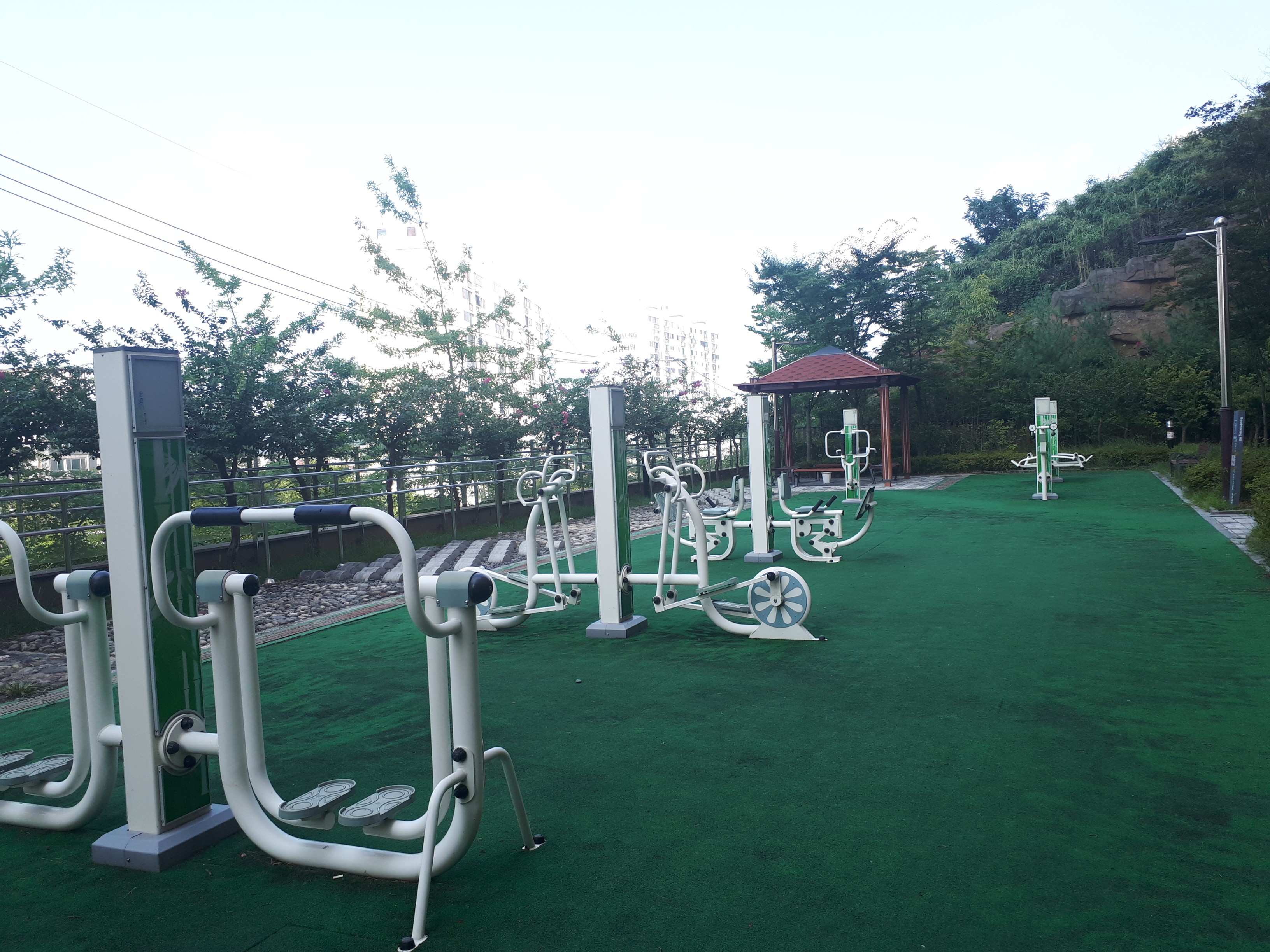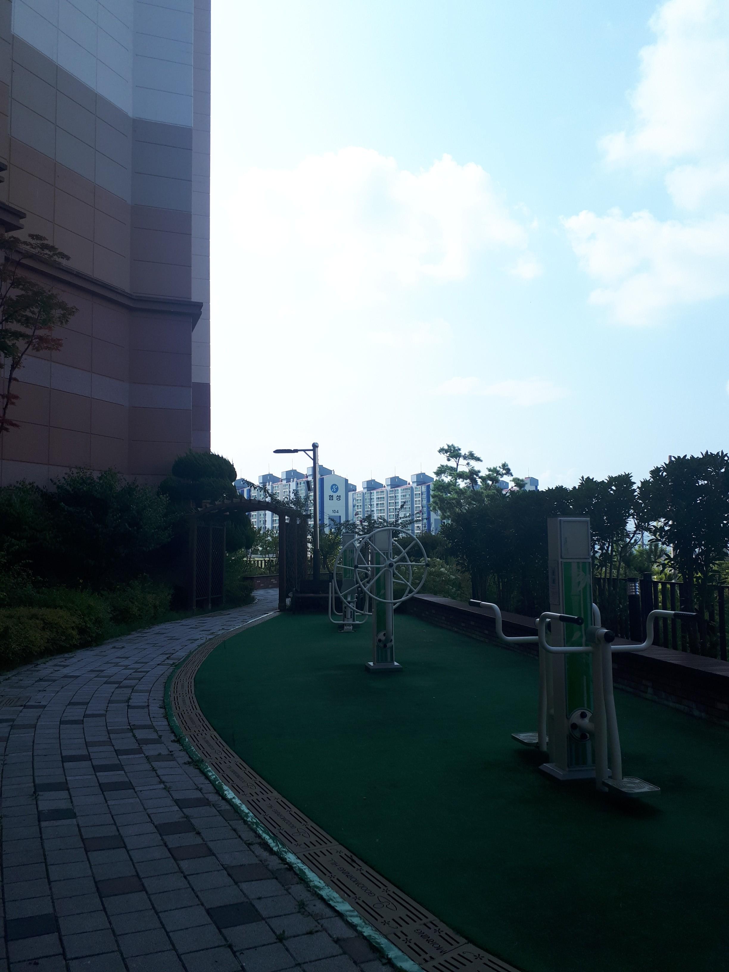 전체적으로 탁 트여보이고 깔끔했습니다. 곳곳에 운동기구와 휴식공간이 있어서 좋았습니다.