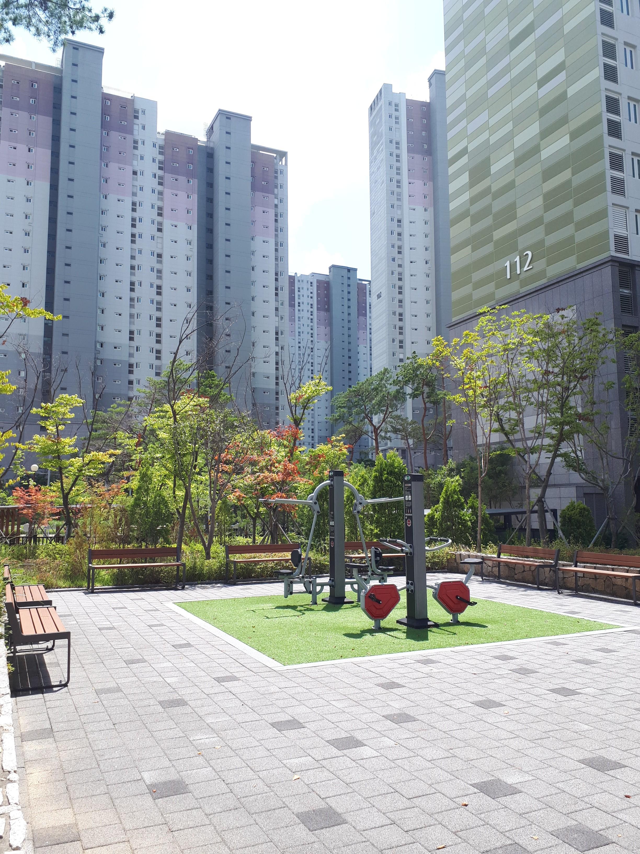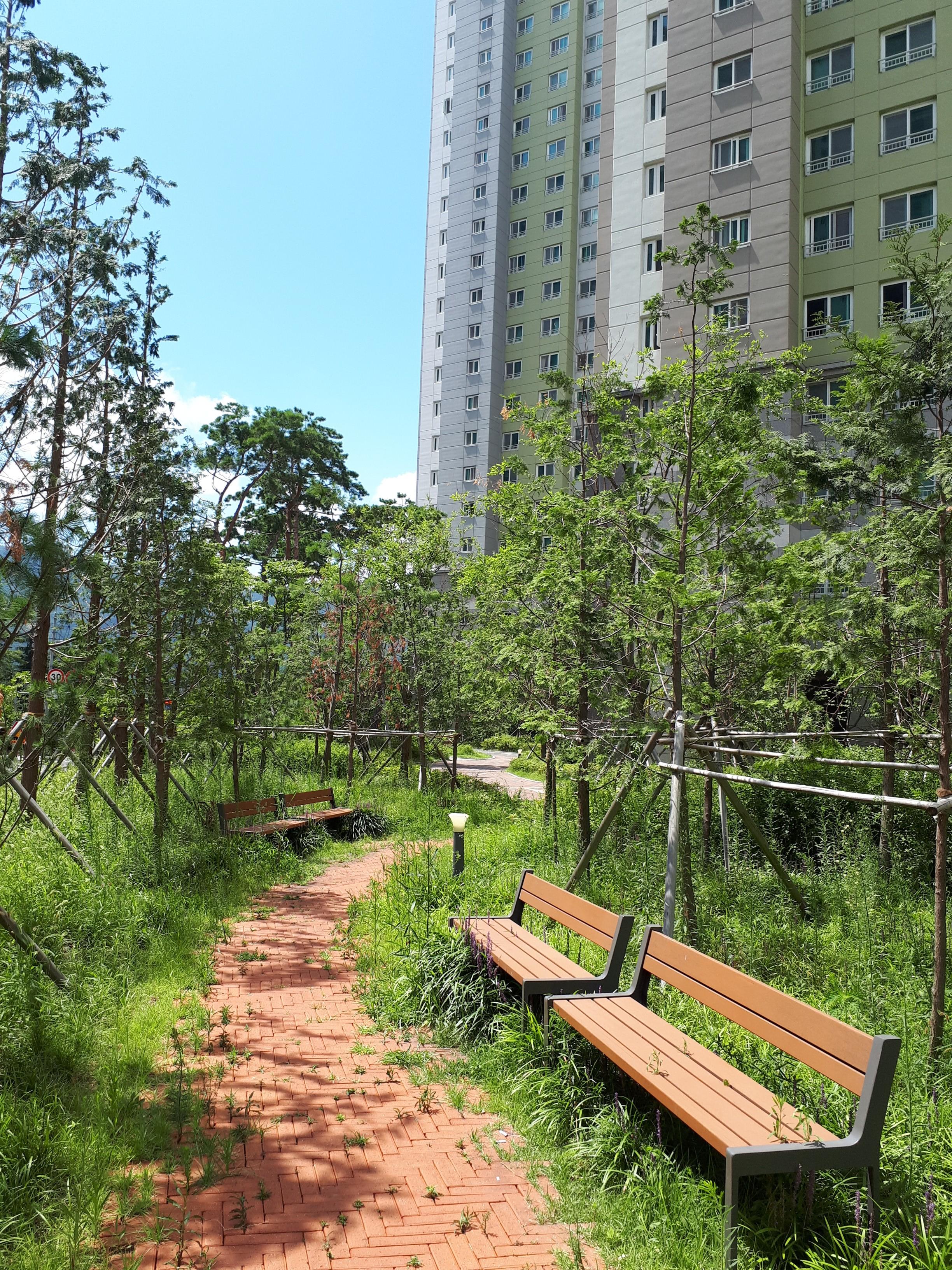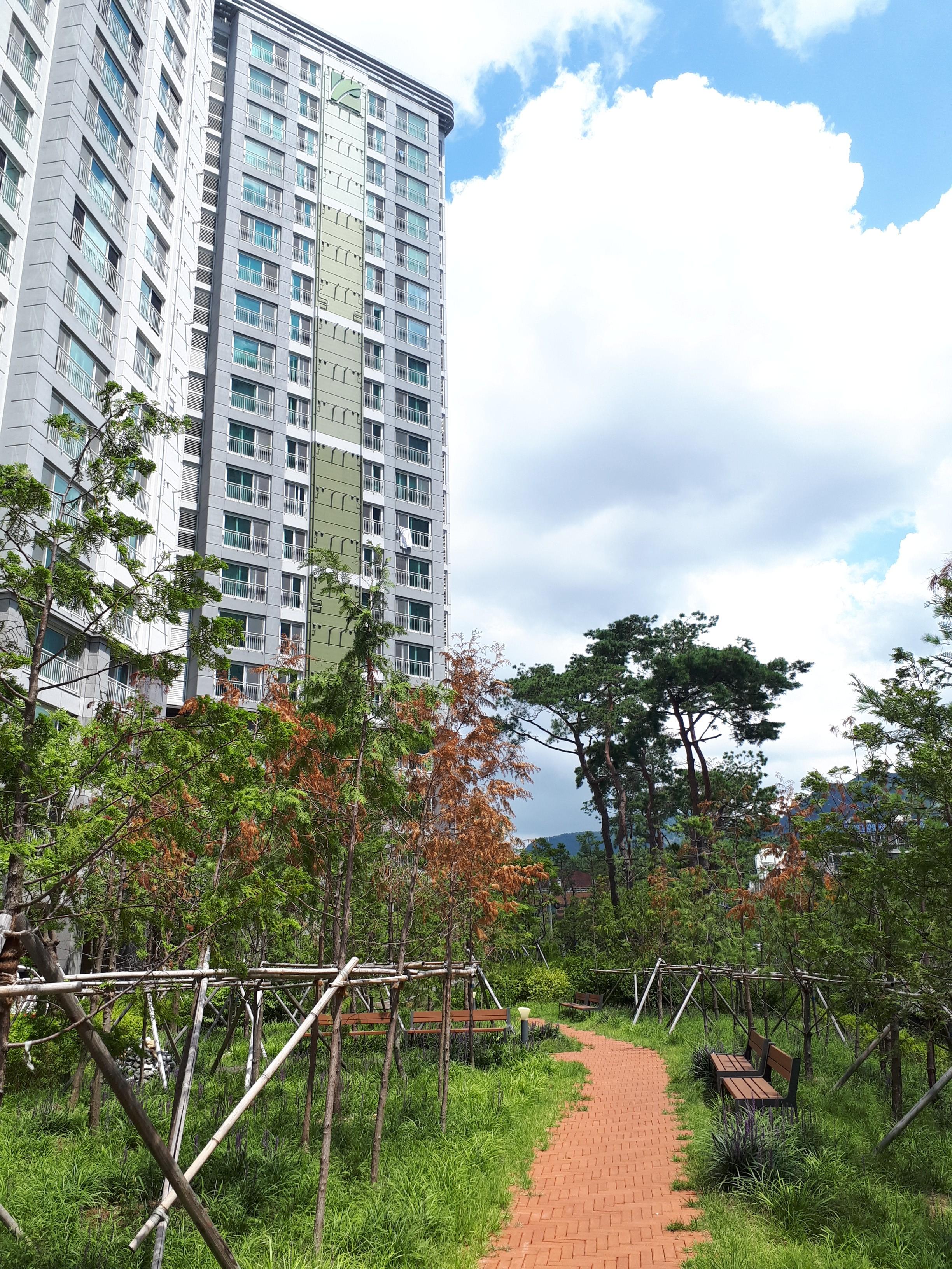 소문대로 조경이 화려해서 공원에 가지 않아도 숲세권을 느낄 수 있었습니다. 조형물도 특색 있게 잘 설치되어있었고 산책로도 잘 형성되어있었습니다.