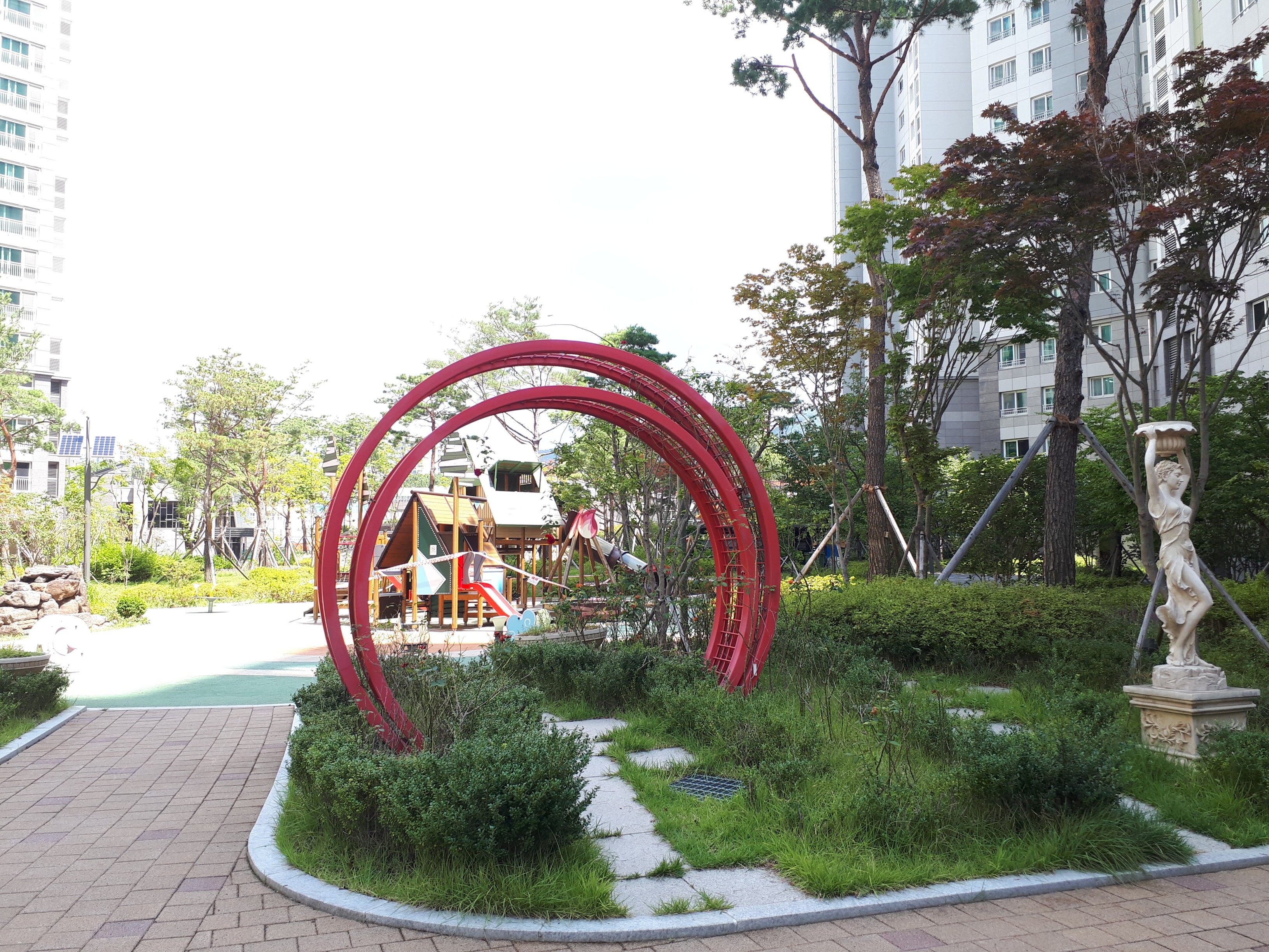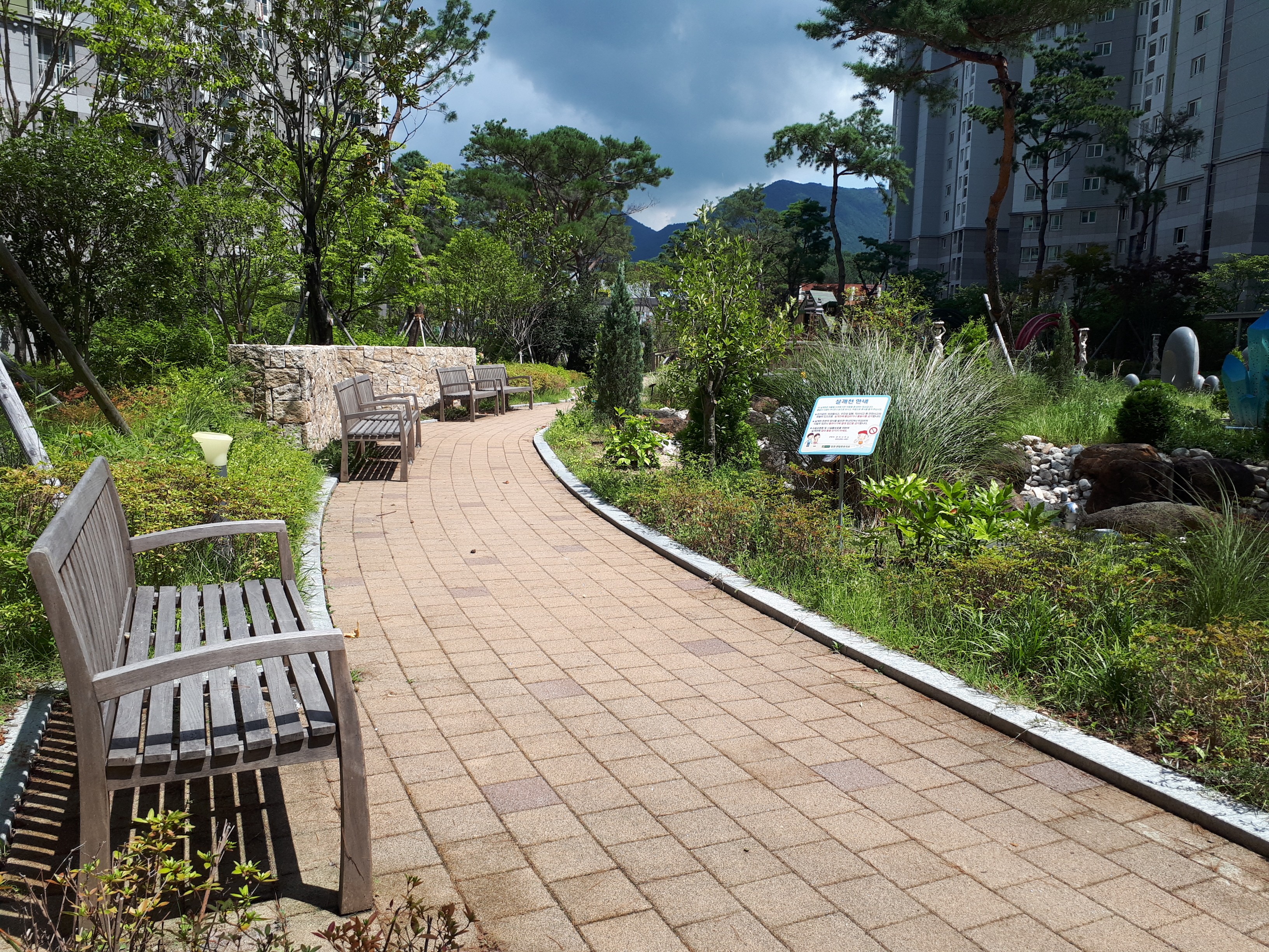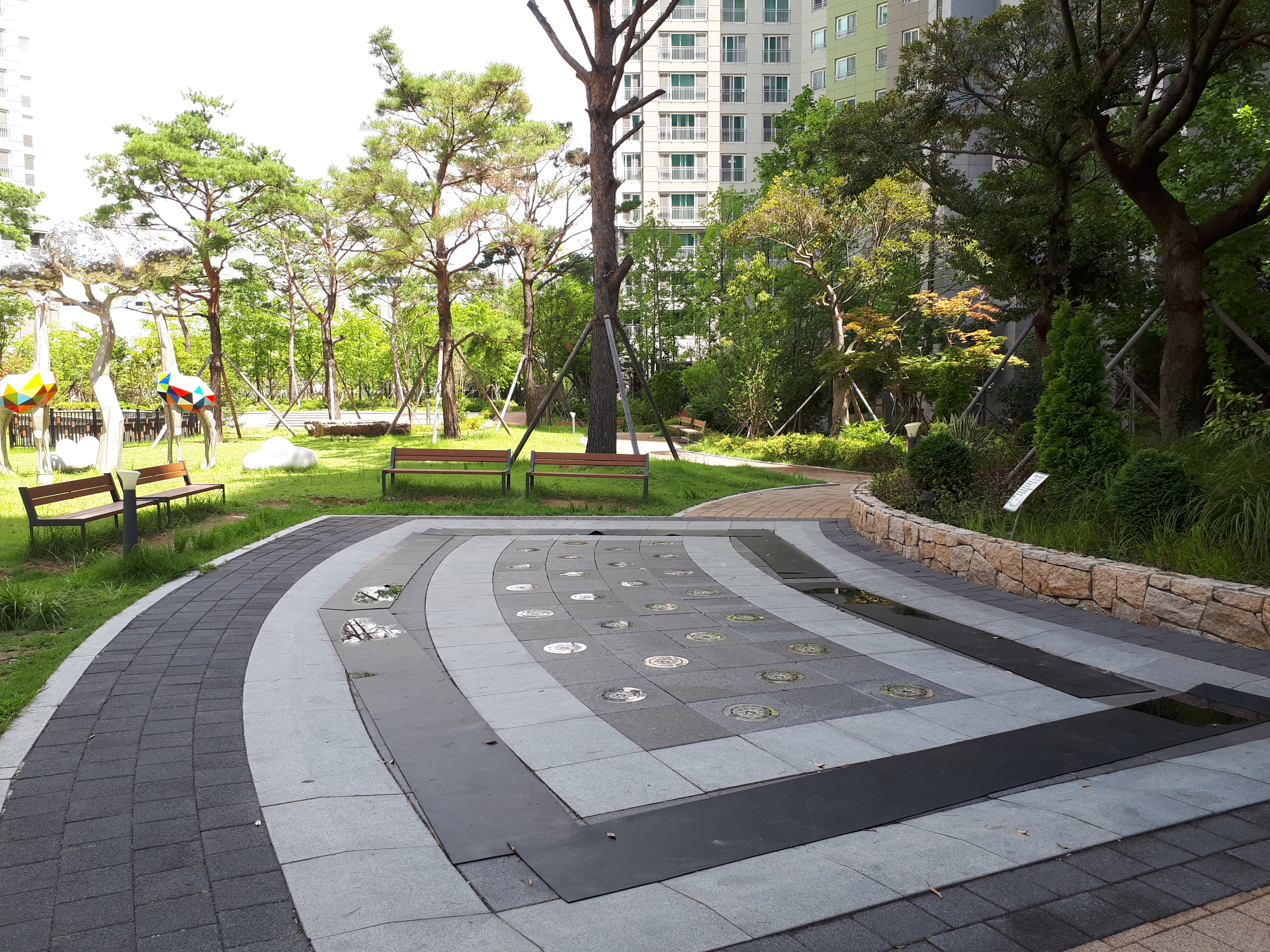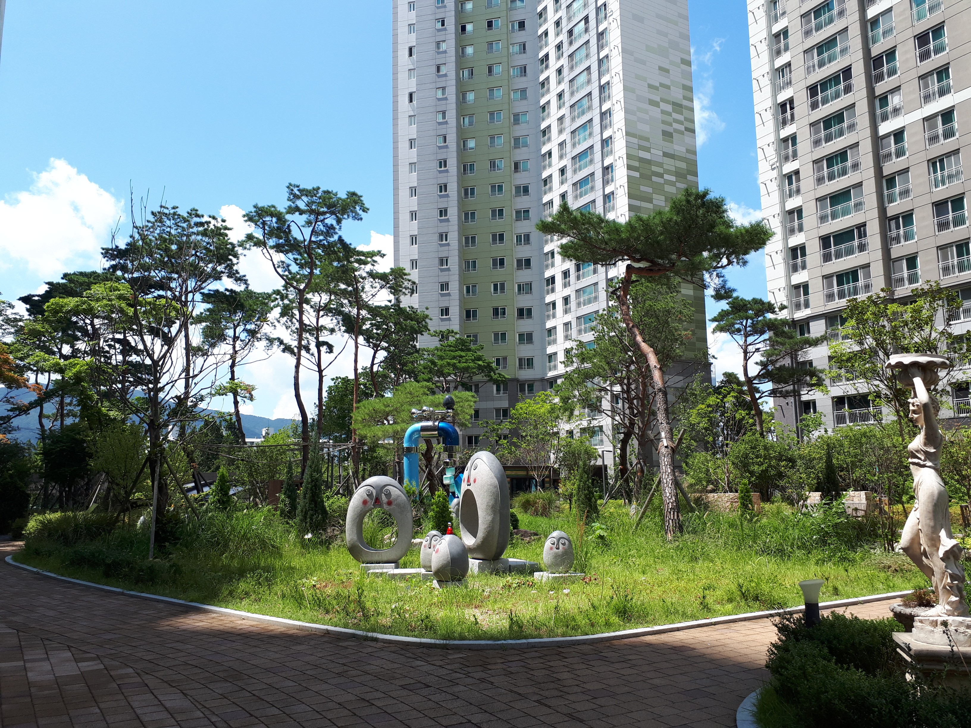 소문대로 조경이 화려해서 공원에 가지 않아도 숲세권을 느낄 수 있었습니다. 조형물도 특색 있게 잘 설치되어있었고 산책로도 잘 형성되어있었습니다.
