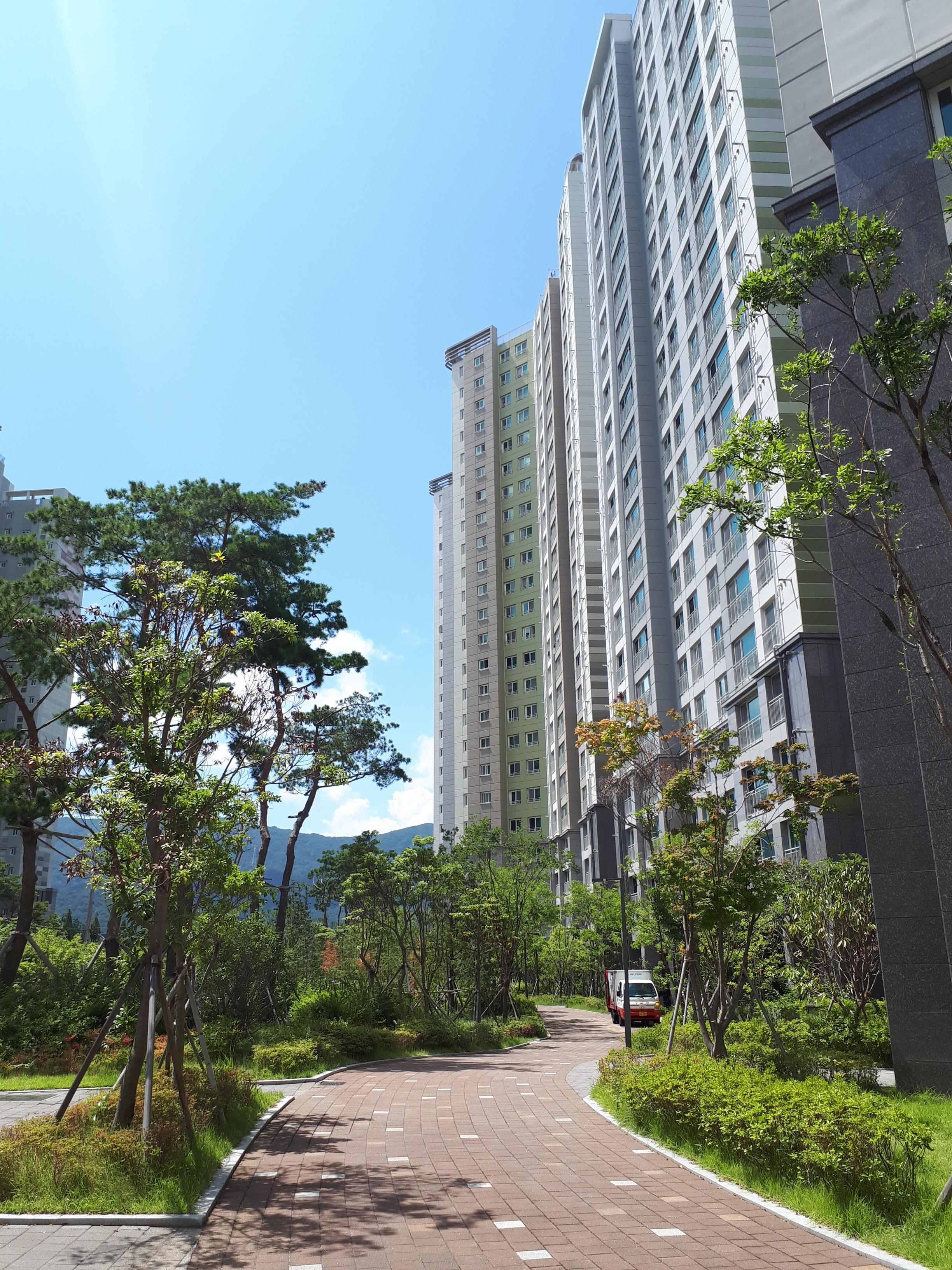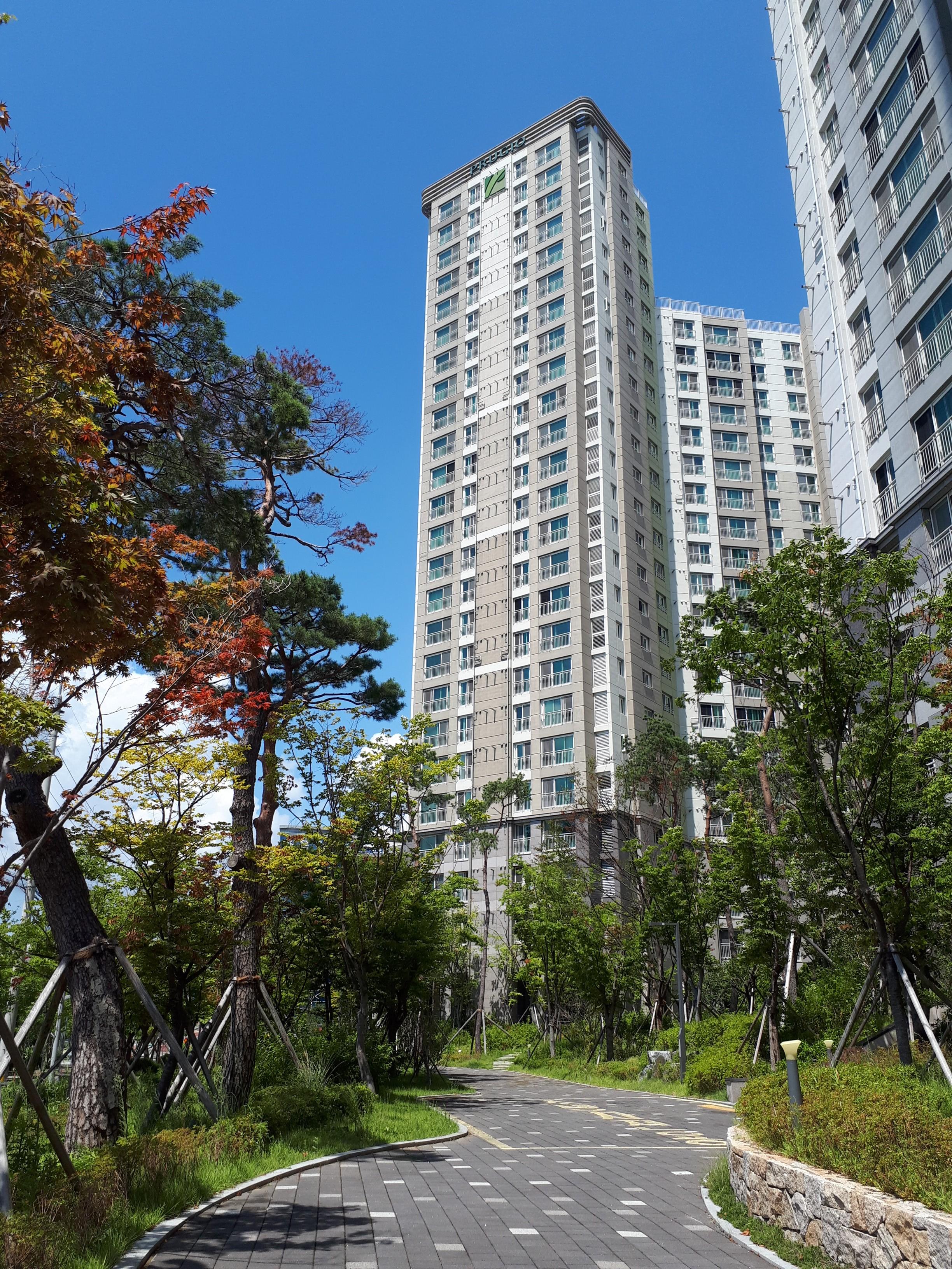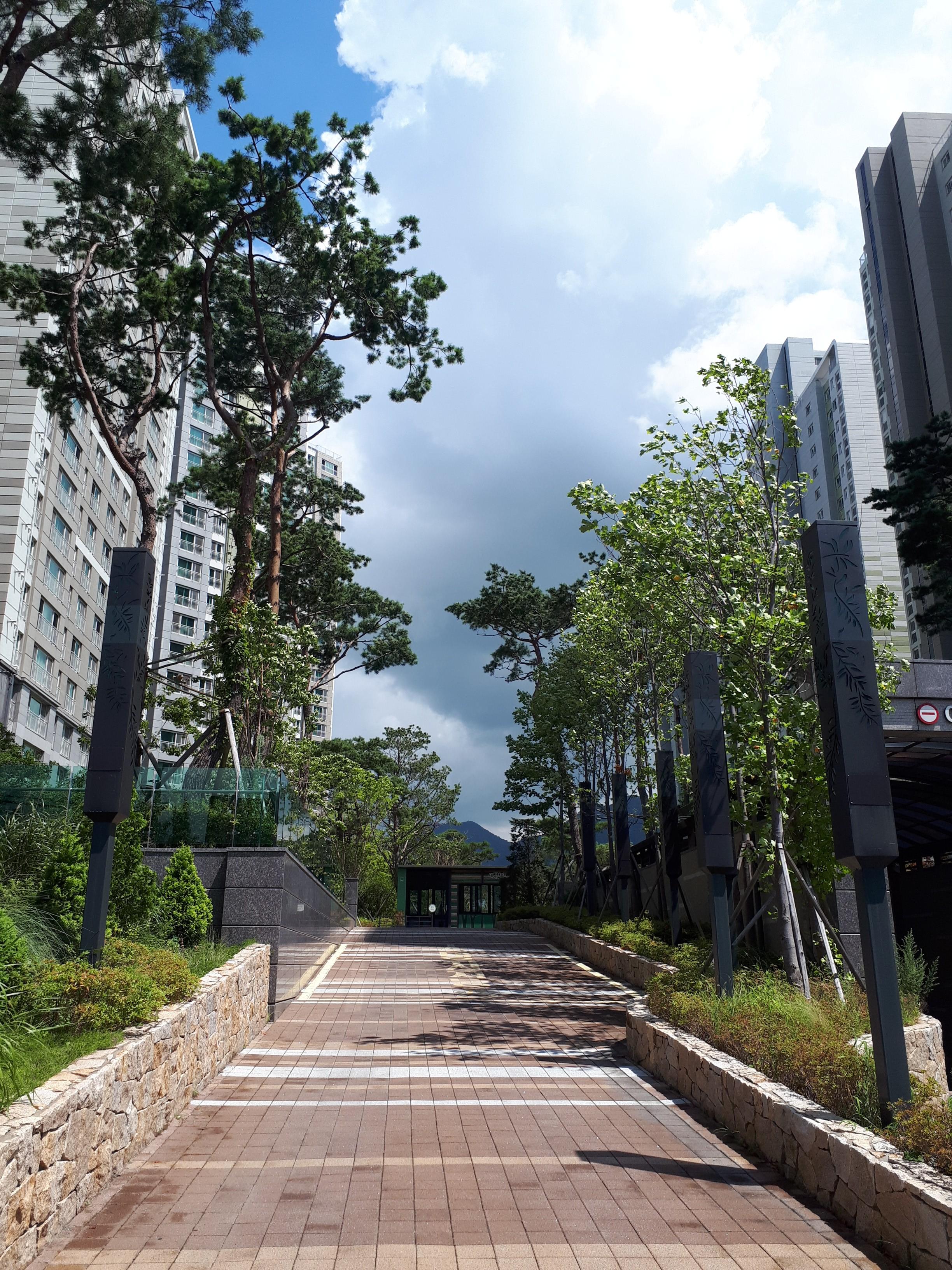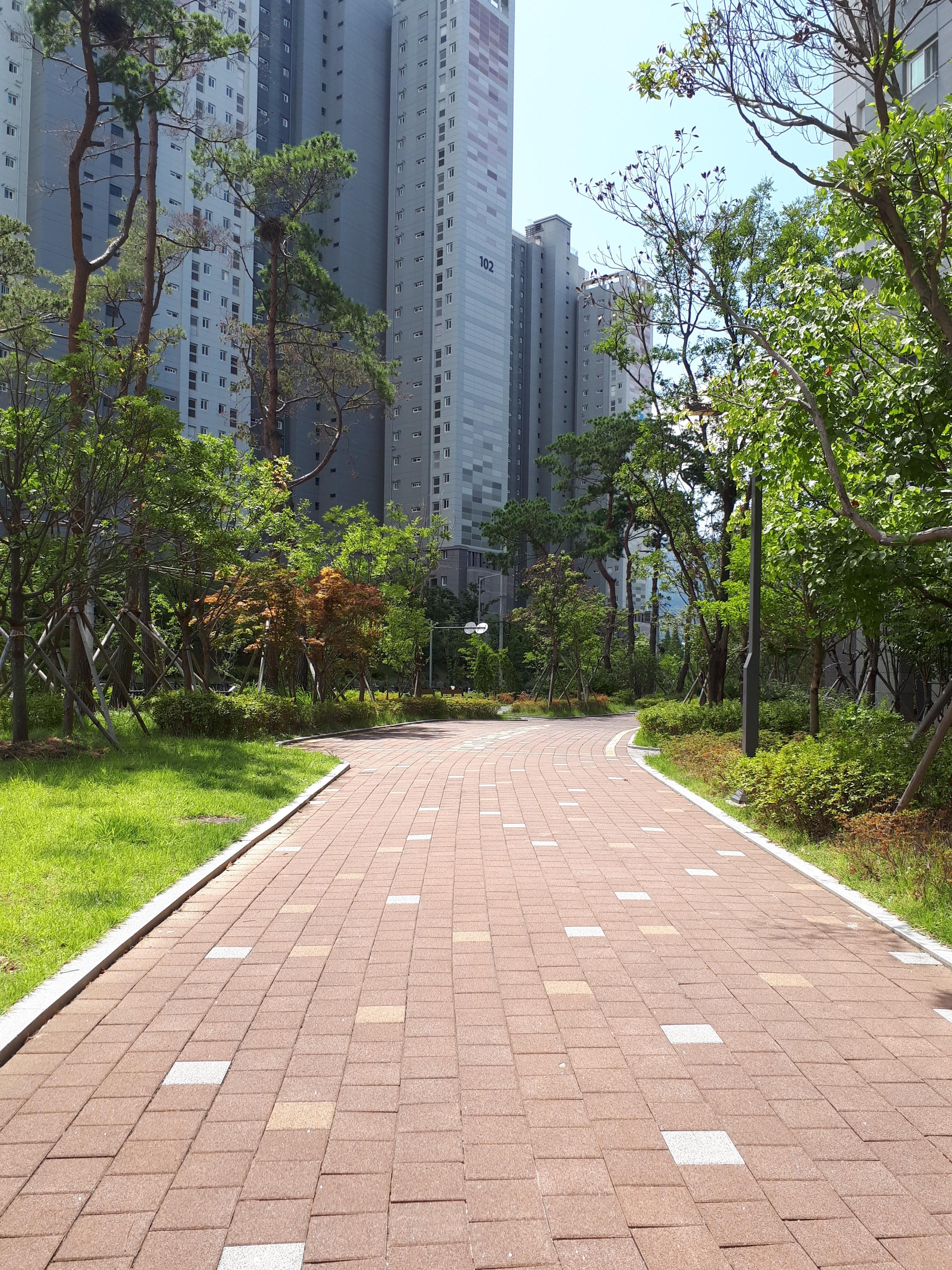 개인적으로 느낀 점은 창원 외에 대부분 푸르지오 아파트는 먼저 세대수를 우선시하는 곳들과는 다르게 길부터 먼저 내고 그다음에 건물을 올리는 형식인 것 같습니다. 조경과 산책로가 잘 형성돼있고 단지 내 통행이 용이한 까닭입니다.