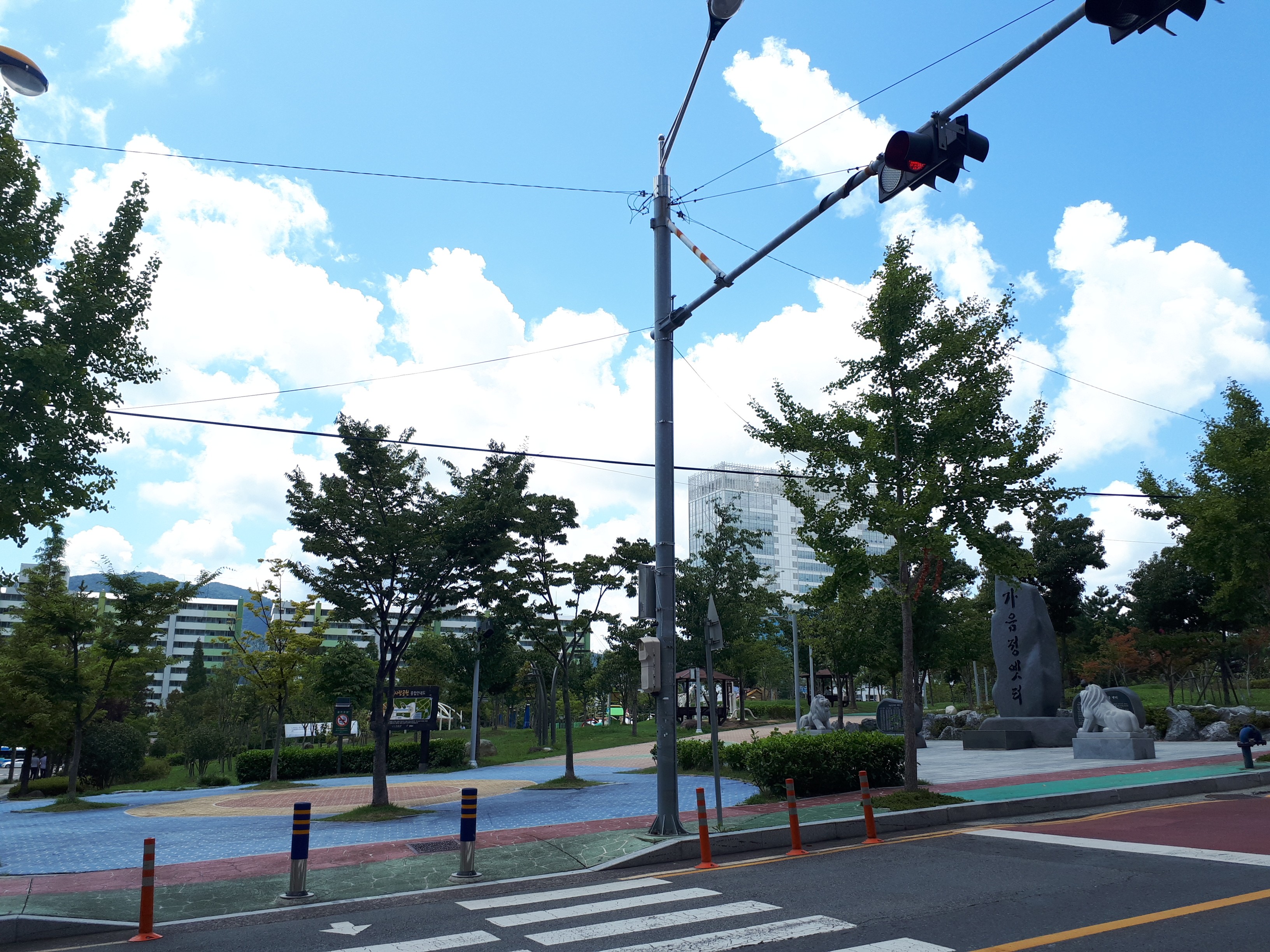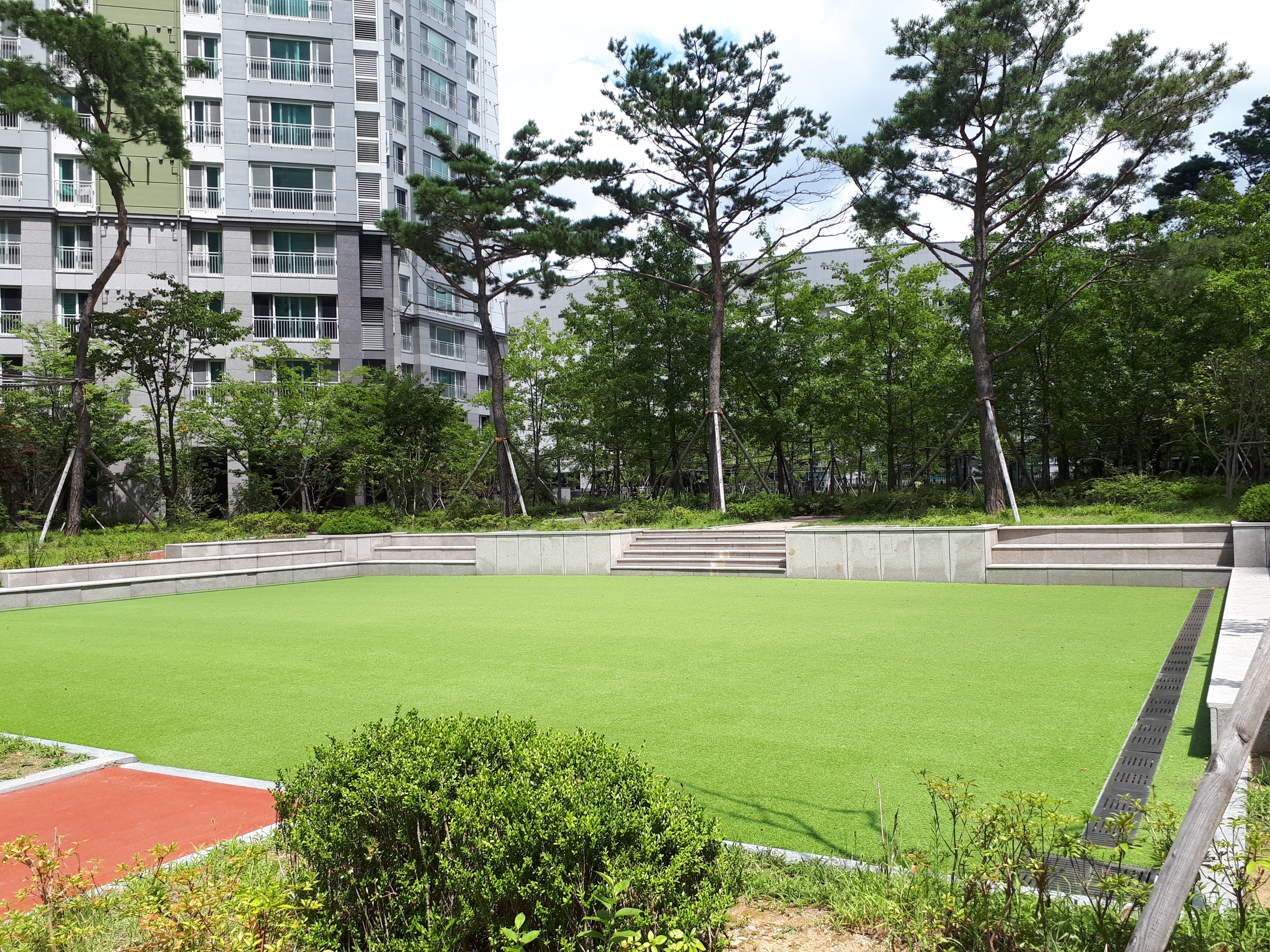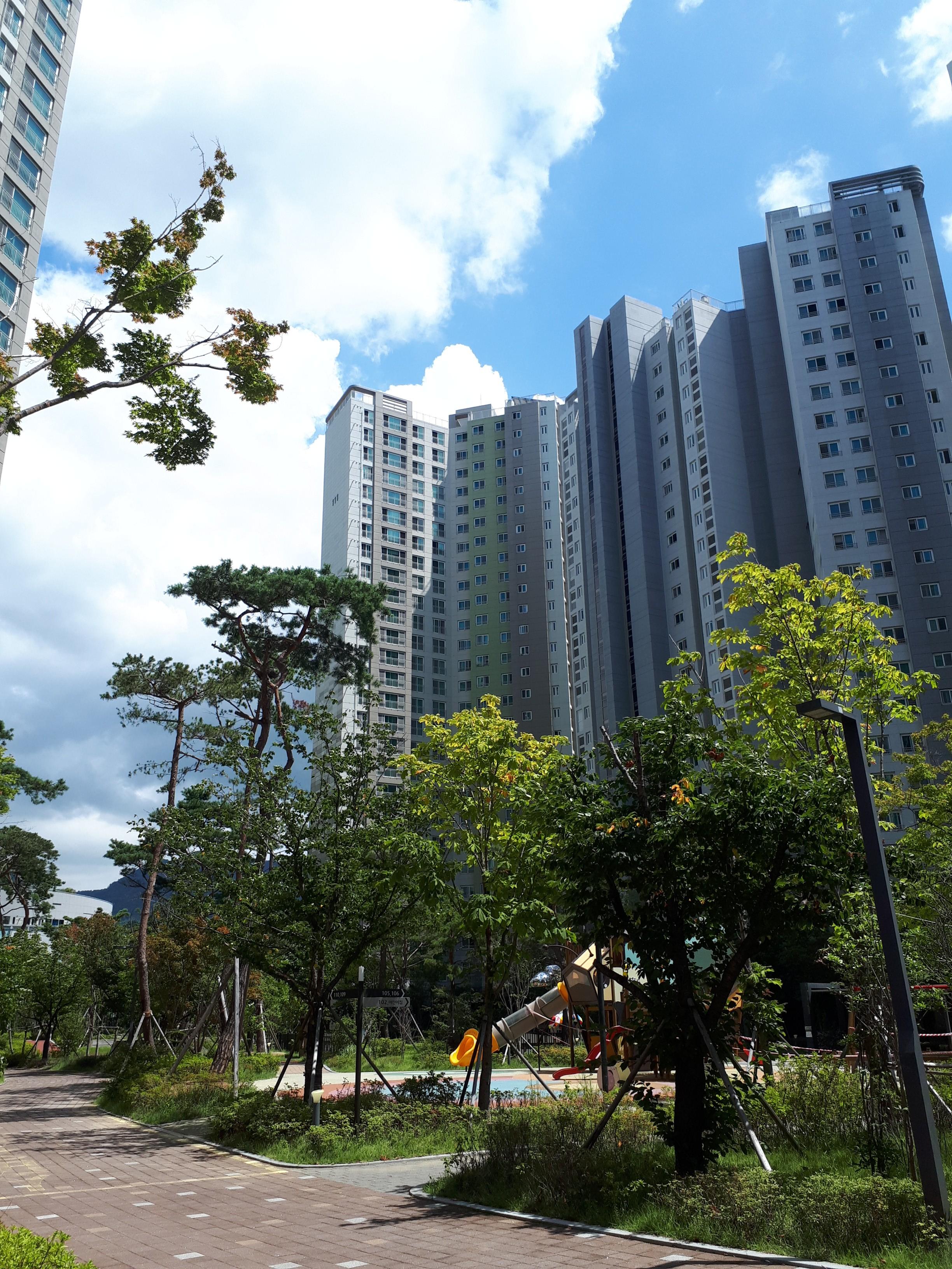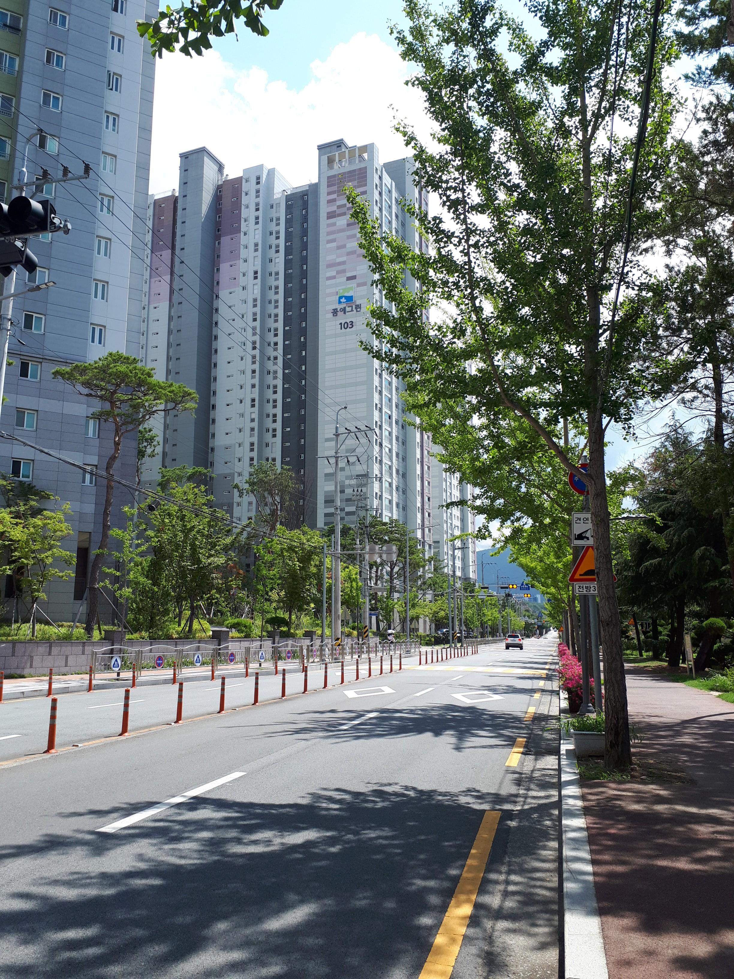 개인적으로 느낀 점은 창원 외에 대부분 푸르지오 아파트는 먼저 세대수를 우선시하는 곳들과는 다르게 길부터 먼저 내고 그다음에 건물을 올리는 형식인 것 같습니다. 조경과 산책로가 잘 형성돼있고 단지 내 통행이 용이한 까닭입니다.