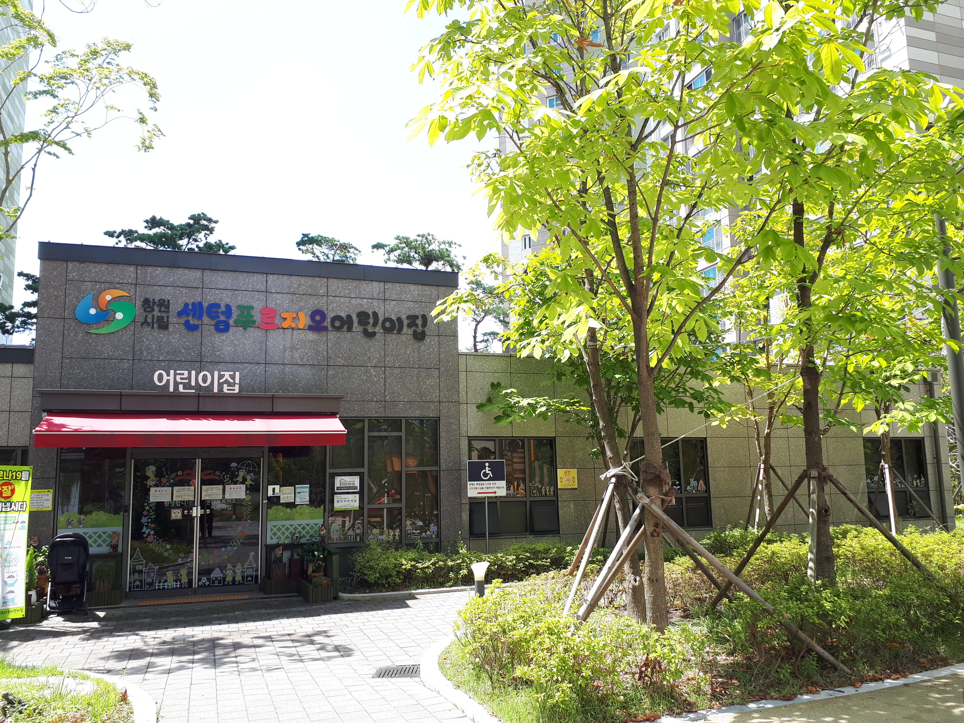 어린이집과 그 옆에 있는 작은 화단은 아이들이 식물을 만지며 체험하기 아주 좋아 보였습니다.