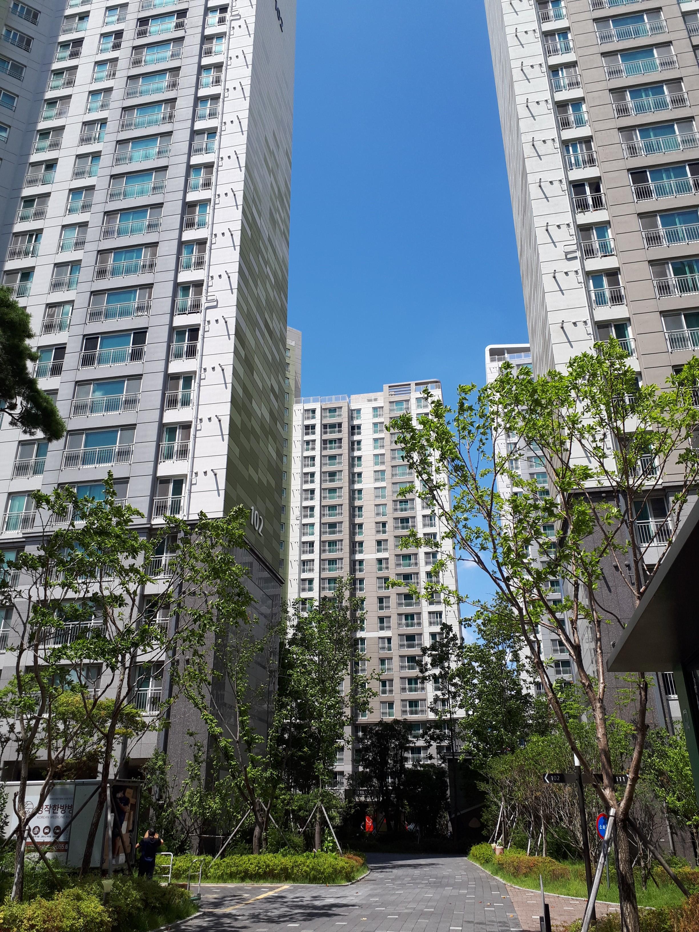 이곳은 975세대, 2018년 1월에 입주하여 올해로 4년 차인 곳으로 전세대가 필로티인 곳입니다.