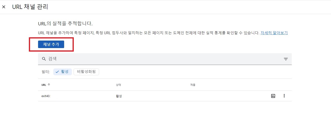 저는 추가할 때 월간 방문자로 설정한 뒤 상위에 있는 URL 채널을 추가했습니다.