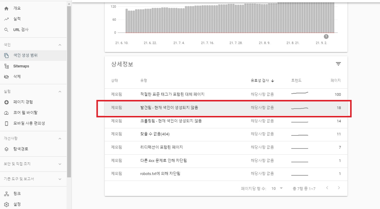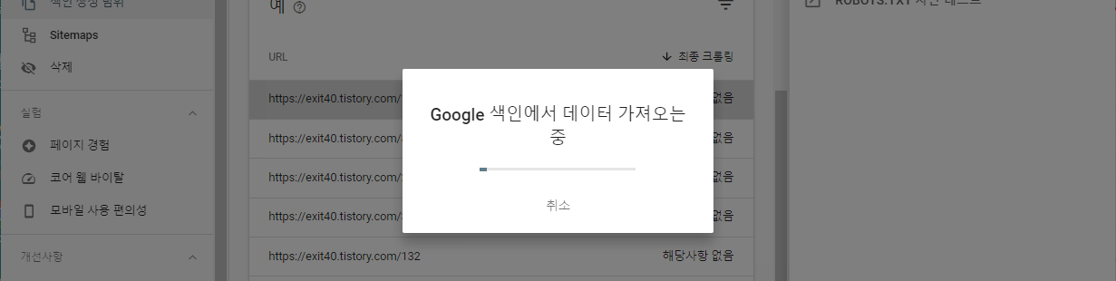 남아있는 18개 중에서도 URL검사 시 대부분 색인 등록이 되어있어 조만간 모두 색인이 등록될 것으로 예상됩니다.