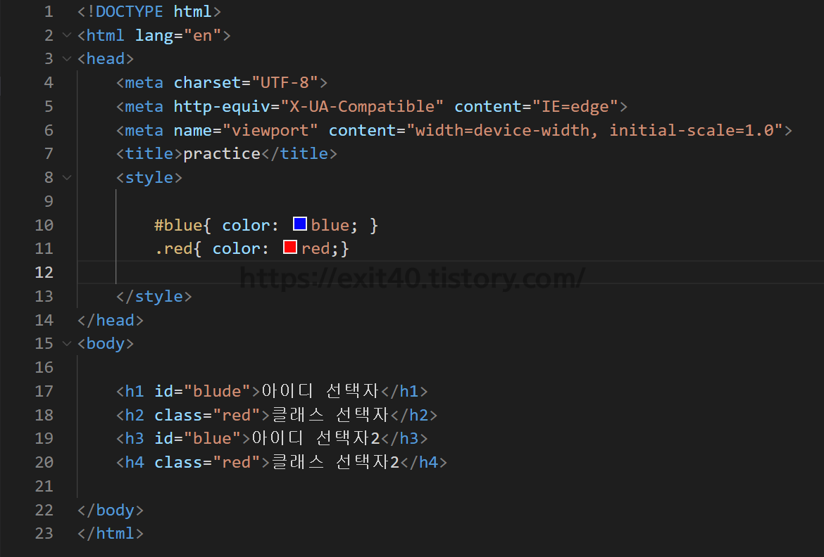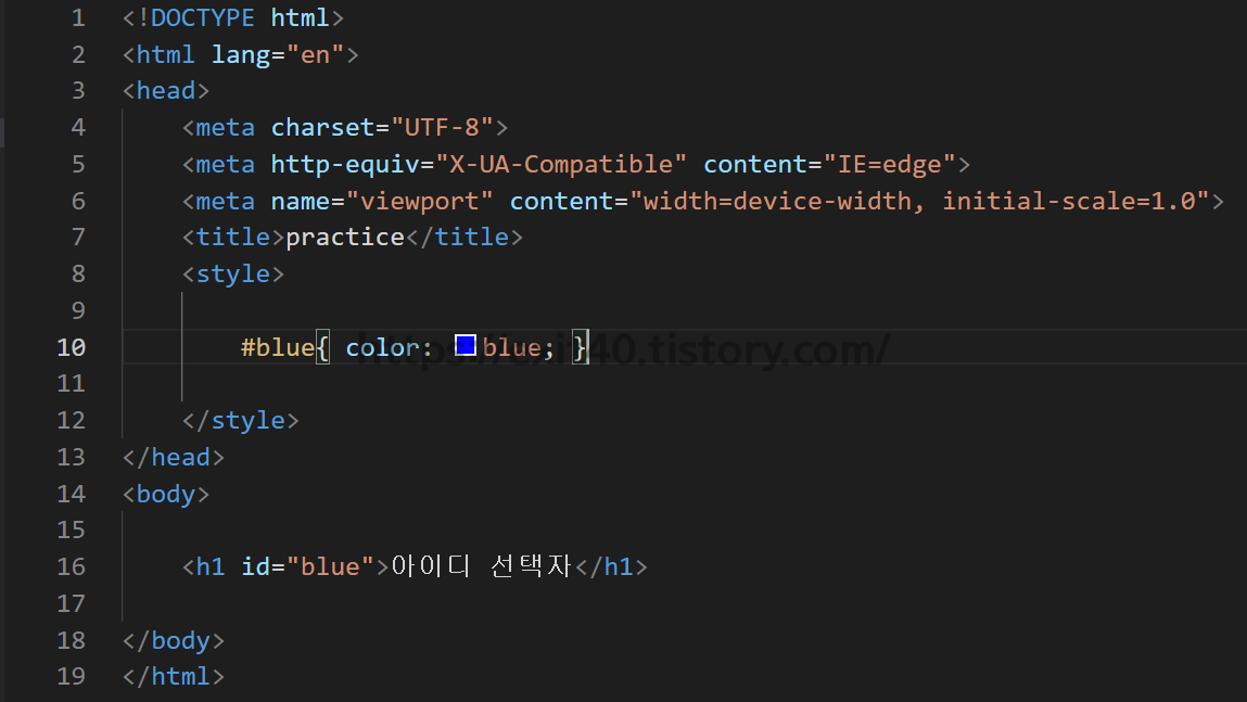 id선택자 또한 먼저 body에서 id명을 지정한 뒤 style에서 적용시키면 됩니다.