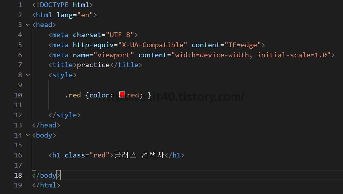이러한 형식으로 지정하면 클래스 명이 "red"로 되어있는 모든 태그에 같은 스타일이 적용됩니다.