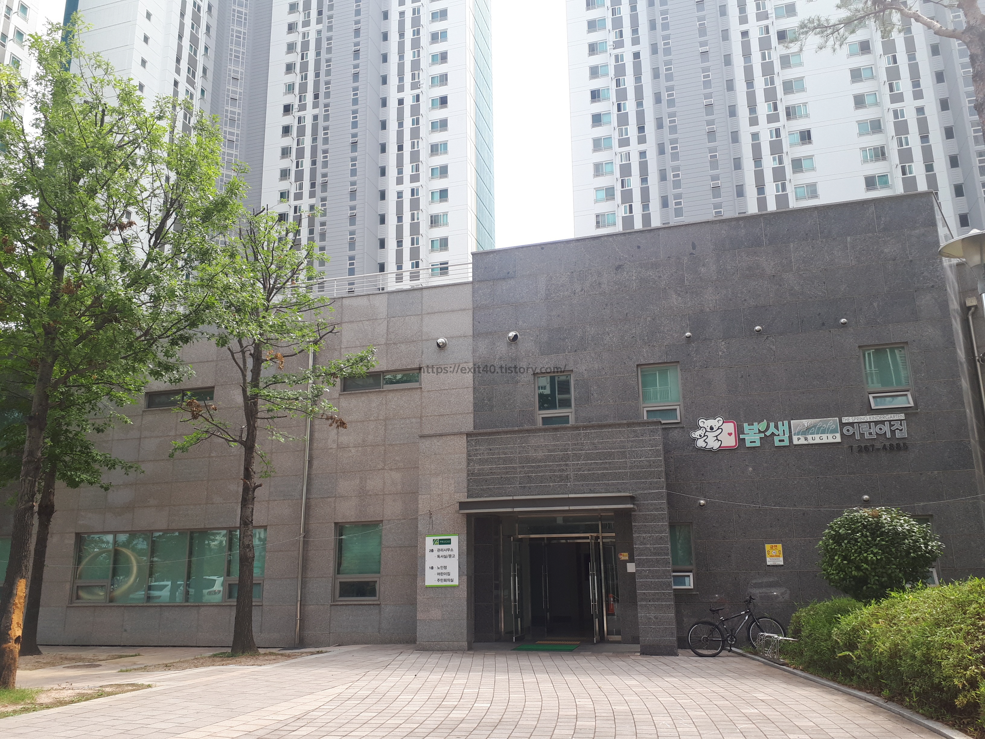 102동과 109동 사이에는 관리사무소, 독서실, 노인정, 어린이집, 주민회의실이 한 건물에 모여있었습니다. 건물 규모가 상당히 컸습니다.