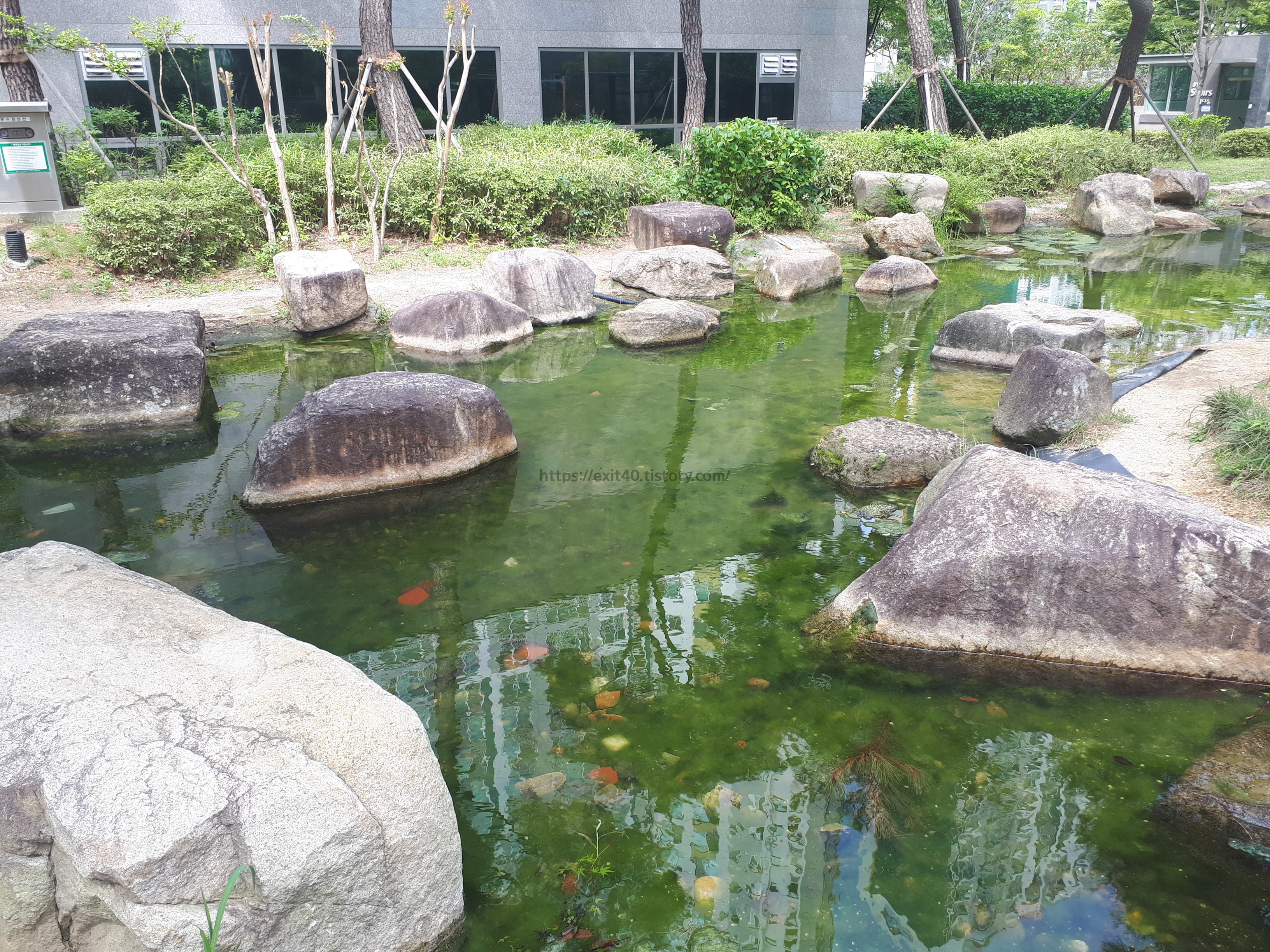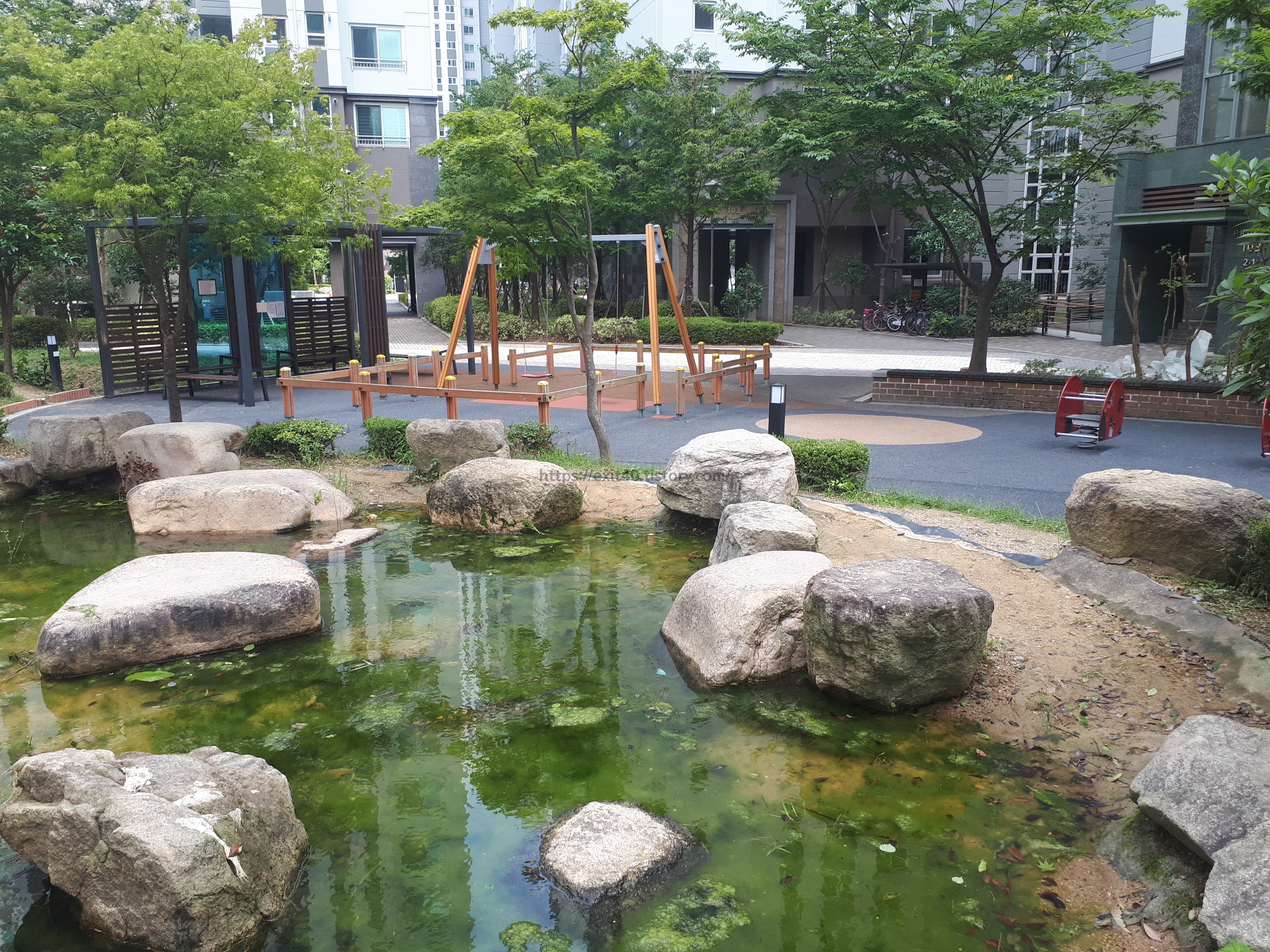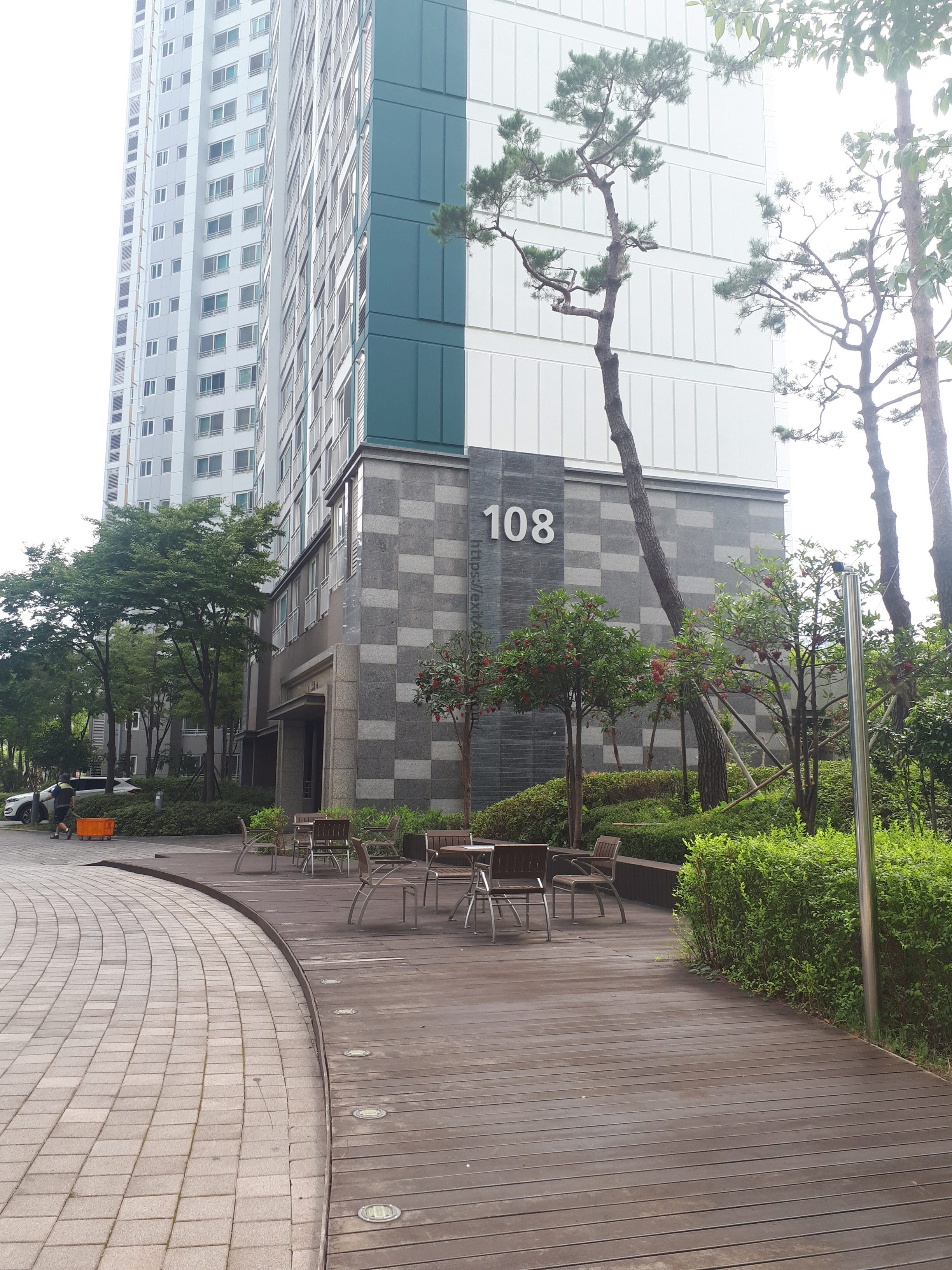 108동 앞은 중앙광장으로 쉼터, 연못, 헬스장, 골프장, 연회장, 청년 회의실과 같은 주민시설이 있었습니다. 코로나로 인해 들어가서 찍지는 못했습니다.