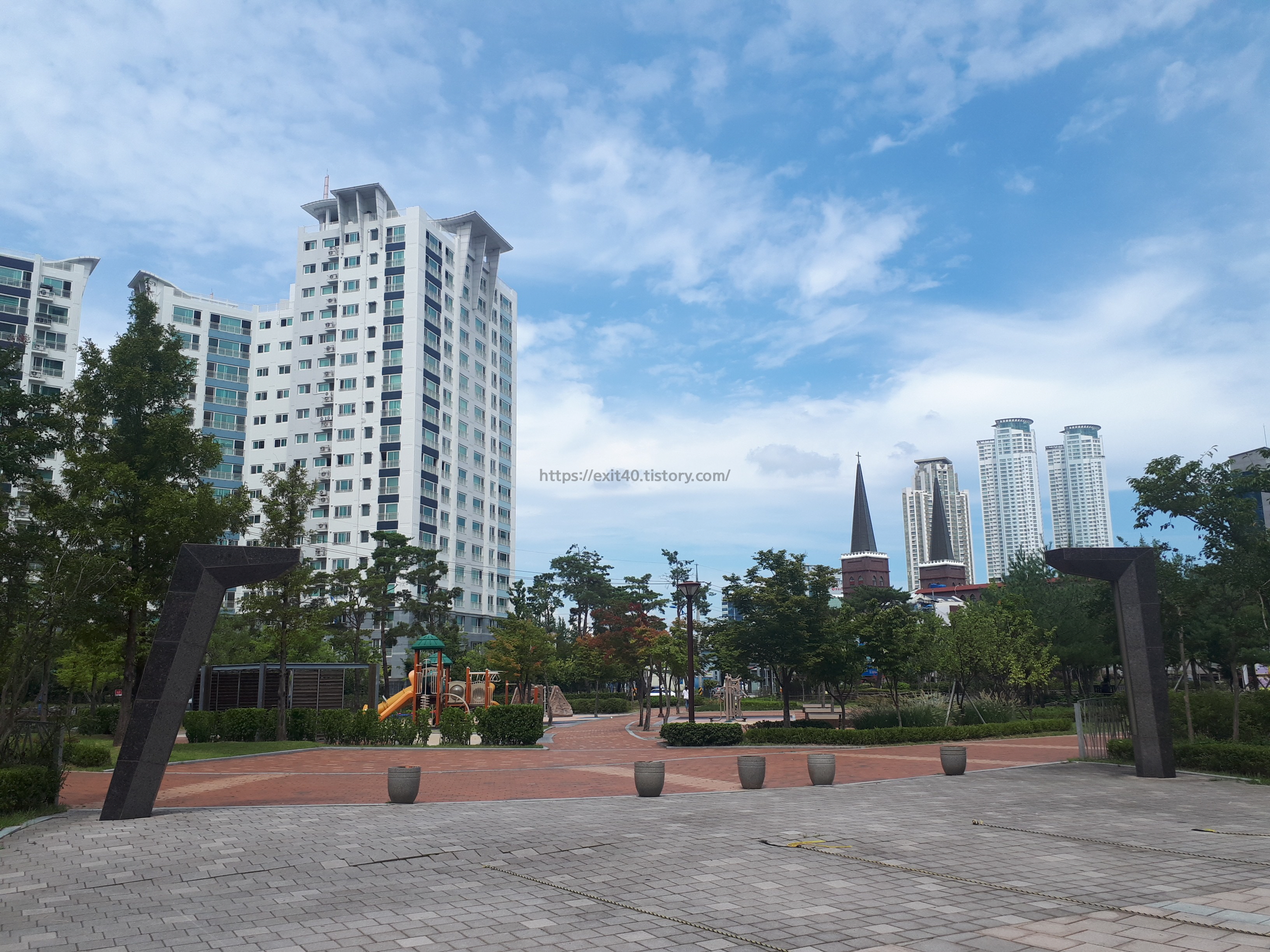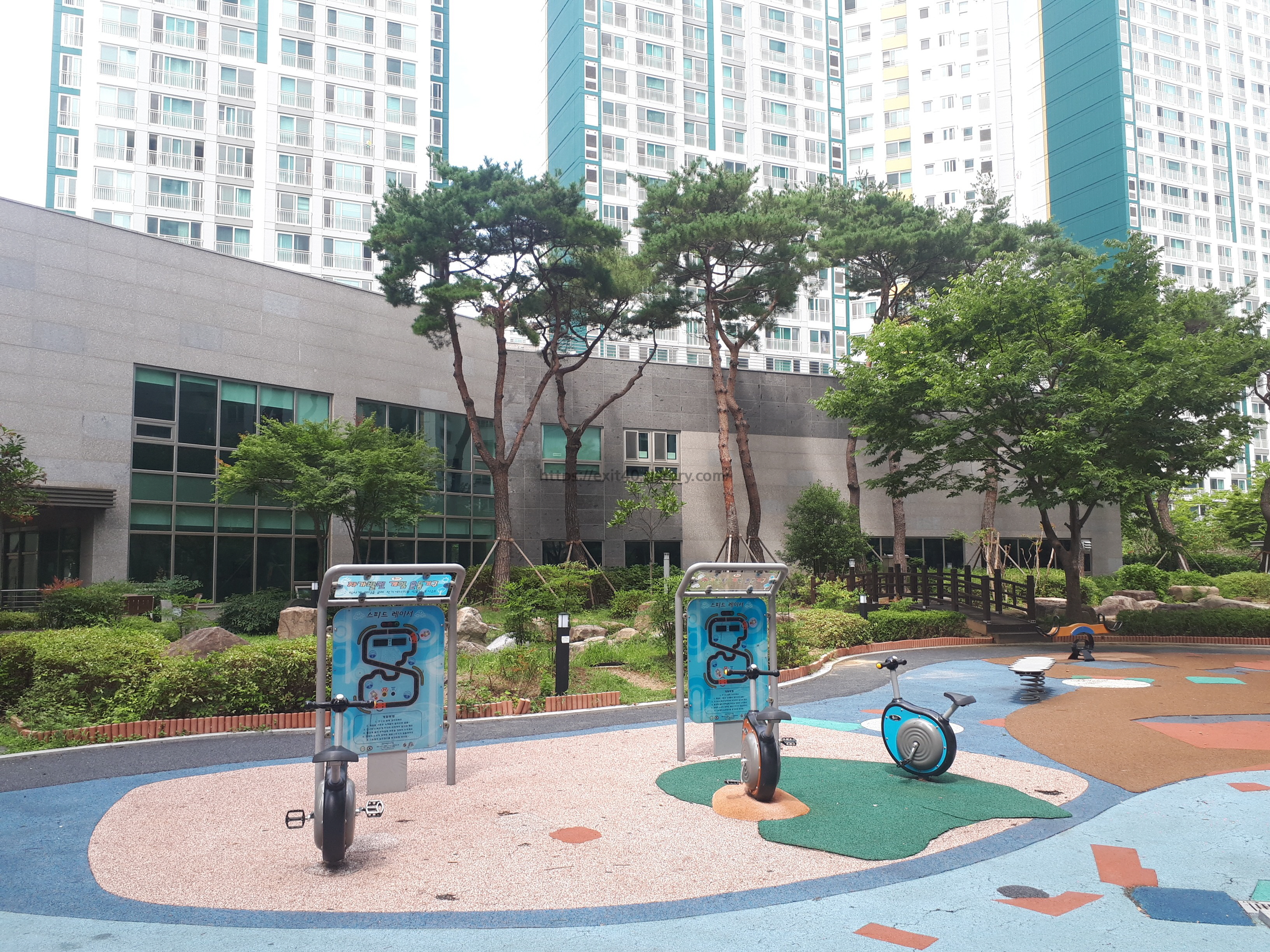푸르지오답게 단지 사이 조경에 상당히 신경을 썼고 길을 잘 내어서 통행하기 편리하게 되어있었습니다. 부산과 다르게 큰 도로를 물고 있어 출퇴근 시 복잡하지 않아 보였습니다. 무엇보다 신정공원과 바로 붙어있어 아파트 녹지가 훨씬 더 넓고 푸르게 보였고 살기 좋아 보였습니다.