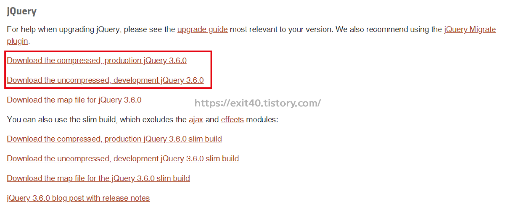 제이쿼리를 사용하기 위해서는 먼저 구글에서 jquery 사이트를 검색하여 jquery 파일을 다운받으면 됩니다.