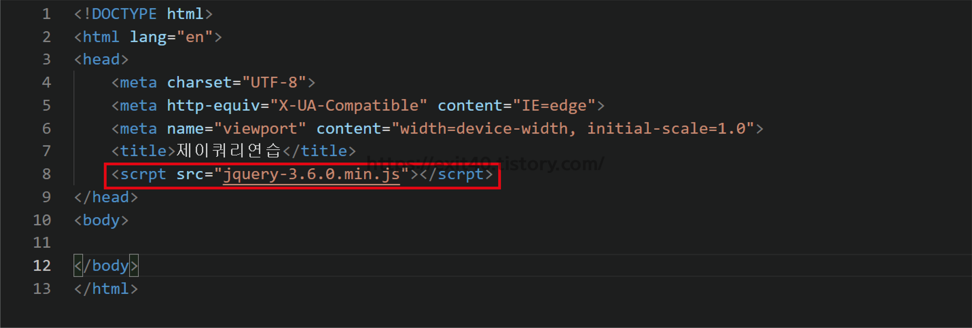 3. 연결한 제이쿼리 라이브러리가 스크립트 최상단에 작성합니다.