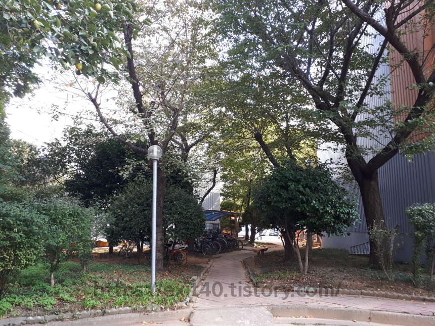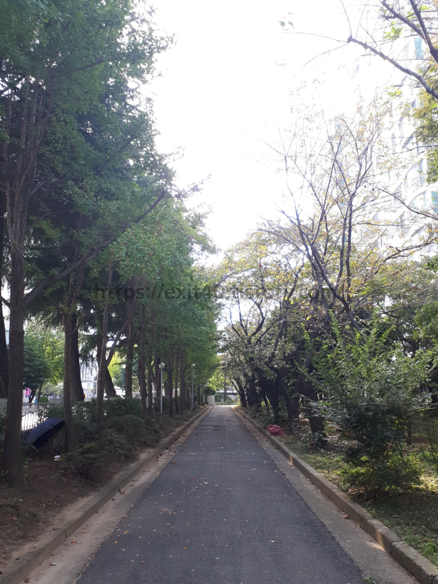 길쭉한 나무들이 가지런히 정렬되어있어 산책길로는 손색이 없었습니다. 나무가 있으니 확실히 소음도 잘 차단되네요.
