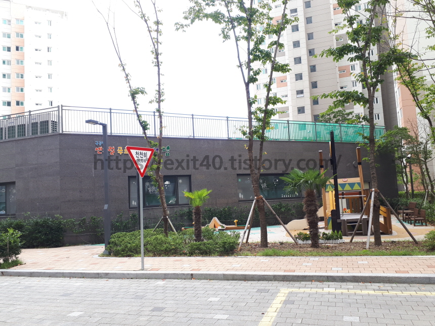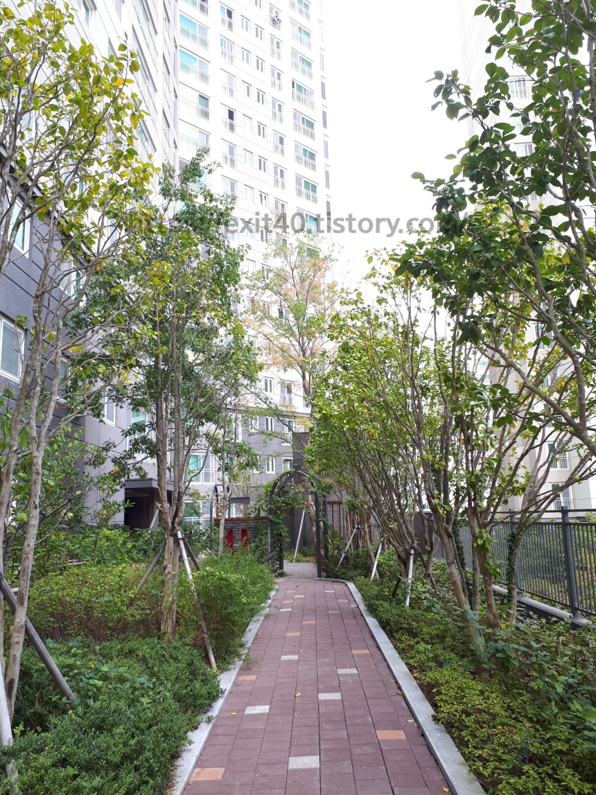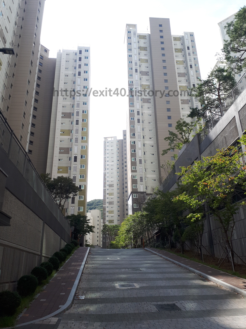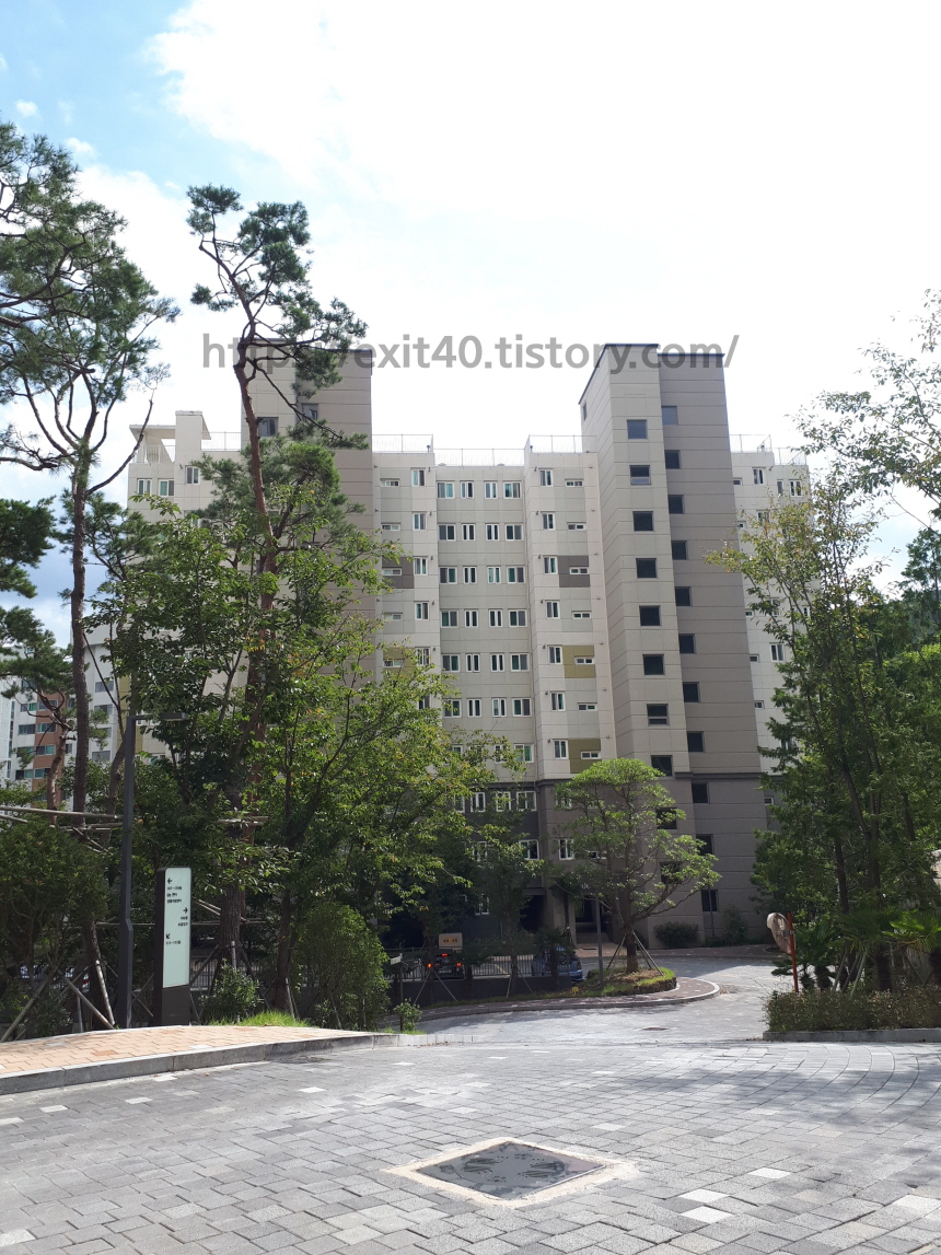 회색 벽돌담이 묵직하고 단단해 보이는 효과를 주어 아파트가 견고해 보였습니다.