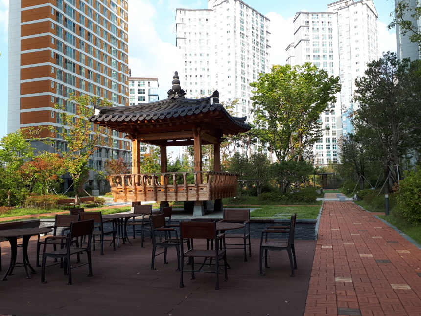 맘스카페와 함께 어우러진 정자 그리고 그 앞의 쉴 공간을 보니 마음이 편해졌습니다.