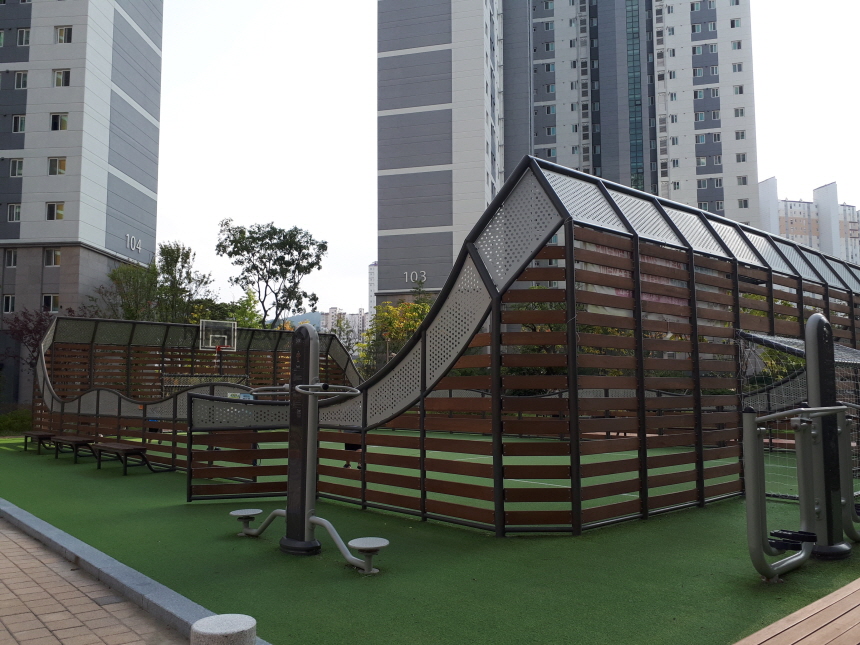 농구코트와 인조잔디로 꾸며진 미니 구장은 최고의 조합인 것 같습니다.