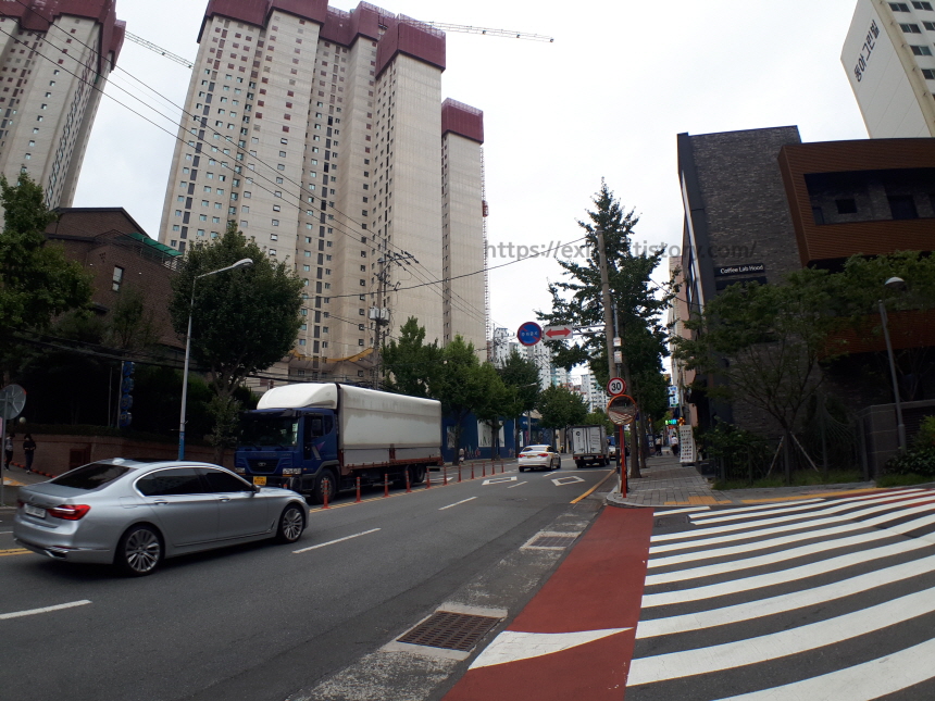 상가 통로를 빠져나오면 바로 대로가 보이고 양옆으로 생활에 프리미엄을 더할 상가들과 홈플러스가 자리 잡고 있었어요.