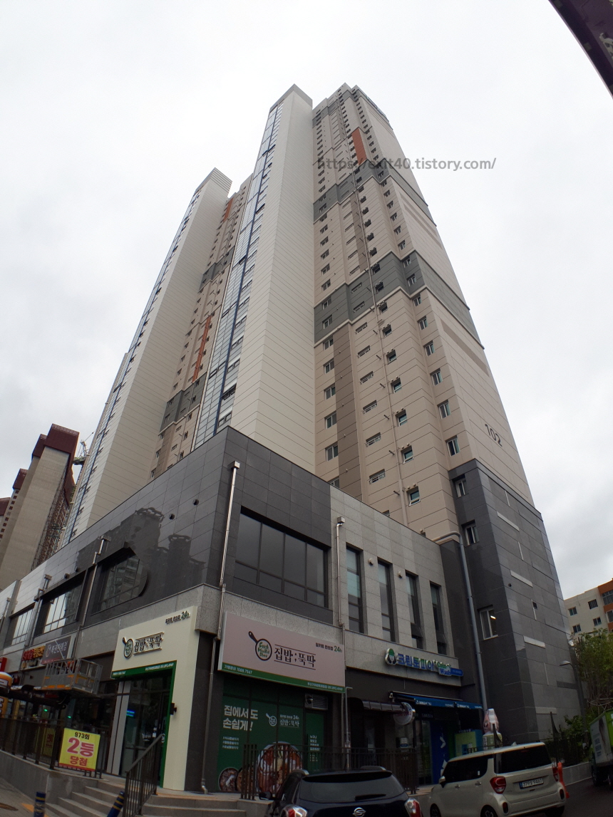 이곳은 2020년 7월 준공되어 올해로 2년 차, 212세대, 용적률은 422%, 건폐율은 30%로 생활과 교통, 쾌적한 자연환경을 갖추고 있어 멀리서 보면 주상복합인 줄 아시는 분이 있지만 아파트입니다.