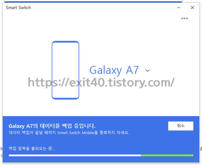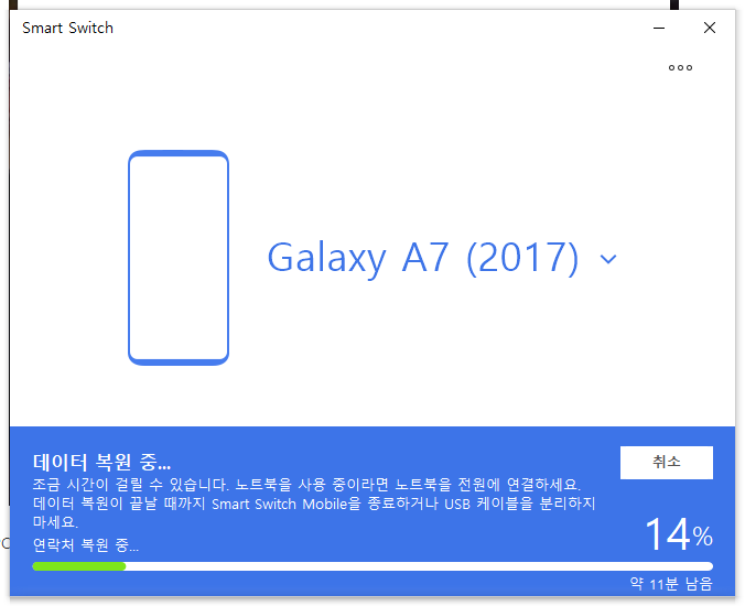 제 폰은 Galaxy A7으로 2017년도에 구매를 했고 보급형이기 때문에 Smart Switch와 같은 신규 앱이 적용되지 않을 수 있다고 했습니다.