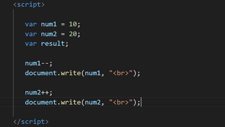 result = num1++; ---> num1(10)이 변수 result에 저장 / num1은 1만큼 증가되어 num1에는 11이 저장