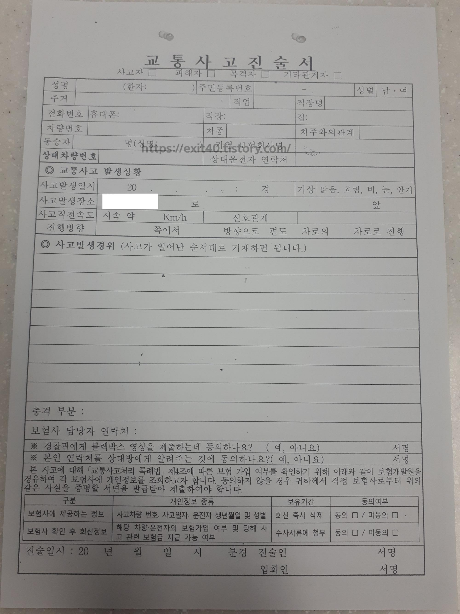 그렇게 말씀 드리니 위 사진과 같이 교통사고 진술서 작성을 요청받았습니다. 작성을 하기 전에 자초지종을 말씀드렸지만.