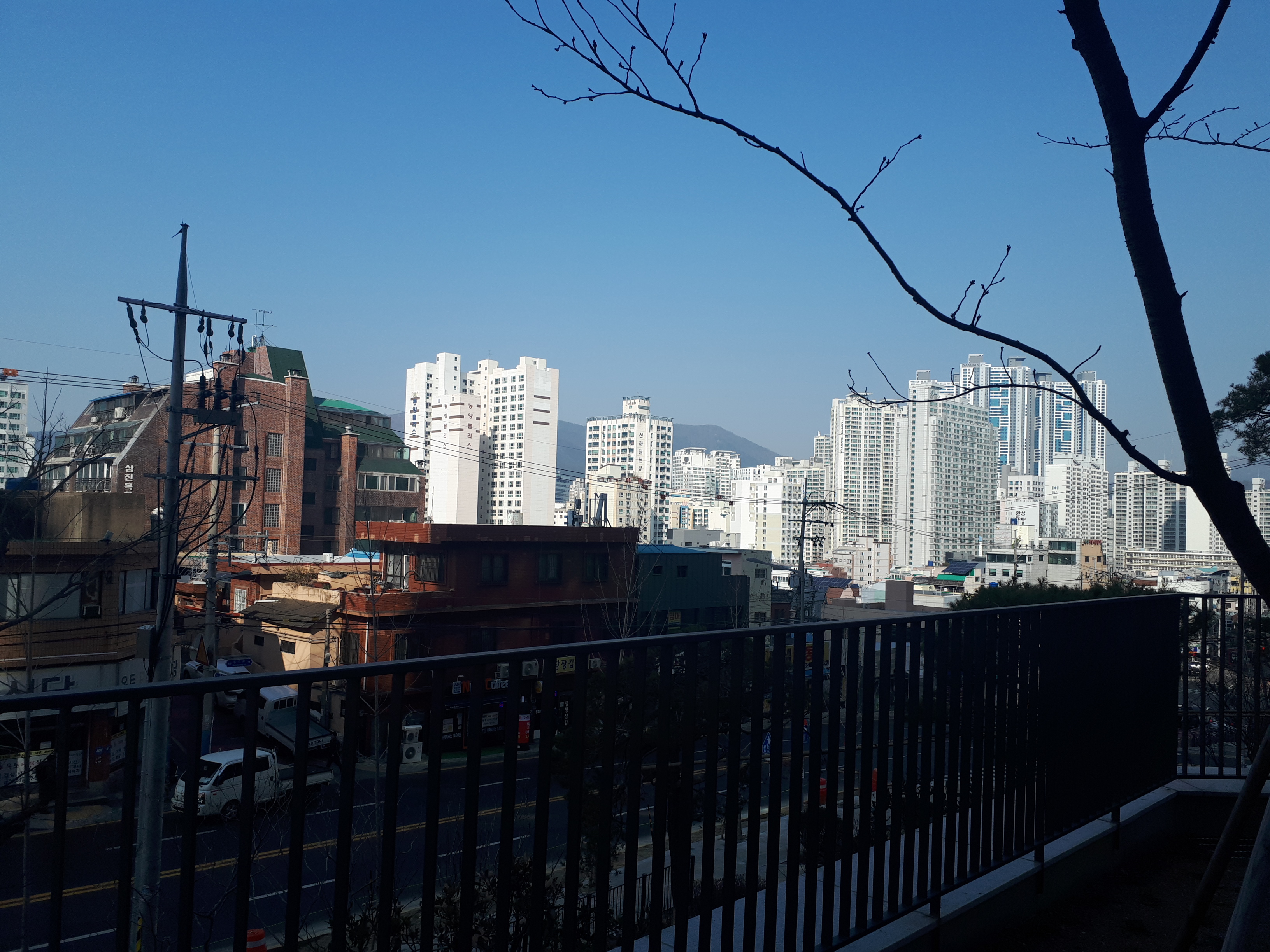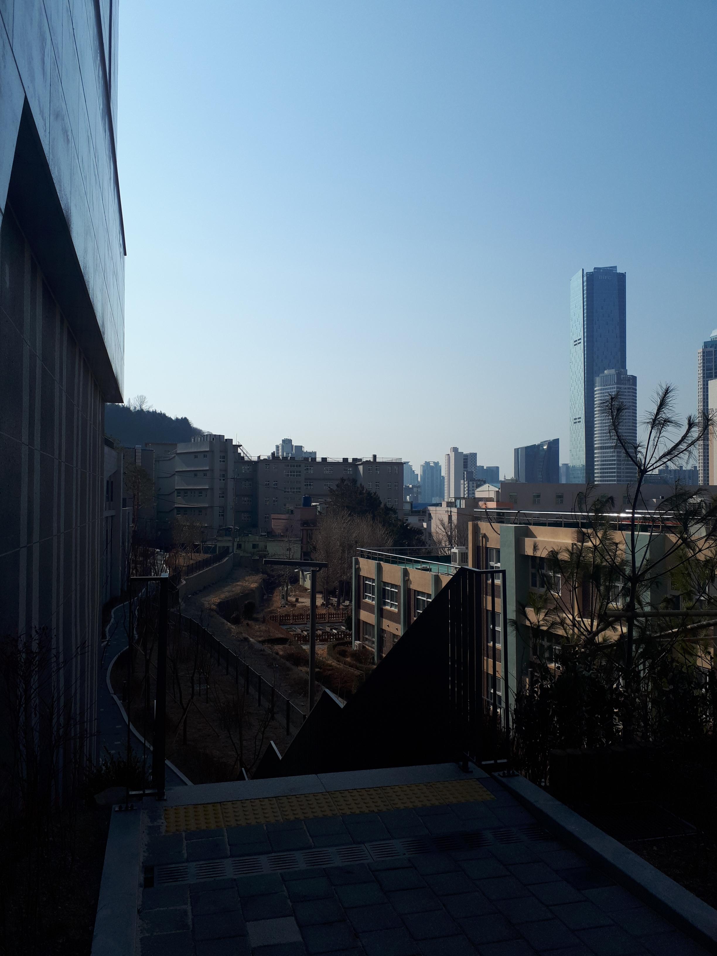 2단지가 좋았던 점은 바로 앞에 여중이 있는데 이곳에는 더 이상 건물이 들어설 수 없어 시티뷰가 100% 보인다는 점입니다. 내려다보니 남산타워에서 본 풍경과 비슷해서 좋았습니다.