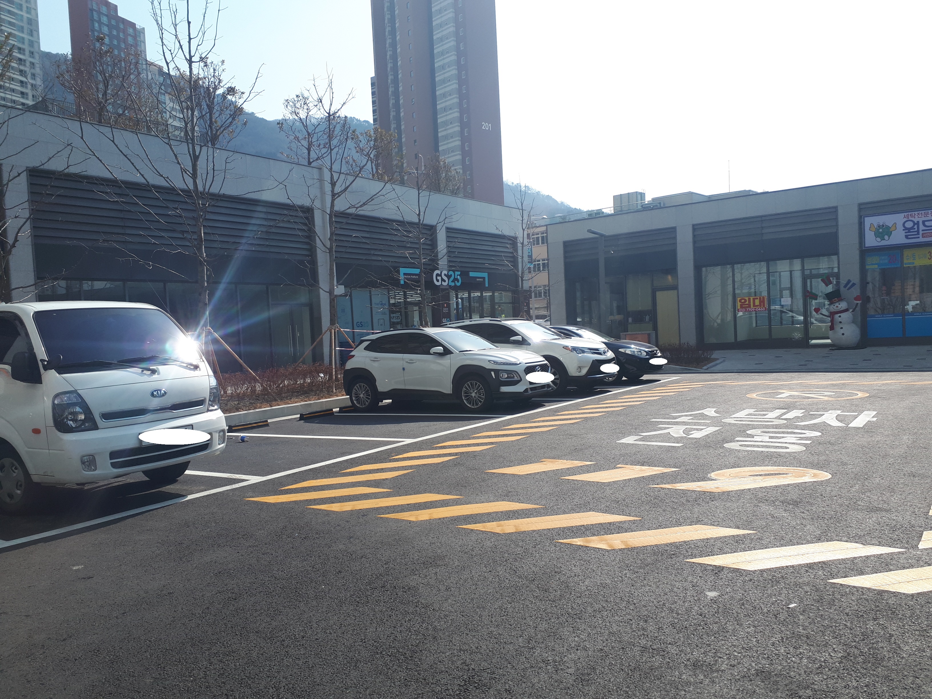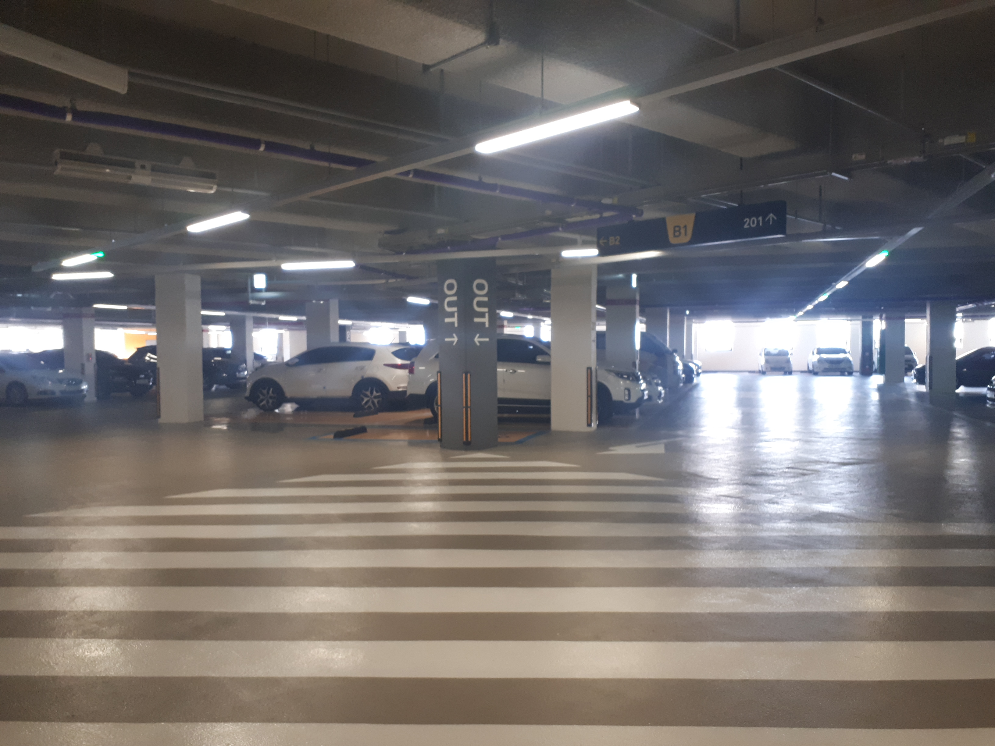 주차장에 차를 타러 왔습니다. 상당히 넓었고 간격이 넓어서 문콕은 걱정 없어 보였어요. 선에 신경 쓰지 않고 편안하게 주차할 수 있었습니다.