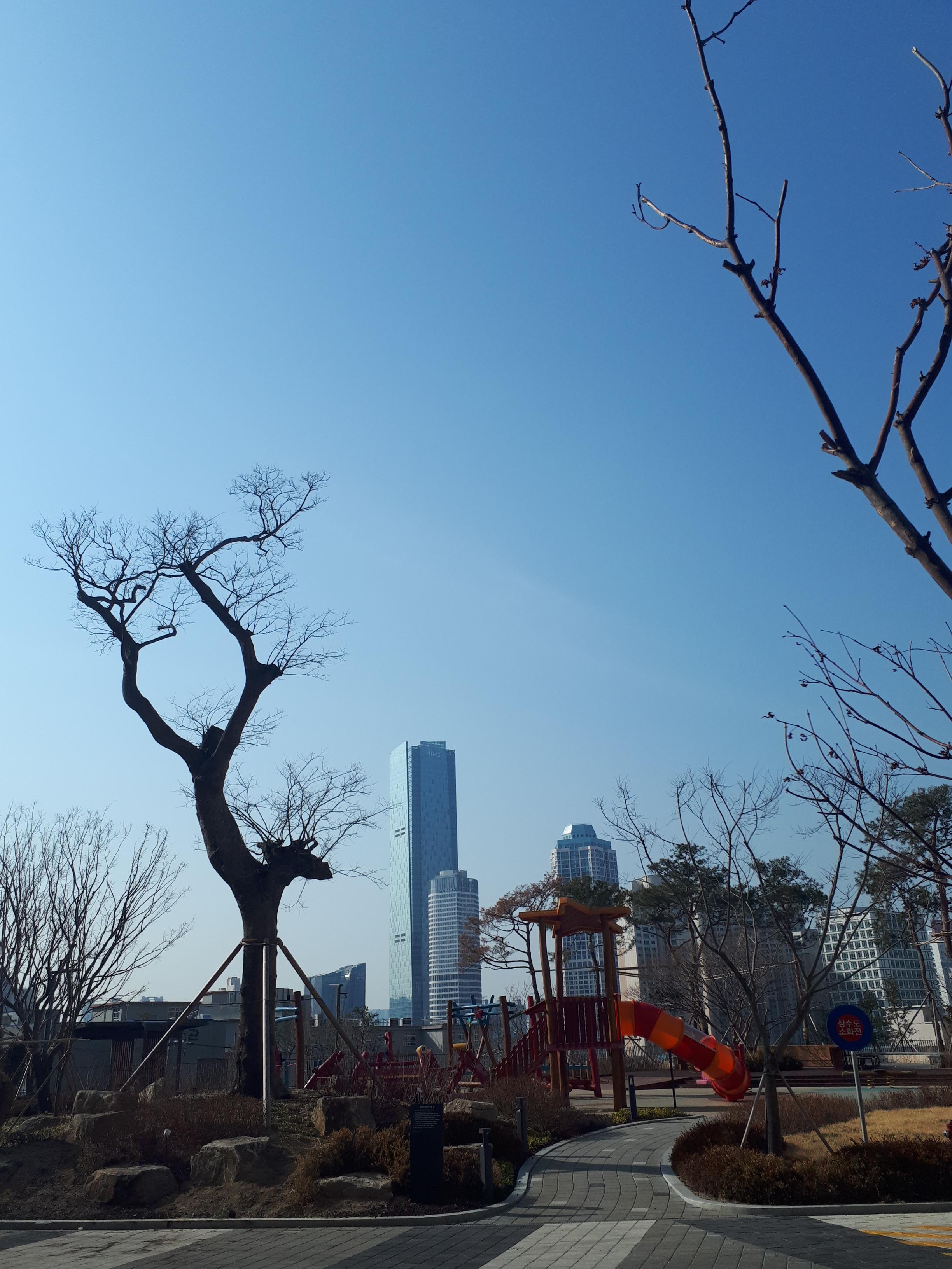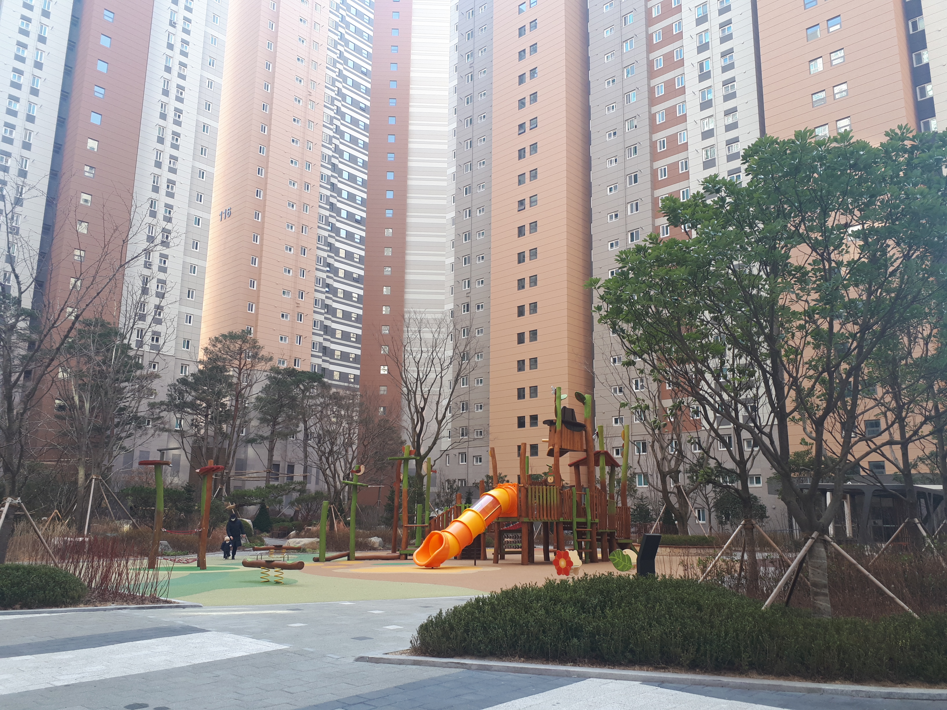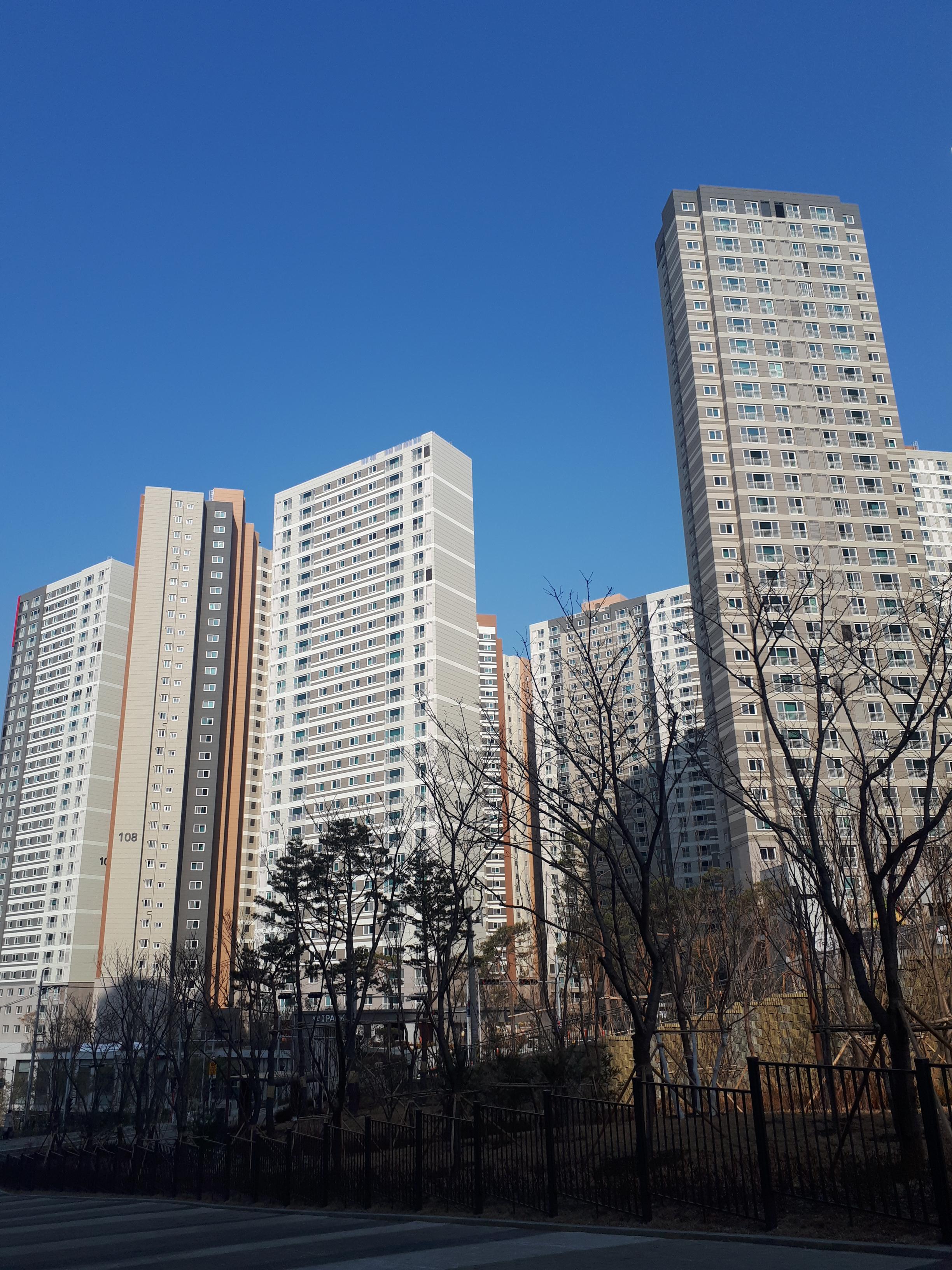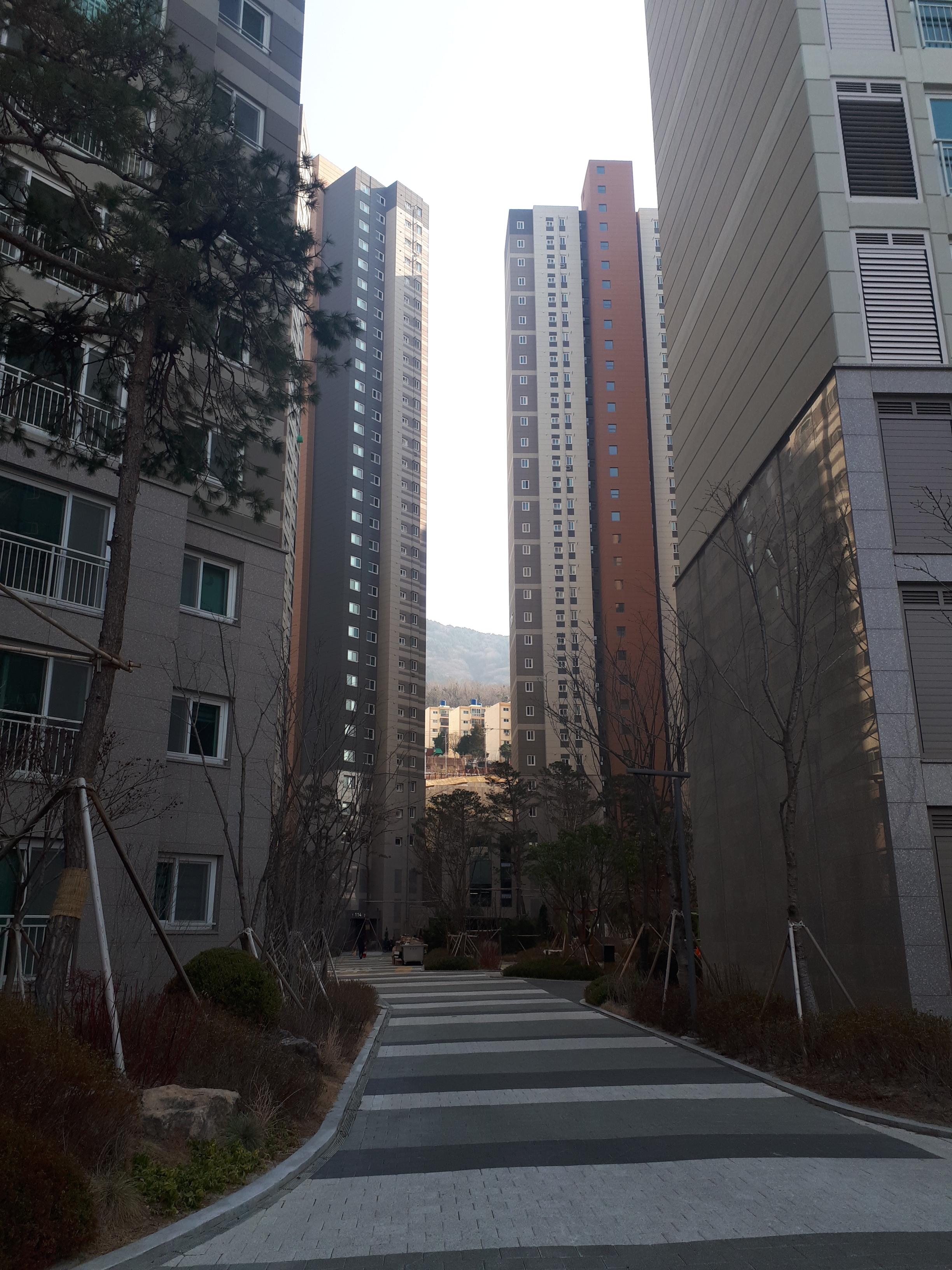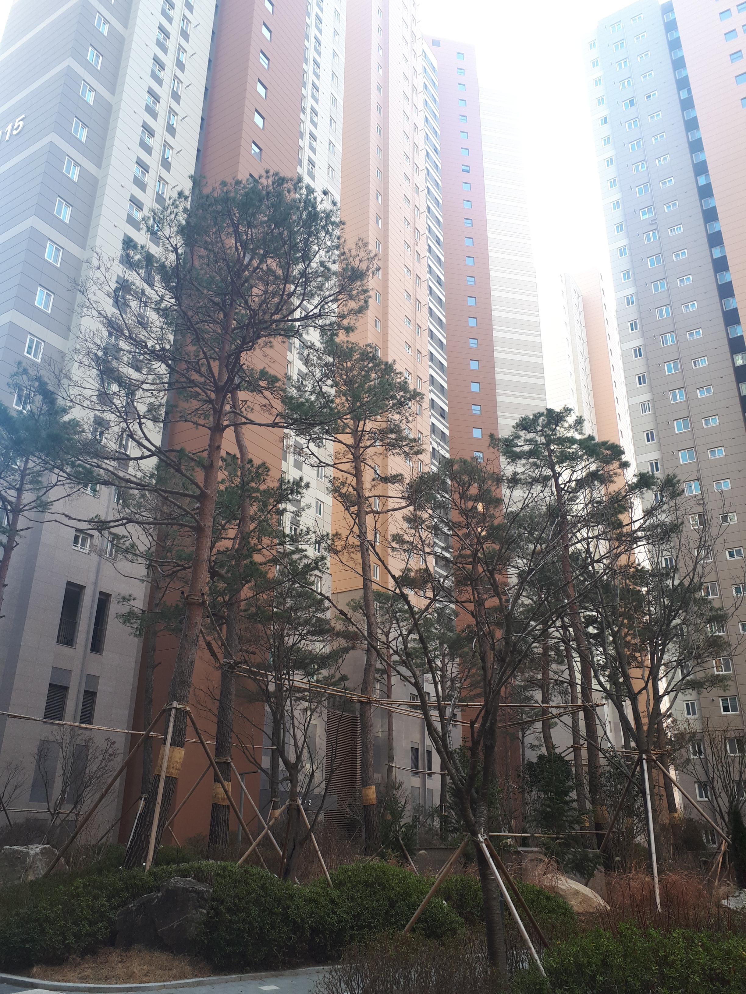 아파트에 들어오자 4층 정도 높이의 나무들이 반겨주었습니다. 단지가 하도 넓다 보니 소나무 위 까마귀가 한번 울면 숲 속 계곡에 울리듯 울려 퍼졌습니다.