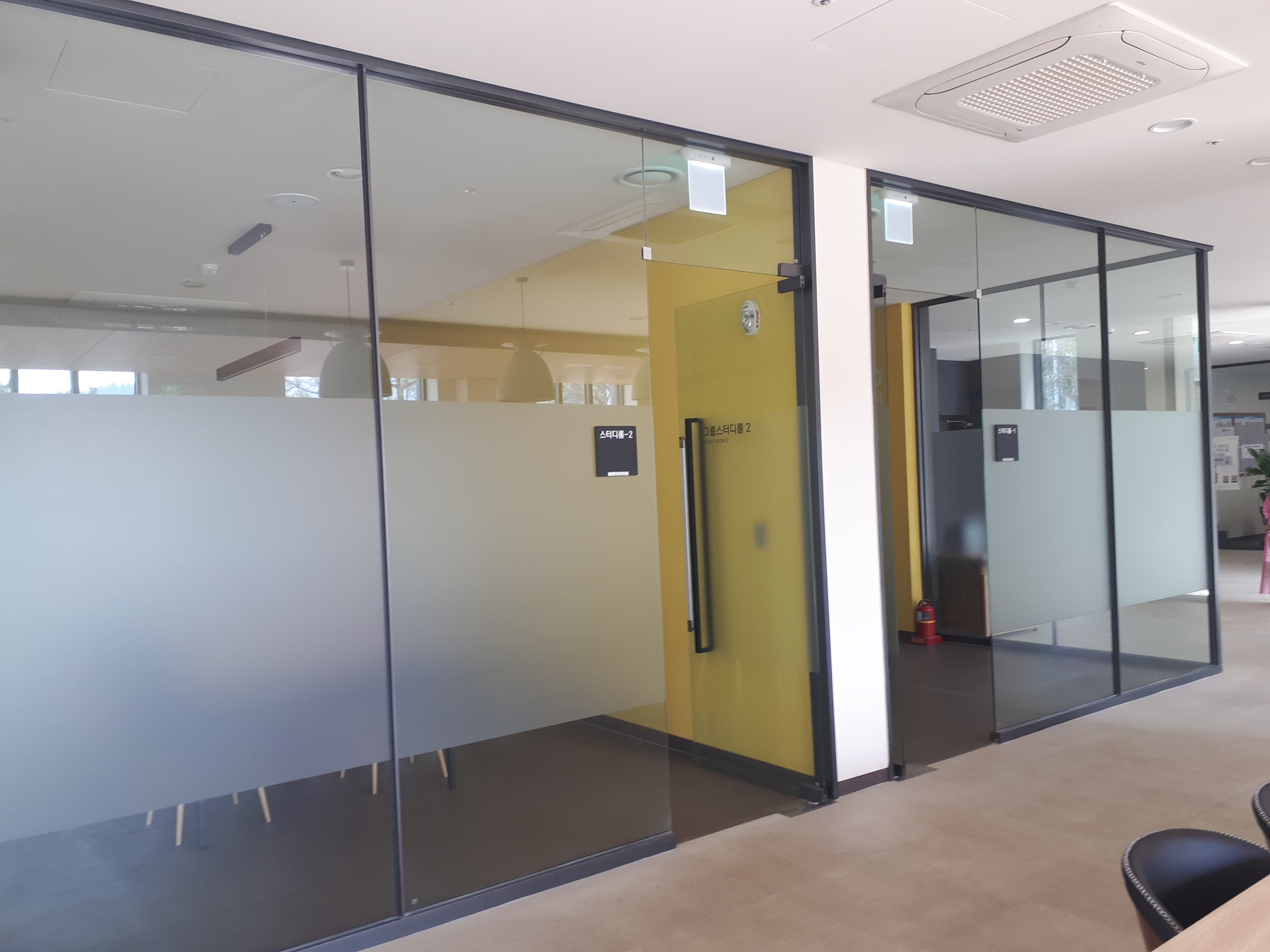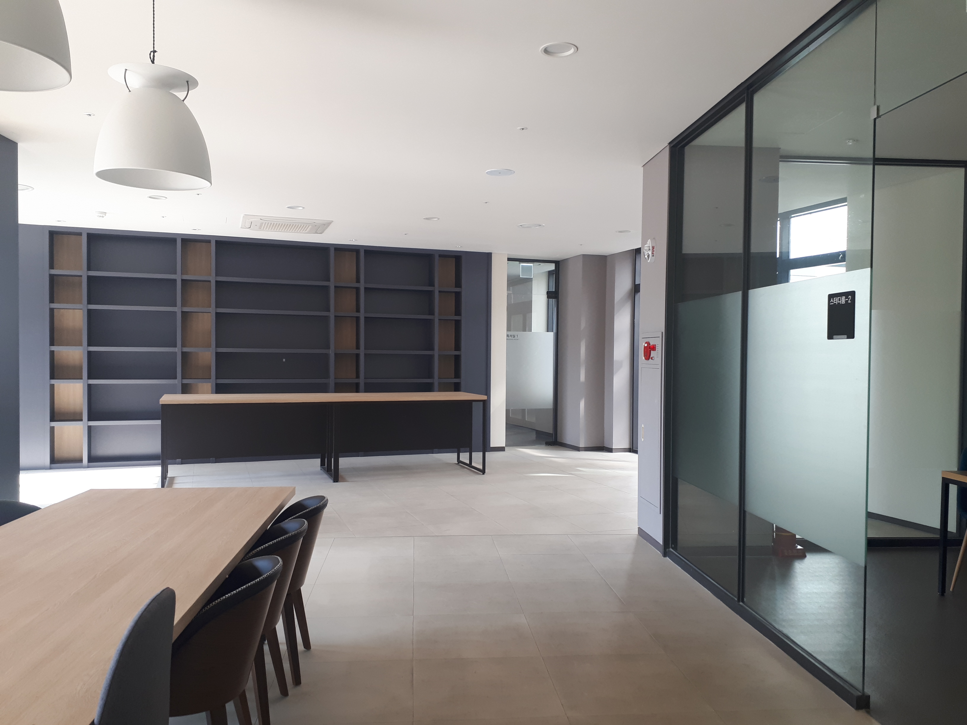 정문 양옆의 관리사무소 밑층에는 이렇게 독서실과 스티디룸이 있습니다.