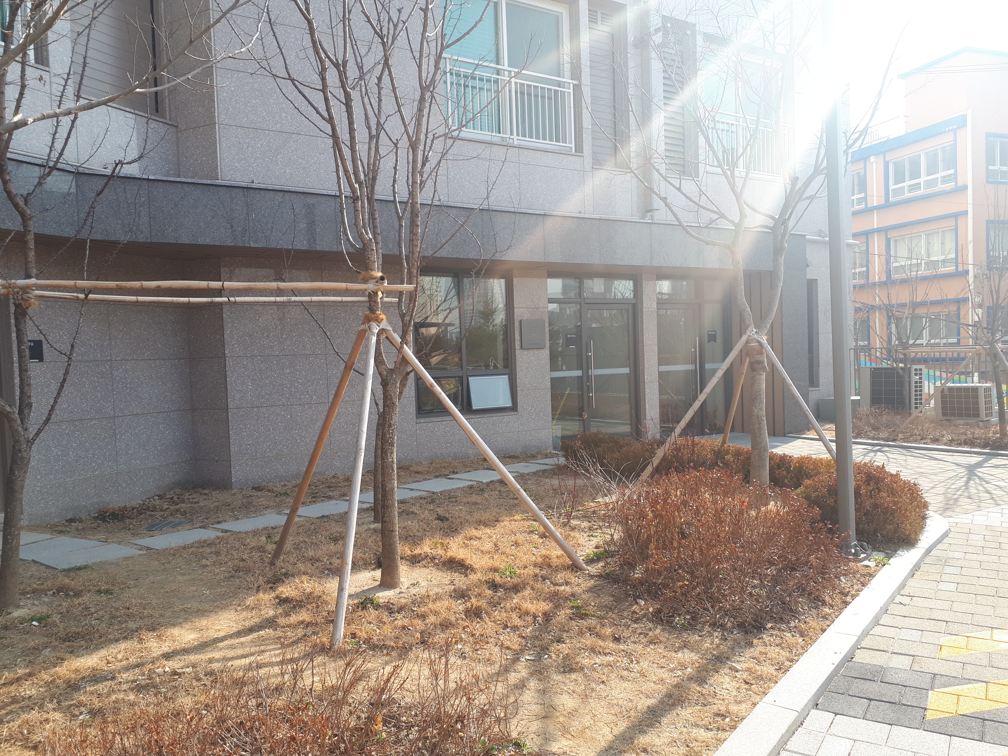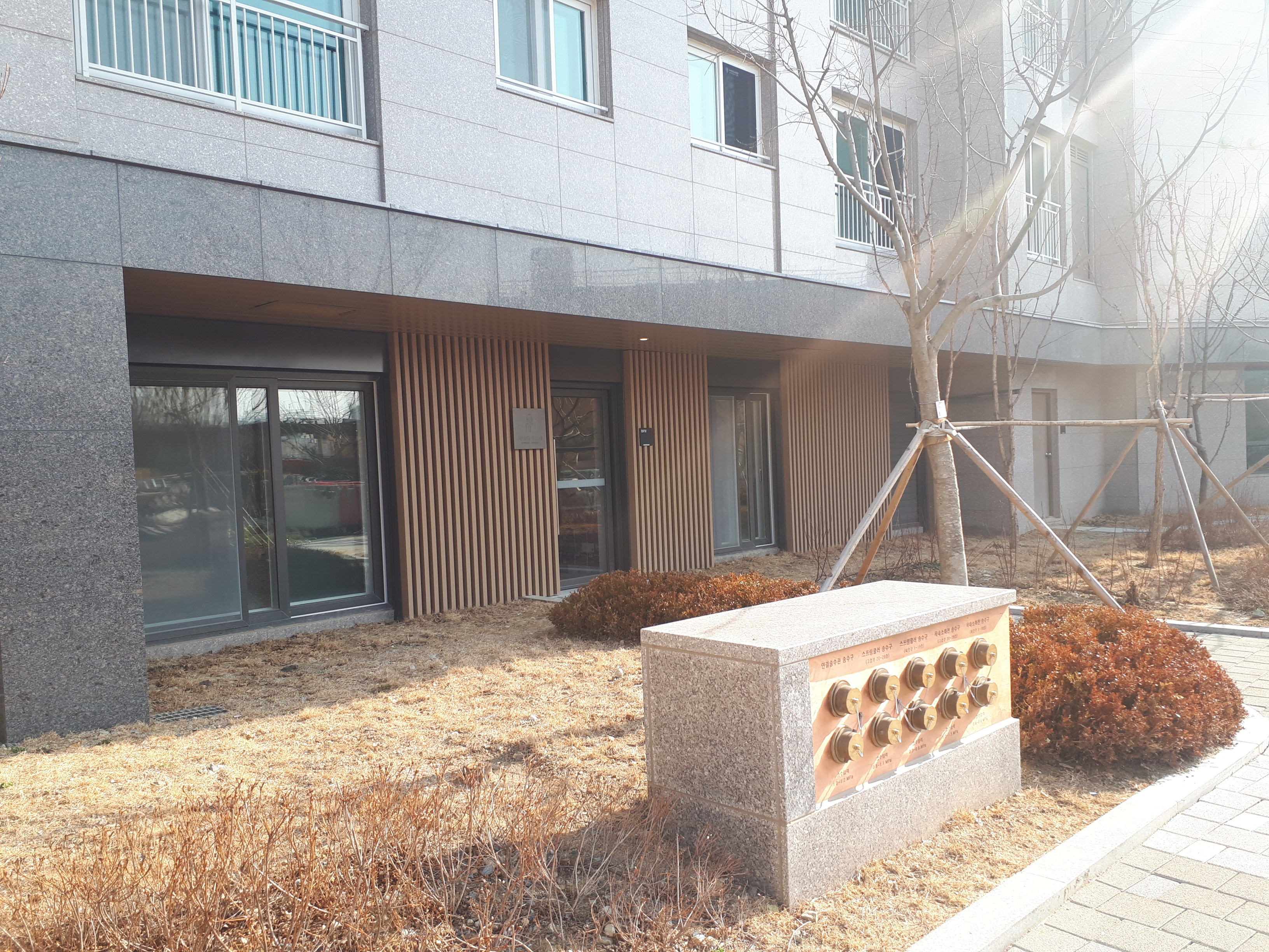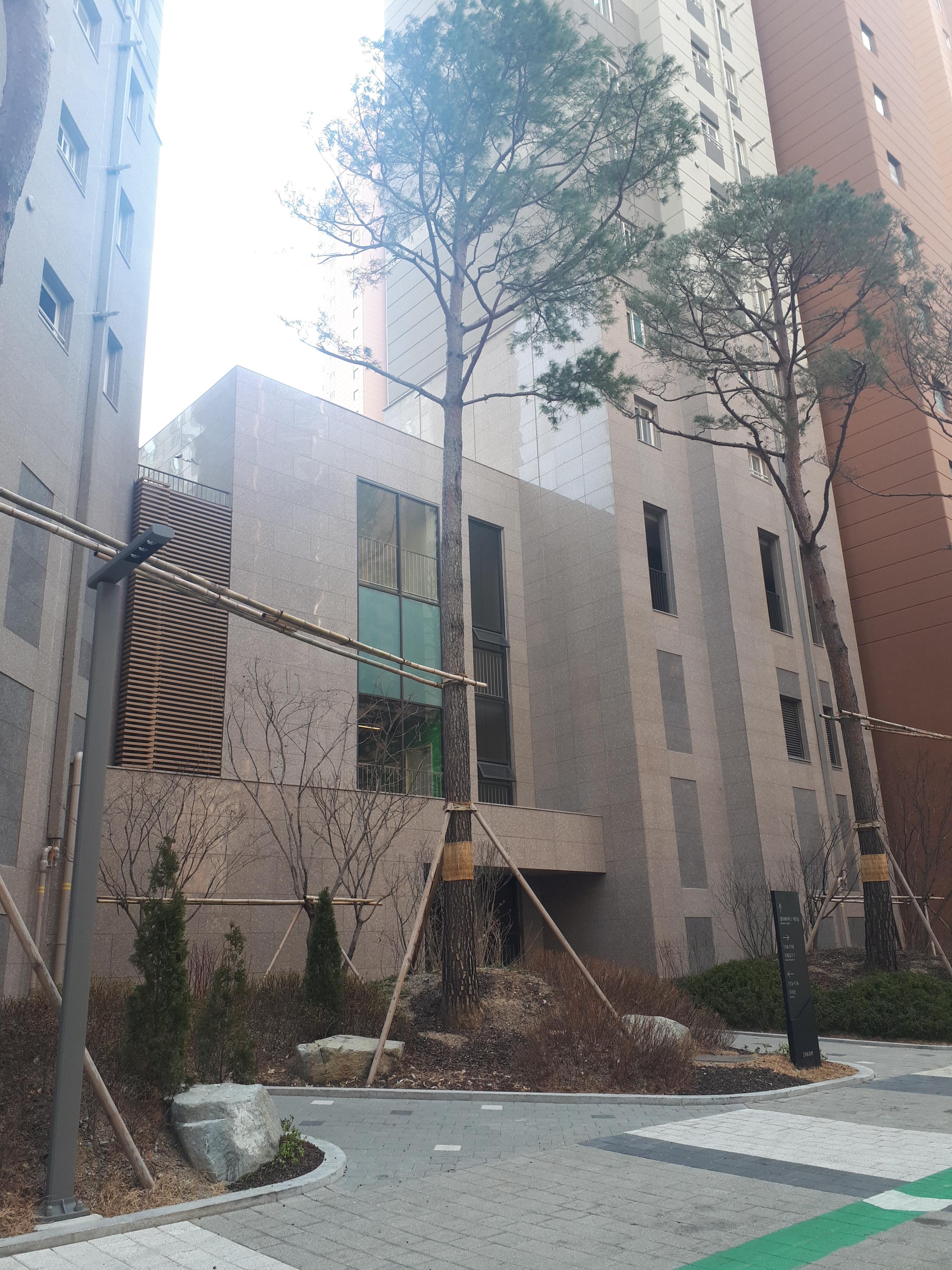 뒤편에는 경로당과 관리사무소가 있습니다. 현대적이고 깔끔했습니다.