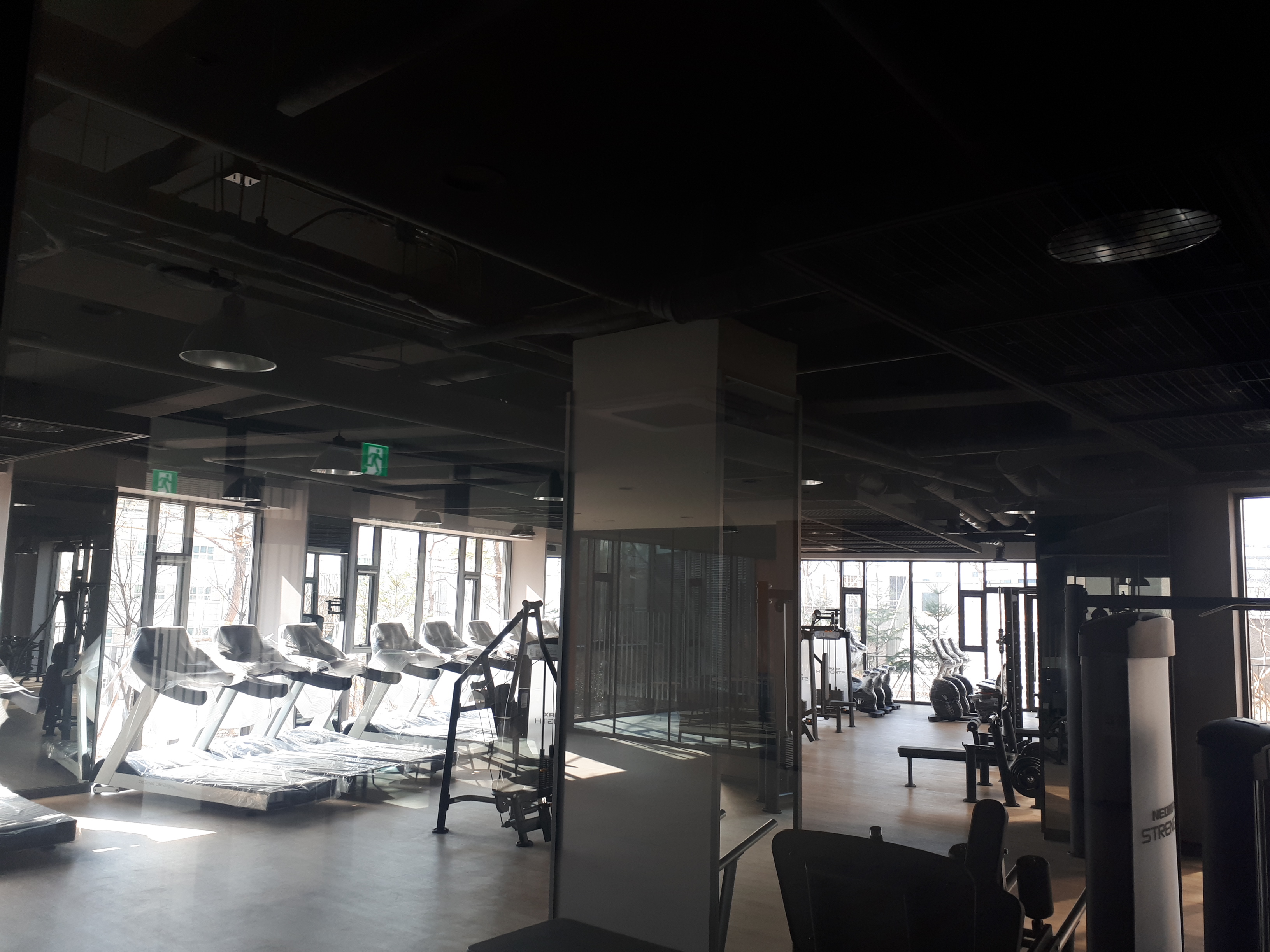 입주민들이 싸우지 않게 러닝머신을 넉넉히 배치했고 젊은 층을 위해 무게가 제법 나가는 기구들이 많았습니다.