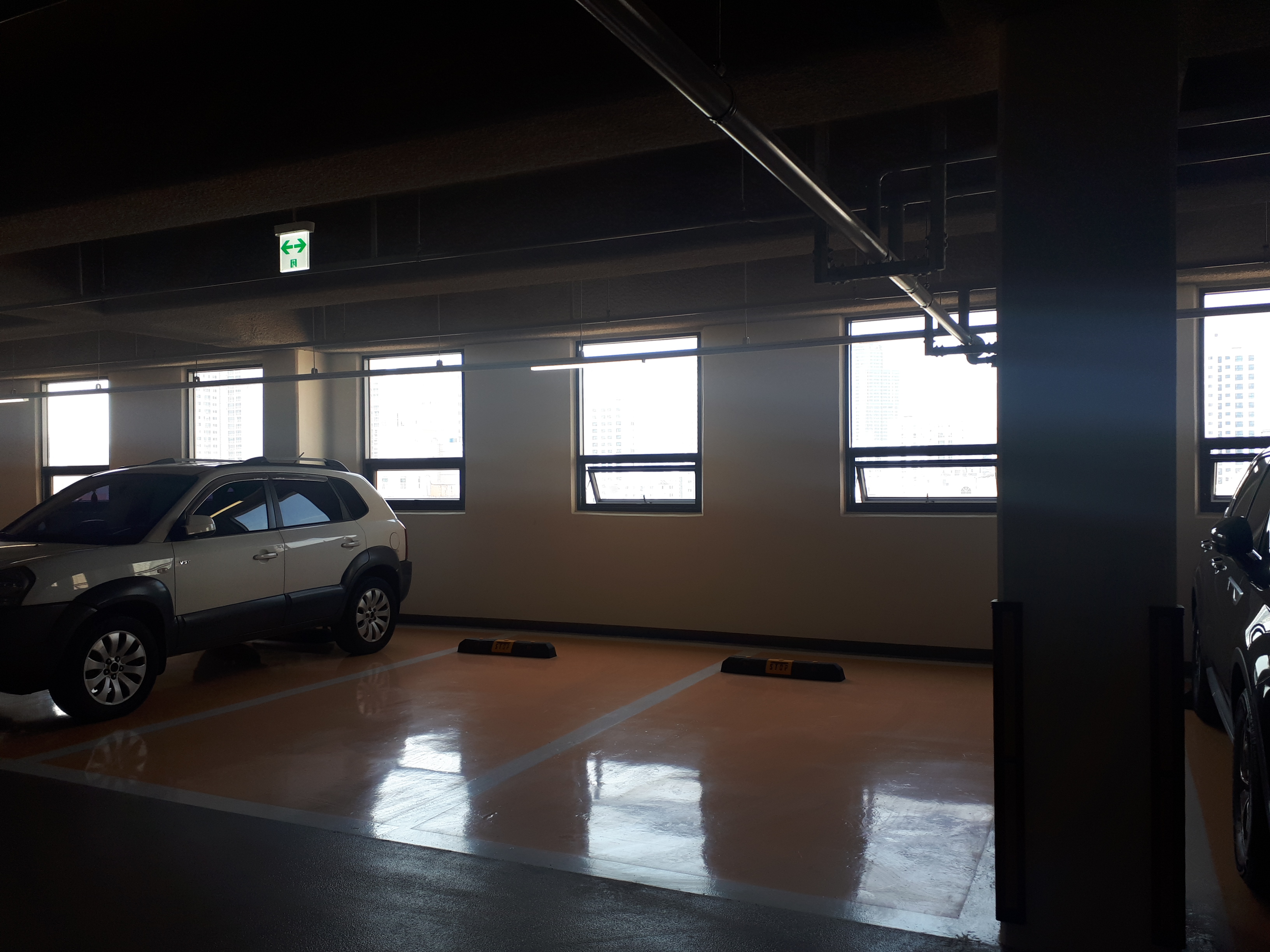 주차장은 넓고 잘 정돈된 느낌이었고 안쪽 벽 쪽에는 주차장에서 보기 힘들다는 주차장 뷰가 있었습니다.