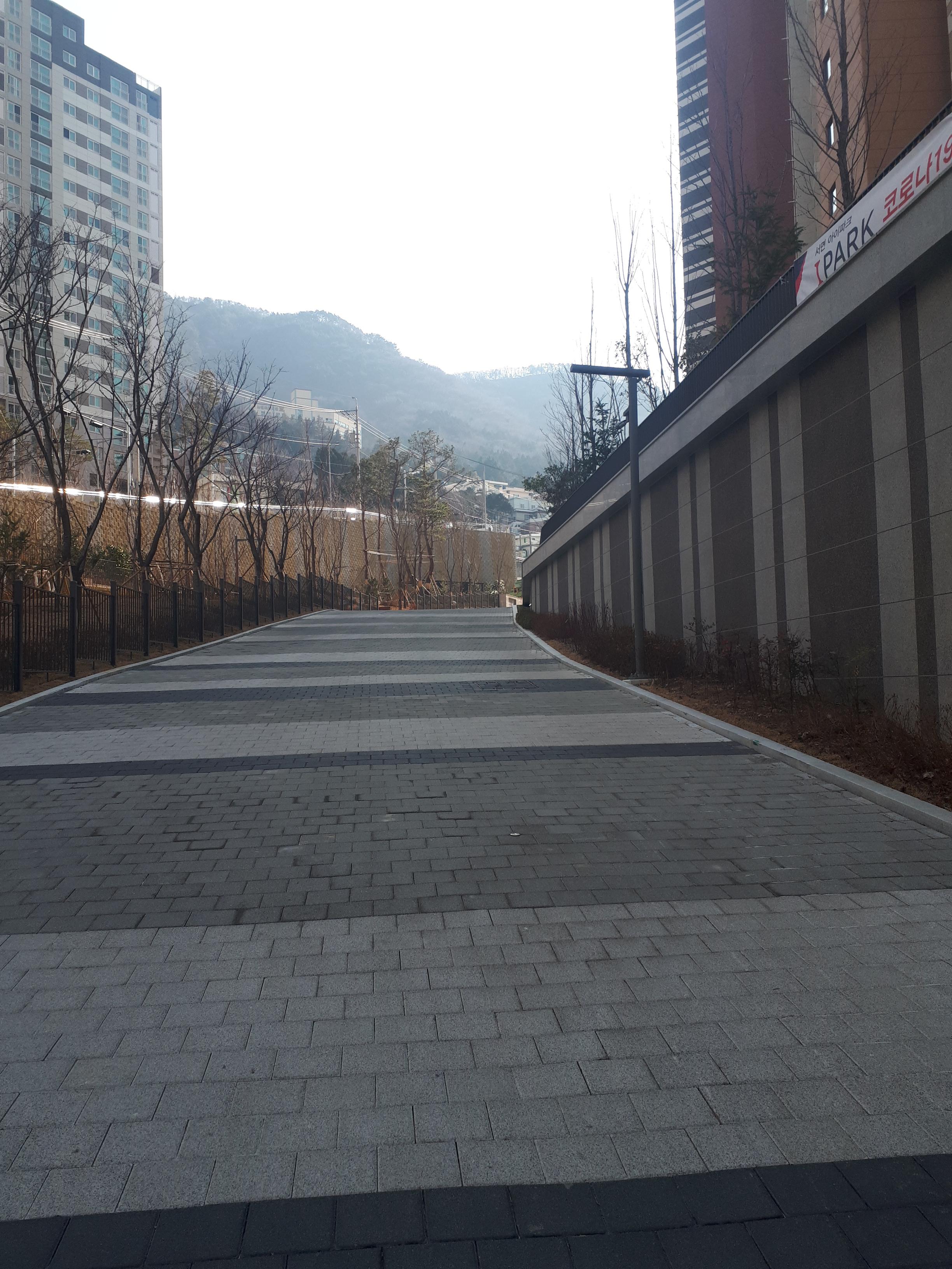 2단지 경비실 뒤쪽에는 이렇게 통로가 있는데 산책로로 쓰이면 금융단지가 보여서 좋을 것 같았습니다.