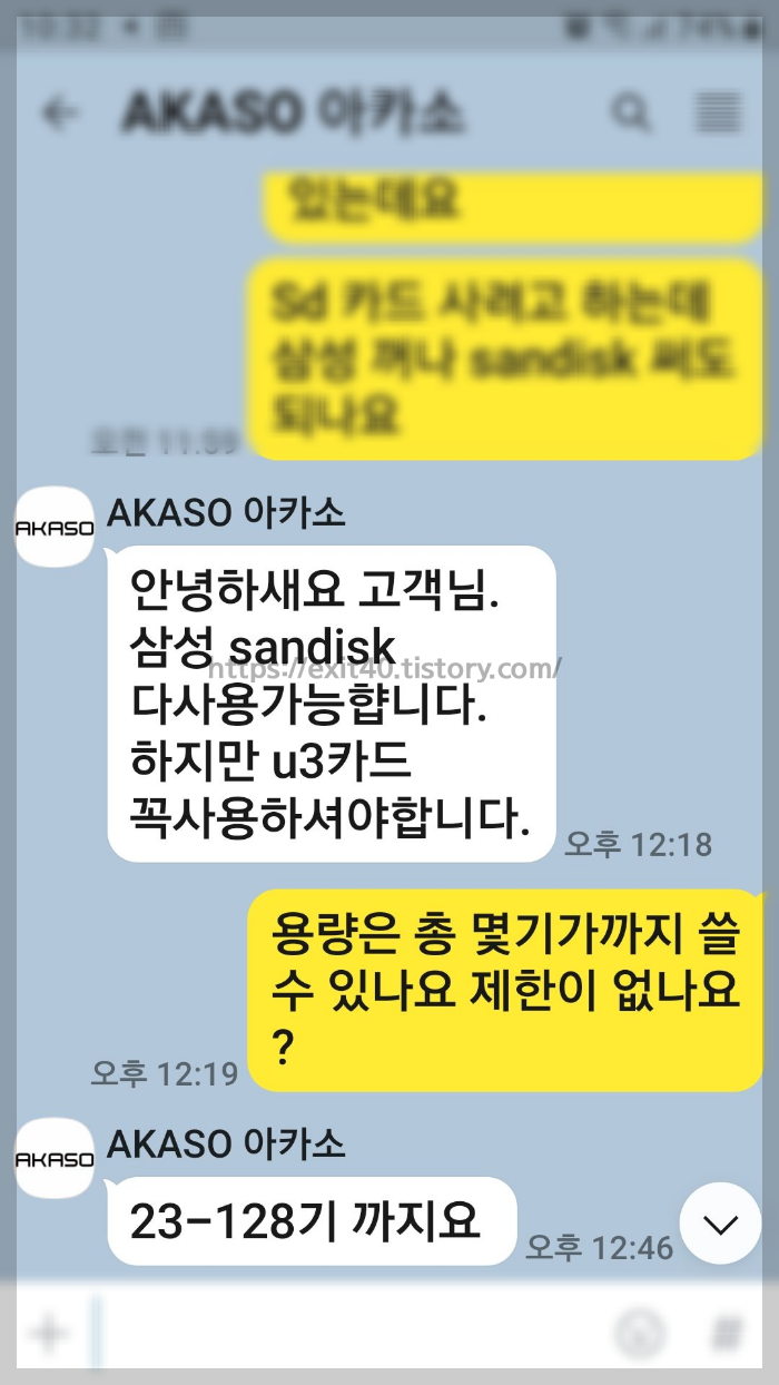 SD 카드는 32GB에서 128GB만 지원하니 주의해서 구매해야 합니다.