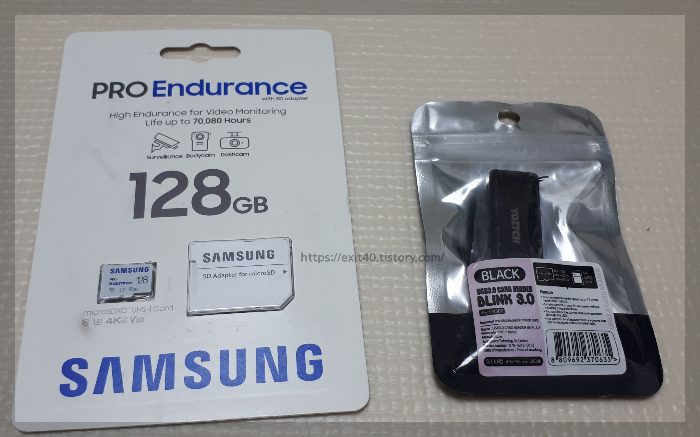 제품이 도착하기 전에 128GB SD카드와 리더기를 준비했습니다. SD카드 리더기는 아무거나 샀지만 SD카드는 무조건 U3이 지원돼야 합니다.