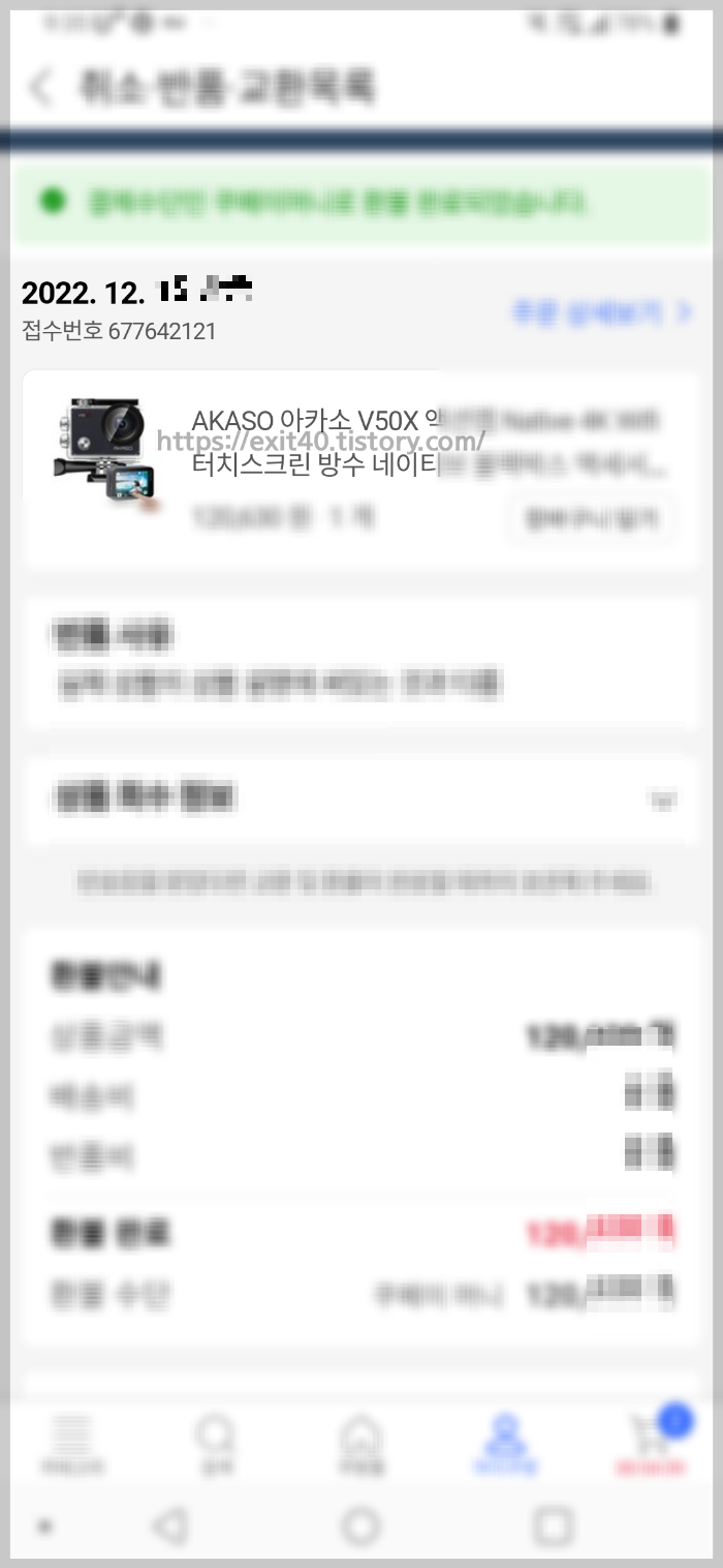 환불 배송을 끝내고 3일 후 제품 검수 후 외관과 기능상에 문제가 없다는 걸 확인하고 전액 환불을 받을 수 있었습니다.