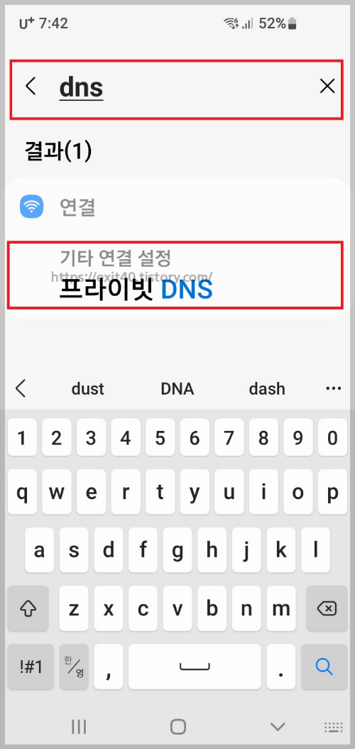 그러면 위의 화면과 같이 '기타 연결 설정, 프라이빗 DNS' 항목이 나올 건데요, 이걸 탭 해줍니다.