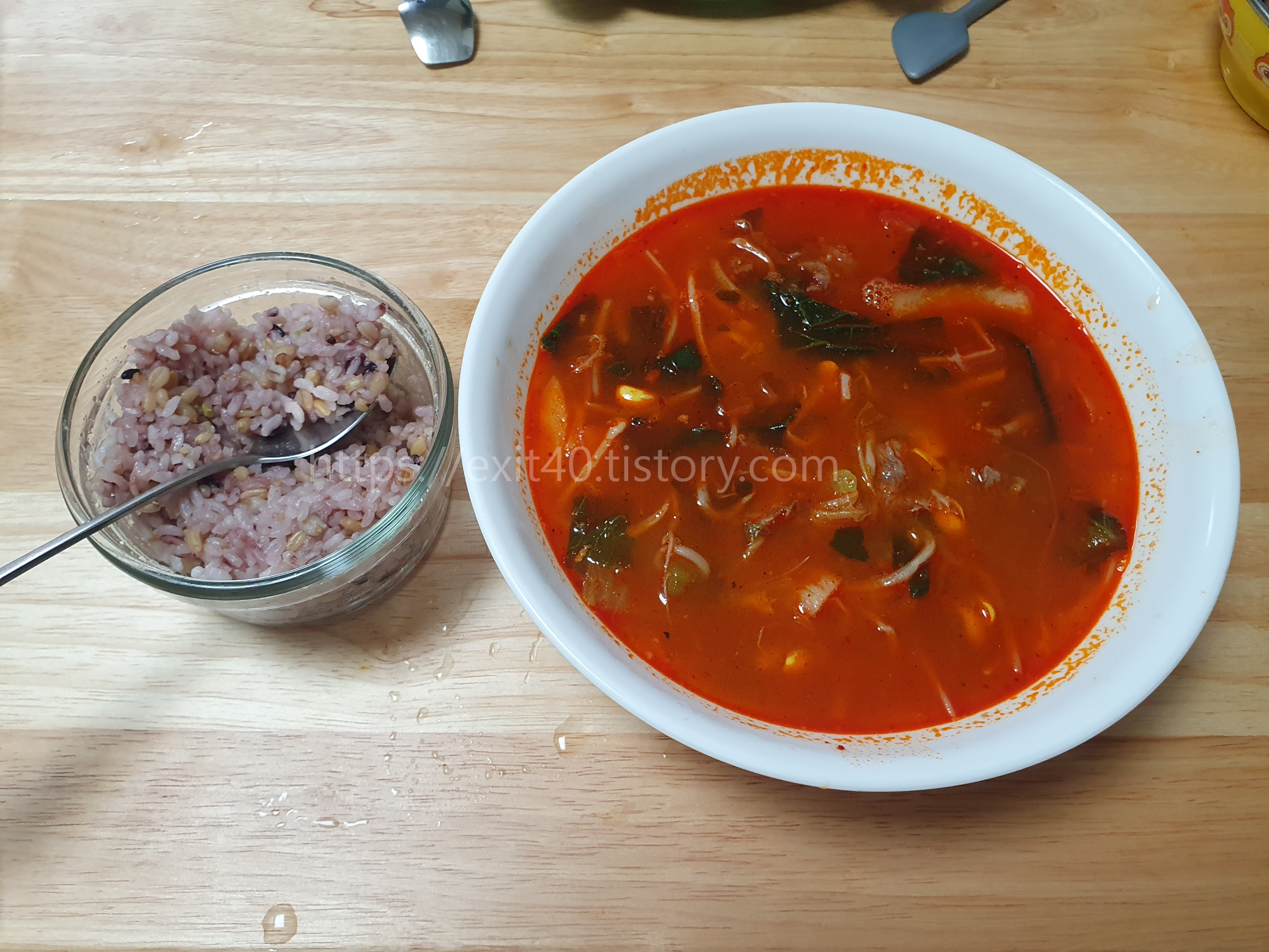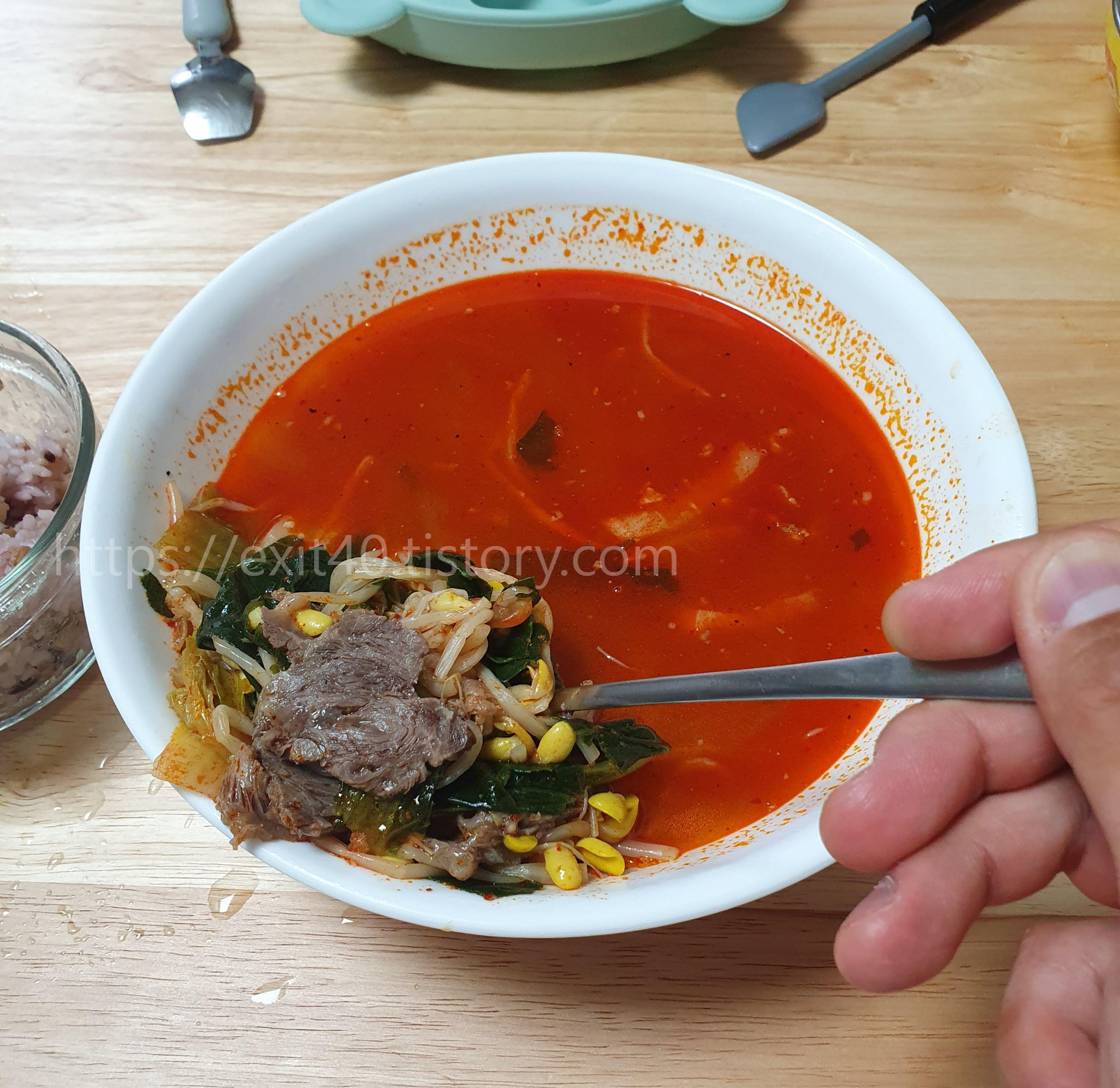 그렇게 허겁지겁 입술, 숟가락, 혓바닥 한 번씩 씹어가며 먹다 보니 완국 하게 되었네요.