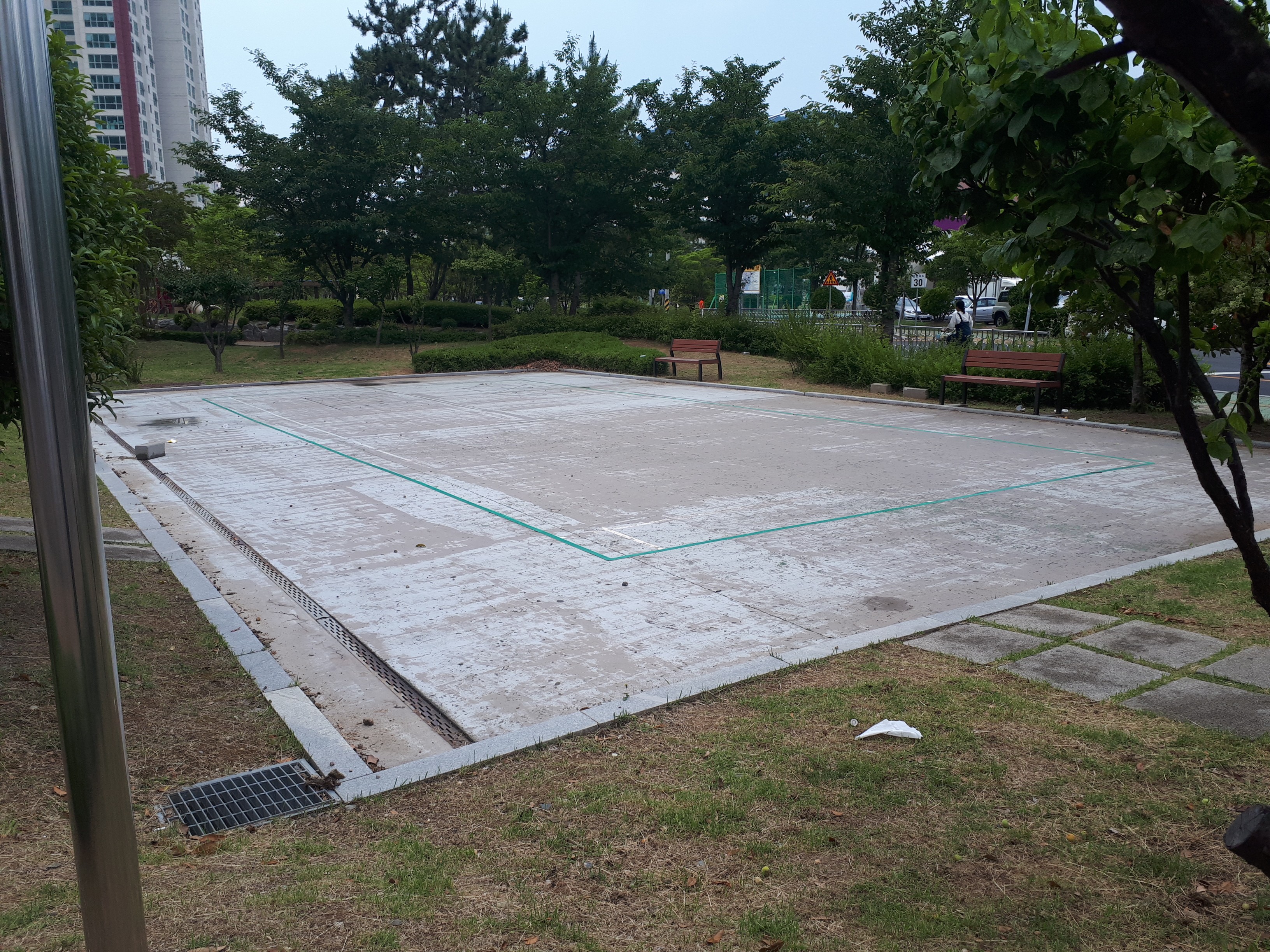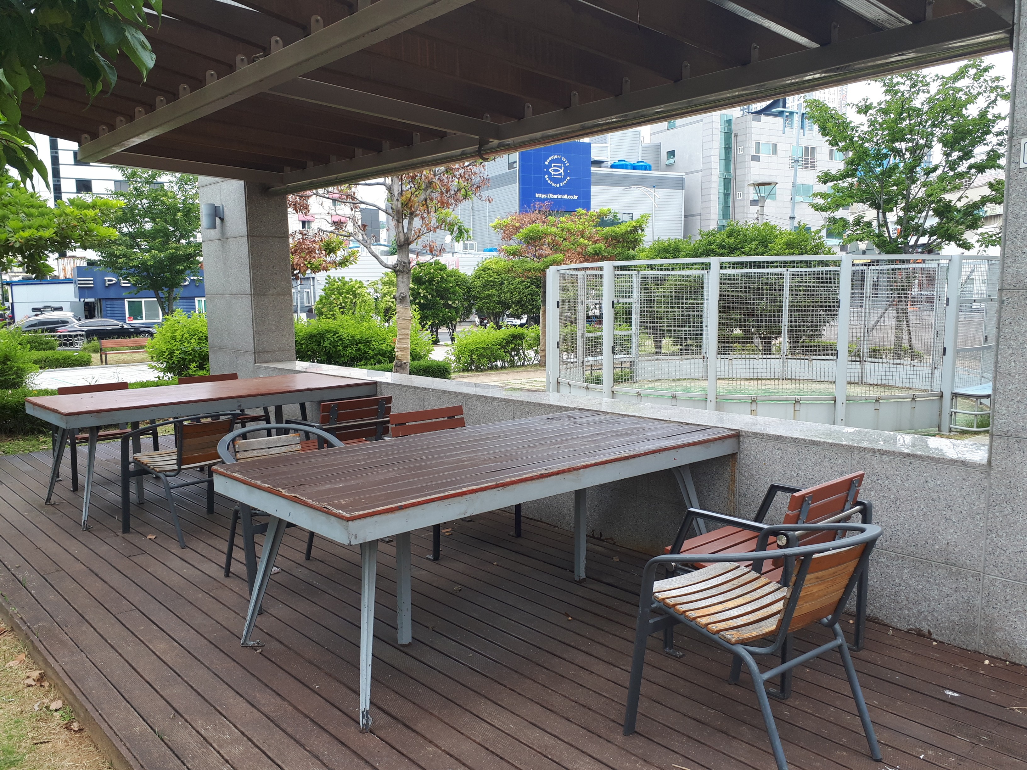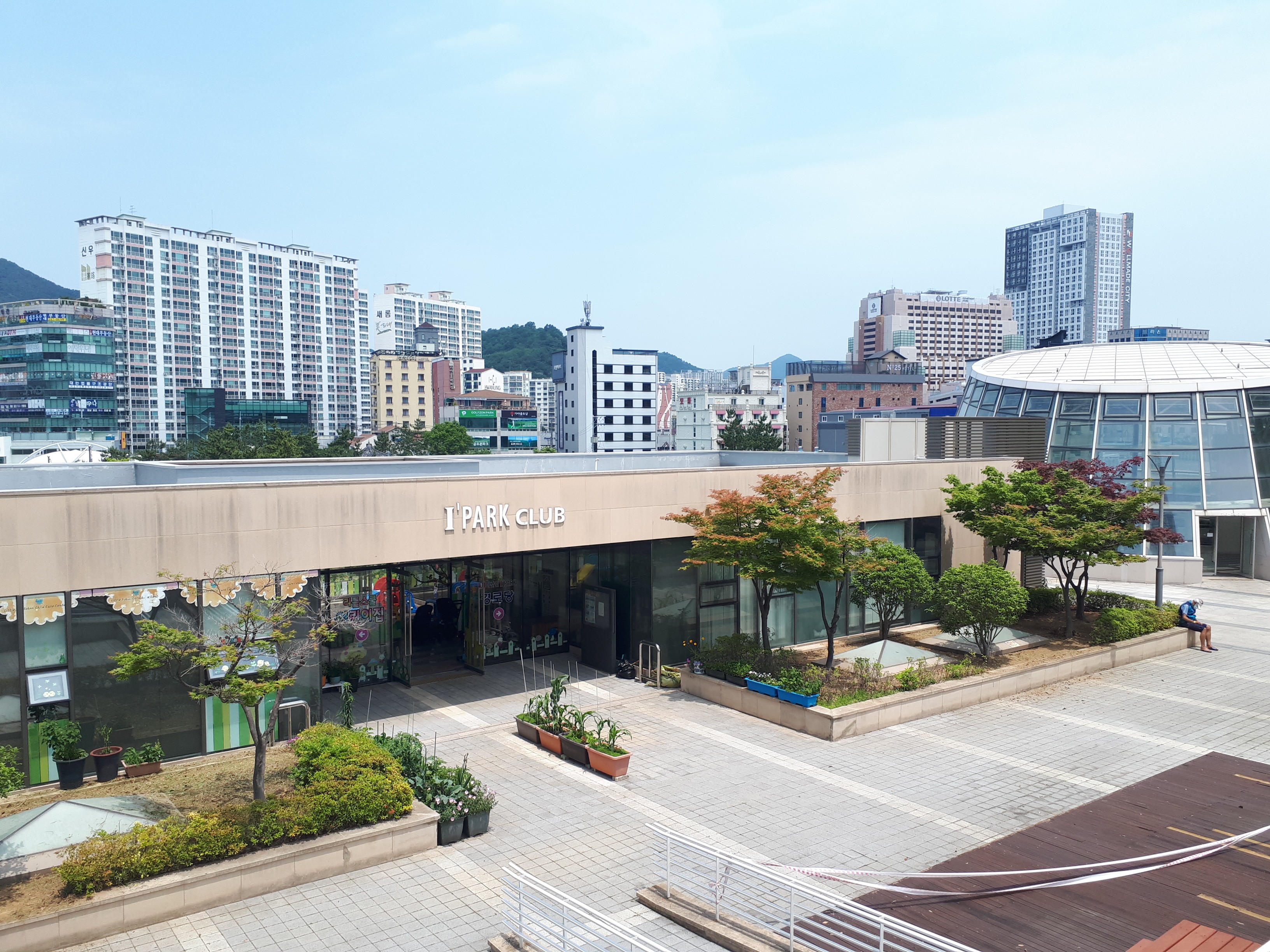 트로피칼 카페 바로 옆에 어린이집이 있었고 그 앞에는 크루즈의 갑판을 연상시키는 넓은 공원이 있었습니다.
