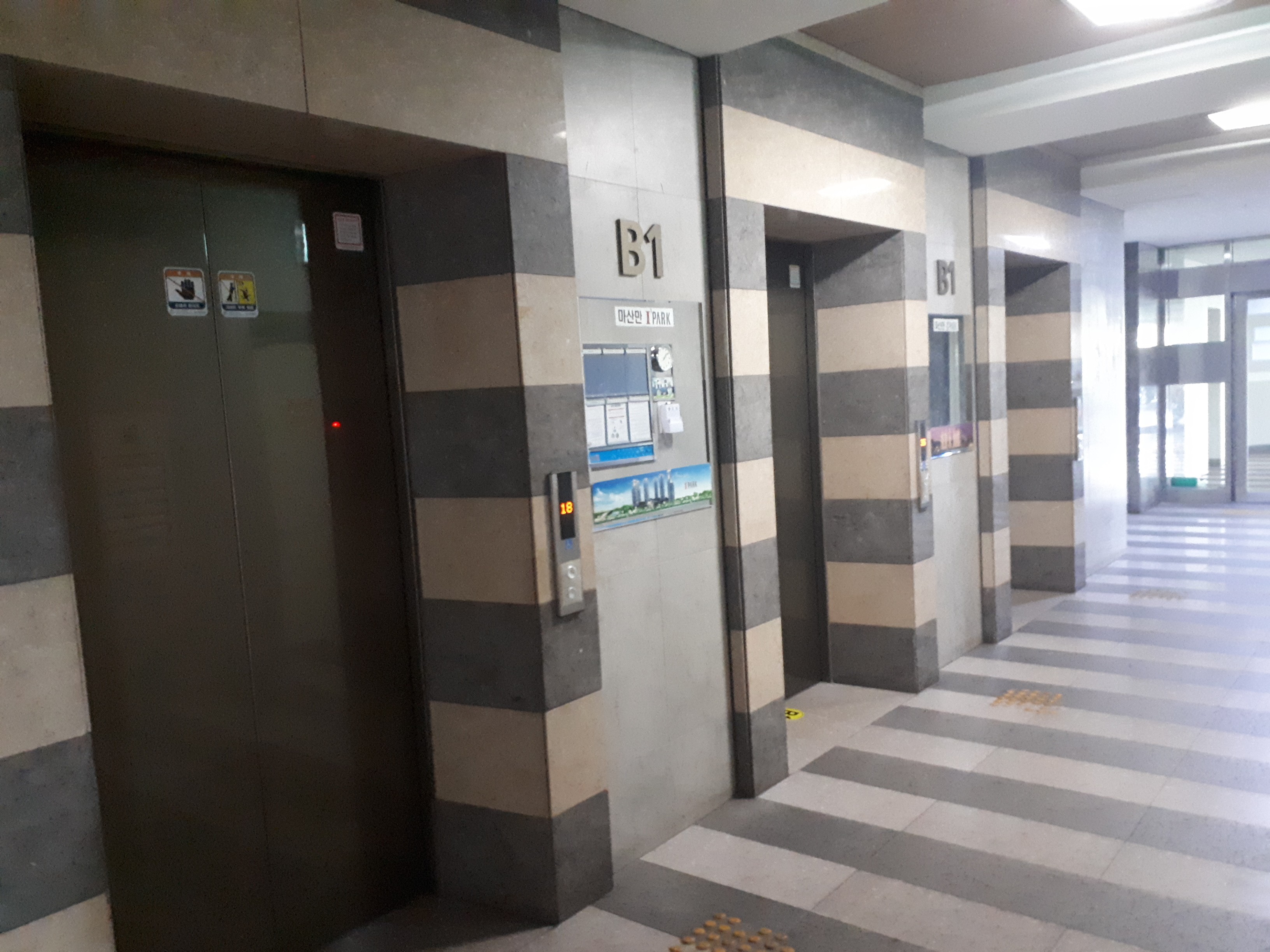 먼저 주차장에서 이어진 단지로 들어가 봤는데요 한층당 4세대인 이곳은 각 동의 엘리베이터가 총 3개로, 배달하시는 분과 입주민들과의 갈등도 없을뿐더러 보수작업 등 이동과 생활에 지장이 없을 것 같아 좋았습니다.