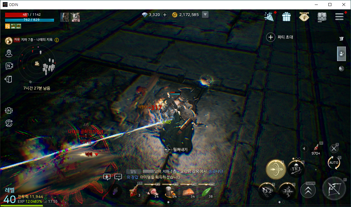 이제 어떻게 다른 사람들은 레벨업을 빠르게 할 수 있는지에 대해 연구하게 됩니다. 아프리카 TV나 유튜브를 돌아다니다가 문득 지하감옥 7층에 사냥하면 될 것 같다는 생각이 들었습니다.