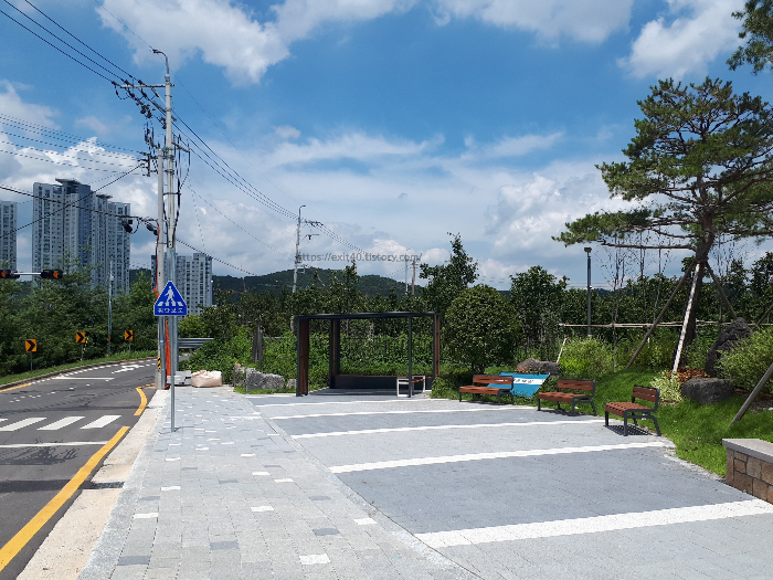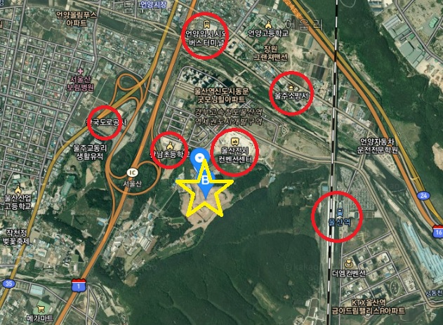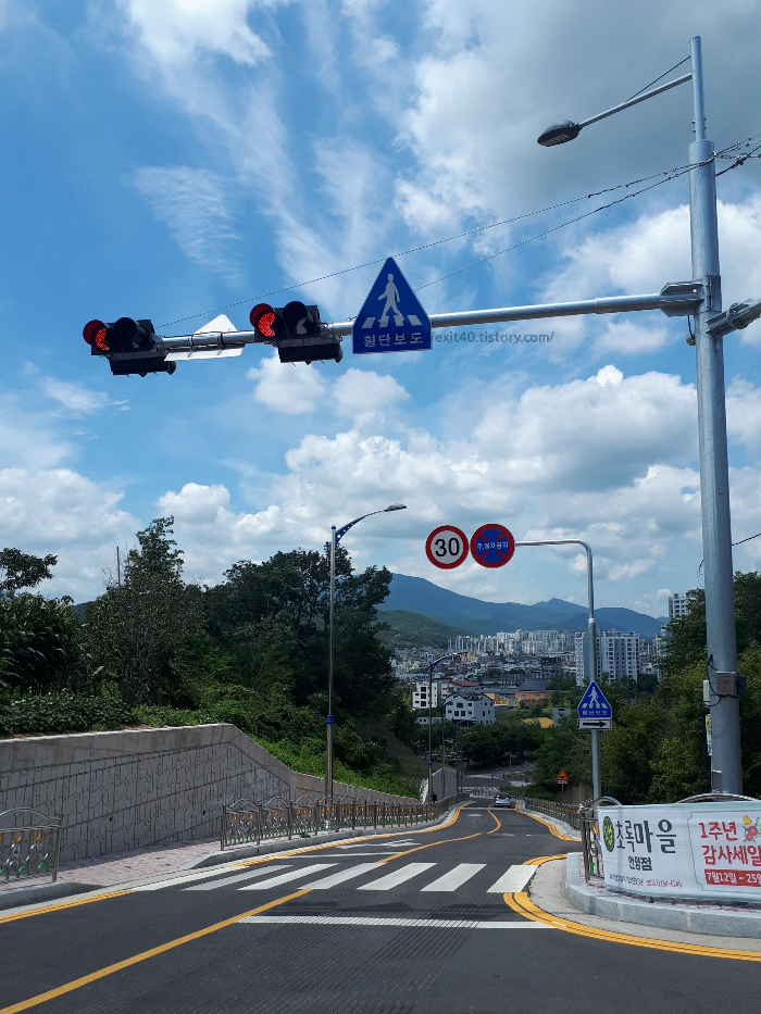 정문 앞으로는 울산 전시컨벤션 센터로 내려가는 길과 상남초등학교로 내려가는 길이 나옵니다.